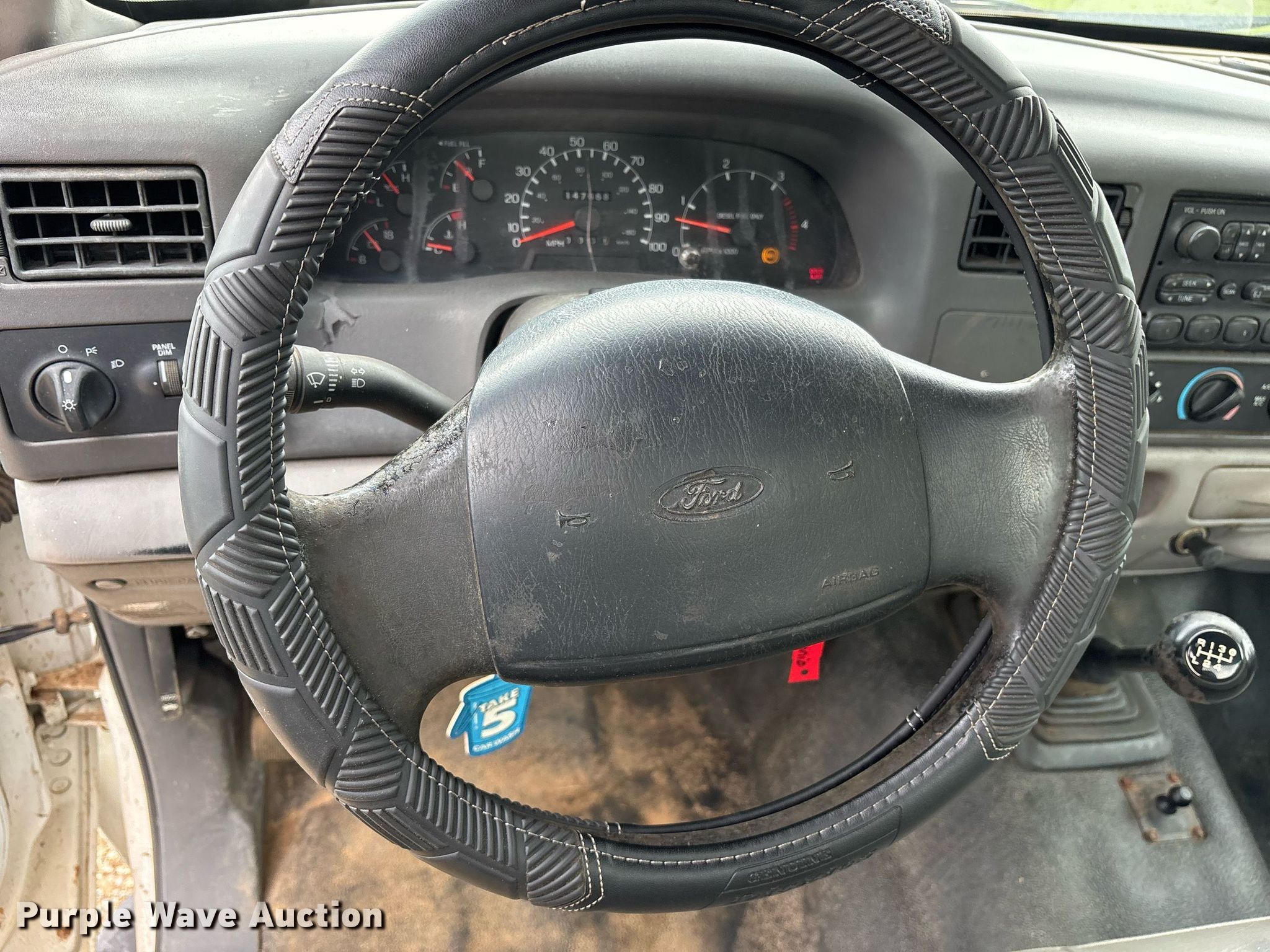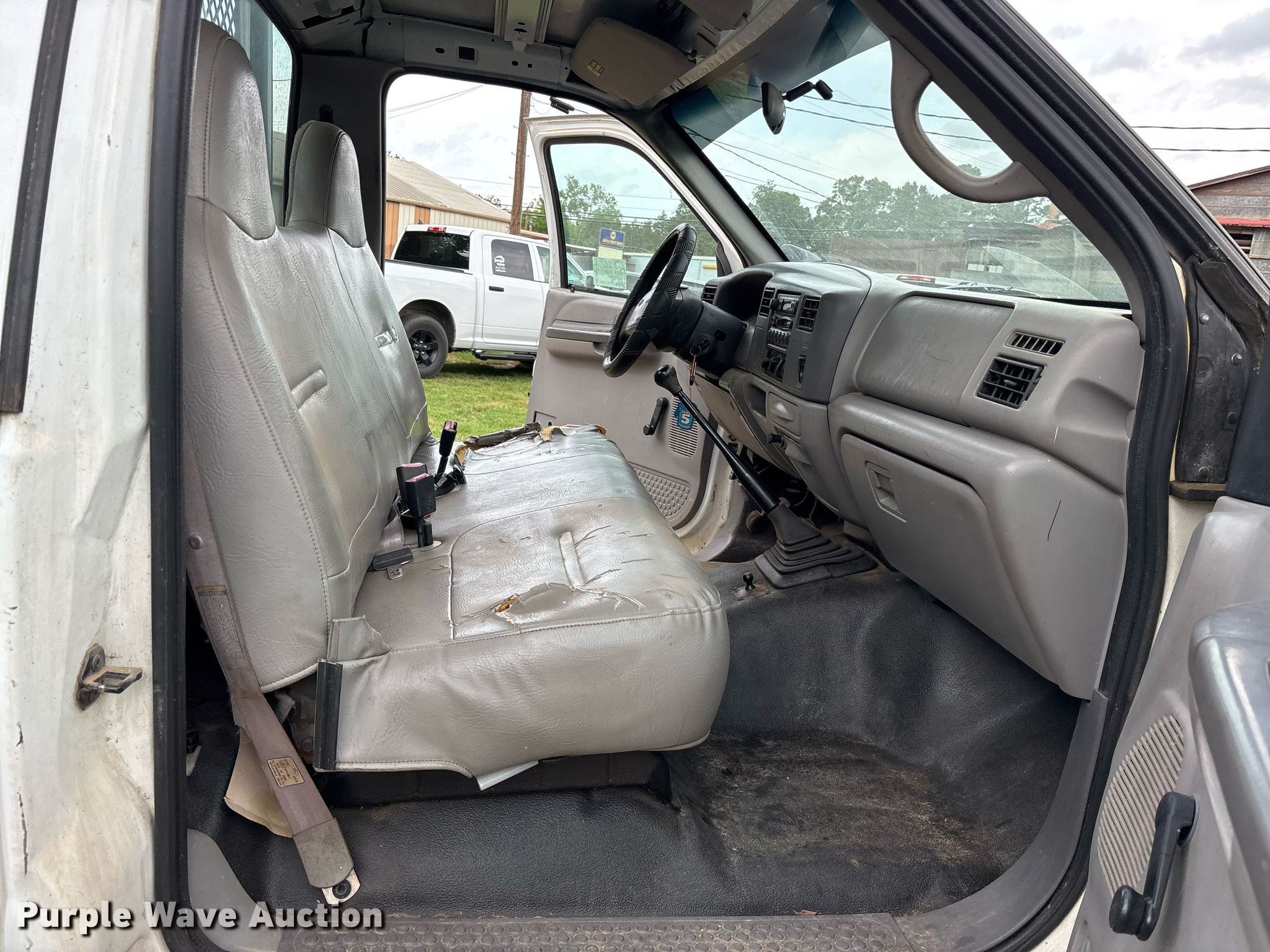 1999 Ford F550 Super Duty XL flatbed truck. Miles: 147,668 on odometer, VIN: 1FDAF56F6XEC86053. Engine Displacement: 7.3L, Cylinders: 8, Fuel type: Diesel. Transmission Manual, Speed: 6. Chassis Axles: Single, Suspension: Spring, Brakes: Hydraulic, GVWR: 19,000 lbs. Interior AC, Heat. Features Flatbed 16' 8" L x 8' W, Removable stake sides. Tires Size: 225/70R19.5. Notes Hood latch broken, Dash warning indicator: ABS, Windshield chipped or cracked. Texas title. Title distribution may be delayed up to 14 days from verification of funds. Jacksonville, TX 75766