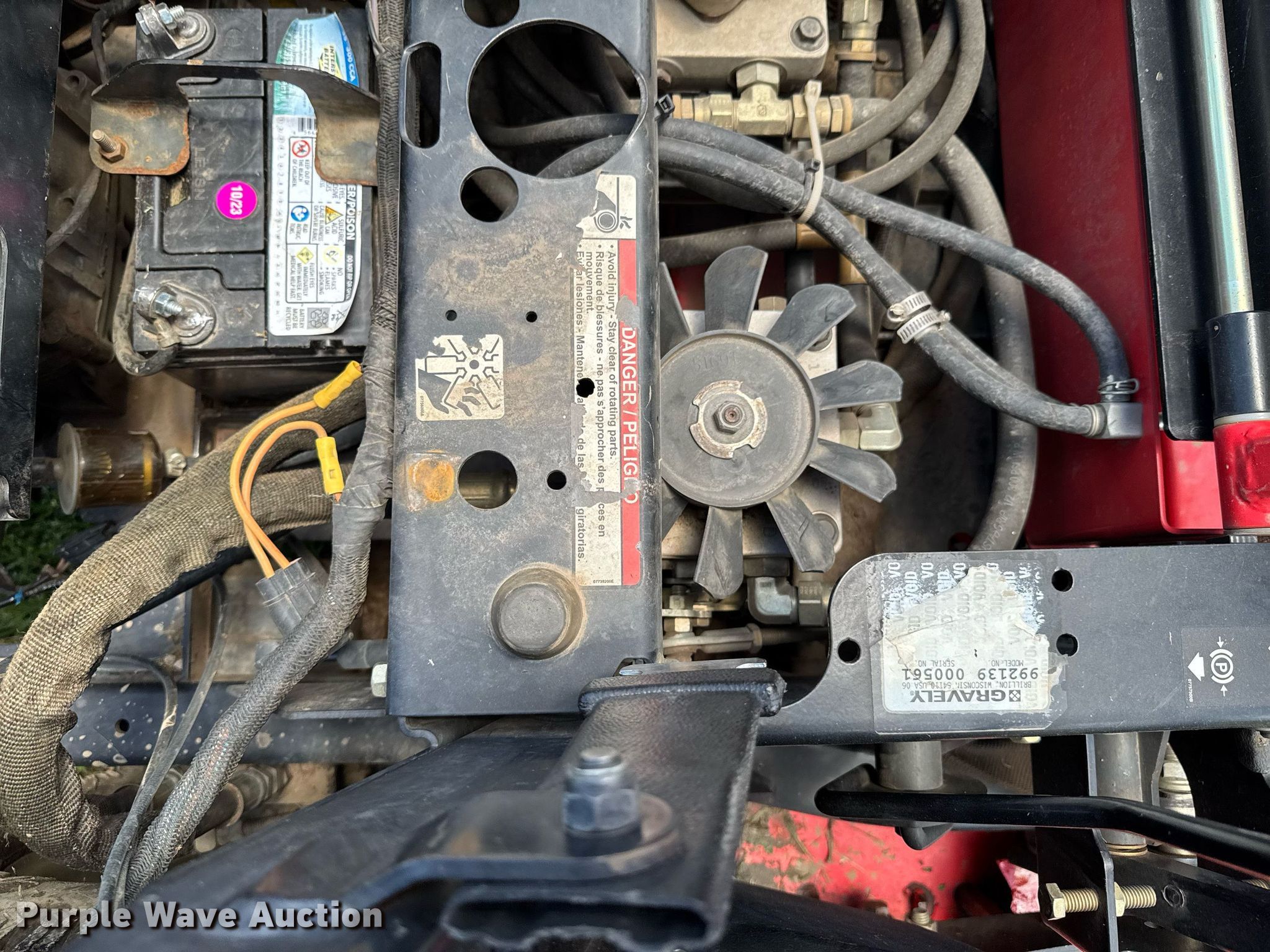 Gravely 272Z ZTR lawn mower. Cutting width: 72", Serial: 000561. Engine Kawasaki FD731V, Cylinders: 2, Fuel type: Gas. Transmission Hydrostatic. Features Hydraulic front deck lift. Tires Front: 15x6.00-6, Rear: 24x12.00-12. Notes Mower deck rebuilt 2024. KPC, LLC. Rudy, AR 72952