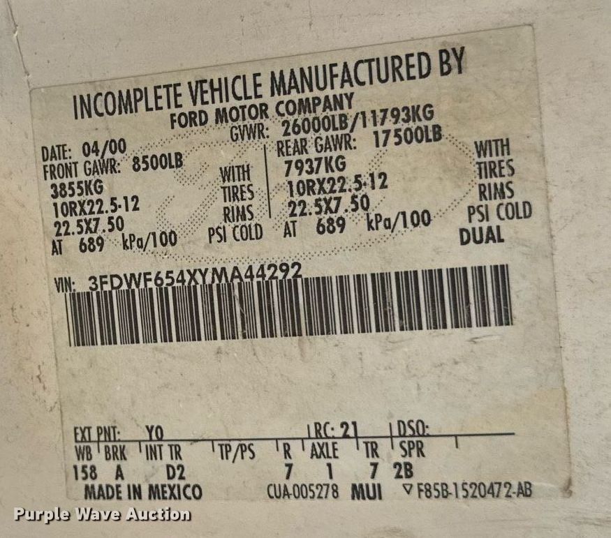 Purple Wave is selling a used Bucket Truck in Iowa. This item is a 2000 Ford F650 Super Duty bucket truck with the following: Miles: 361,812 on odometer, Hours: 8,620 on meter, VIN: 3FDWF654XYMA44292
