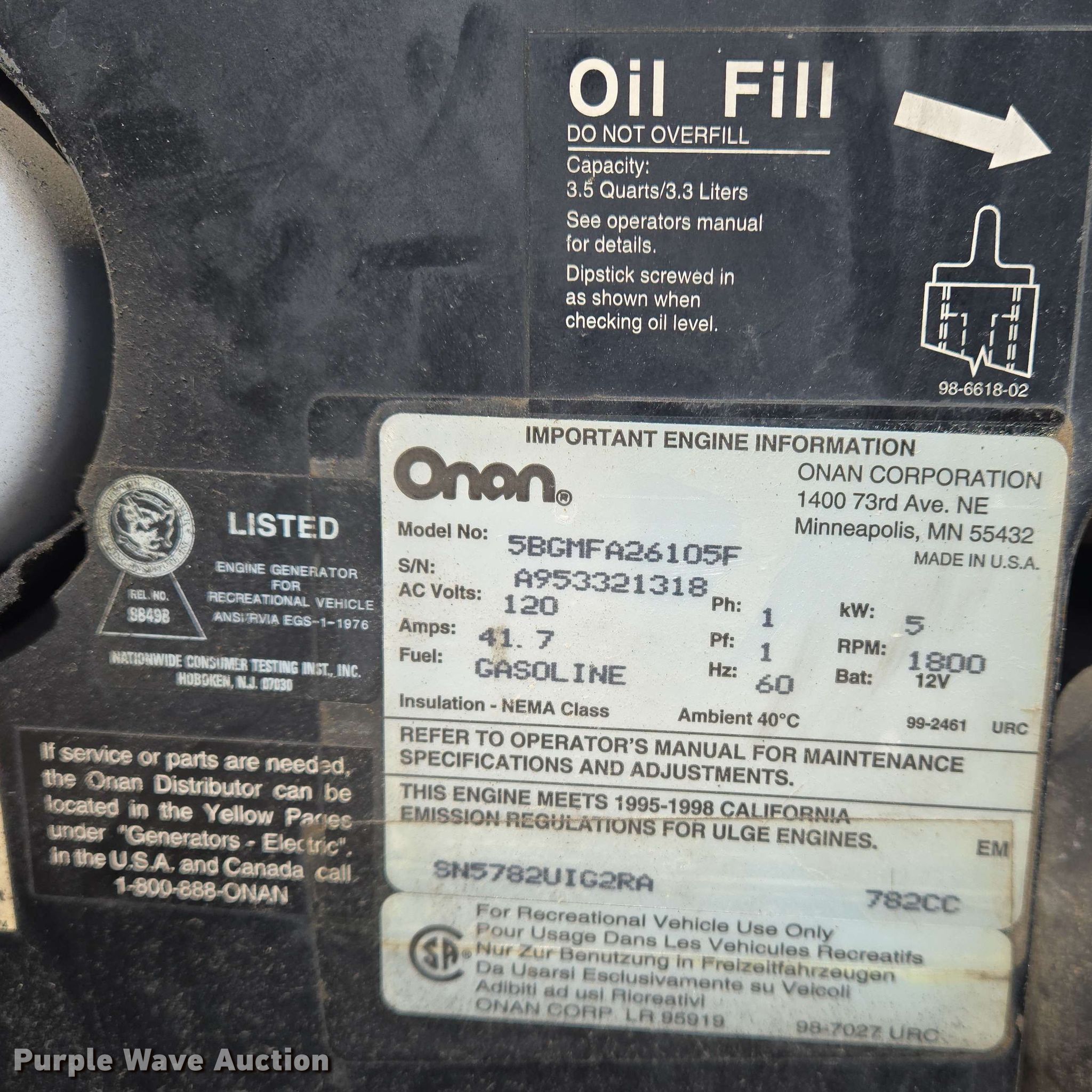 - Onan Marquis 5000 5BGMFA26105F