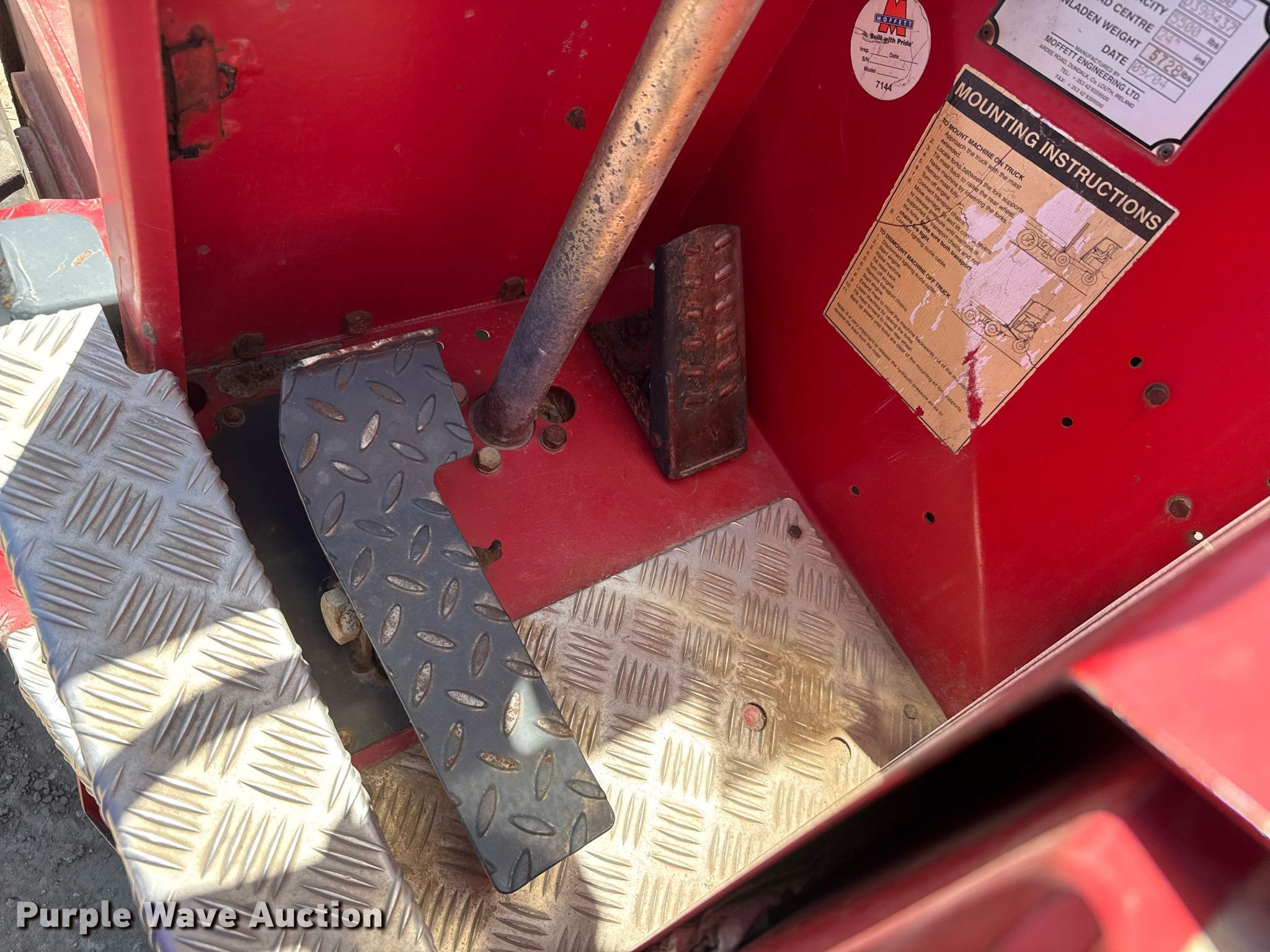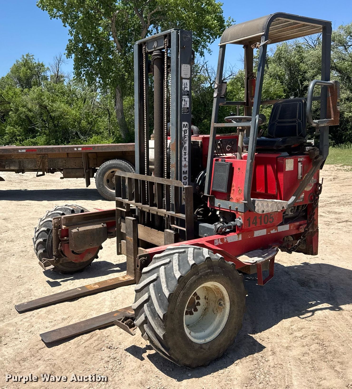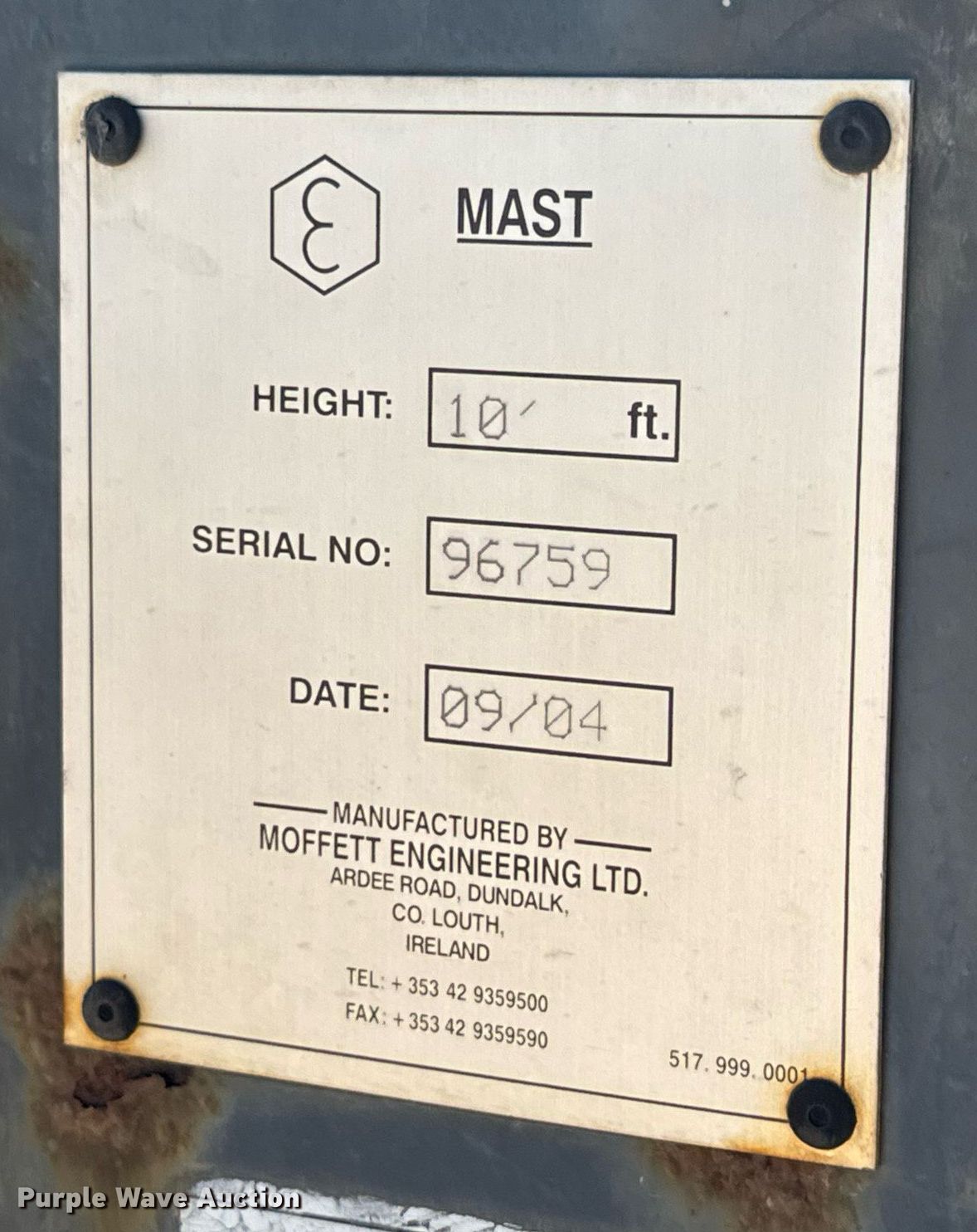 2002 Sterling LT9500 flatbed truck. Miles: 277,051 on odometer, Hours: 16,938 on meter, VIN: 2FZHAZAS82AK16063, Unit #: 14003. Engine Caterpillar C12, Serial: 2KS73253, Displacement: 12L, Cylinders: 6, Fuel type: Diesel, HP: 335. Transmission Eaton Fuller Road Ranger RT/RTO-8LL, Manual, Speed: 10. Chassis Axles: Tandem, Differential lock: Full, Suspension: Spring, Brakes: Air, GVWR: 58,000 lbs. Interior AC, Heat, Heated mirrors, Cruise control. Features Flatbed 24' 6" L x 96" W, Forklift mount. Tires Front: 385/65R22.5, Rear: 11R22.5. Notes Speed limited to 65 mph, Air leak, Differential lock issues, air system leak, Oil leak, Non-operational AC, heat, blower motor, Transmission issues, slips out of gear 3 and 7. 2004 Moffett M5500 forklift Hours: 3,228 on meter, Serial: D390437. Engine Kubota V2203, Serial: BG0113, Cylinders: 4, Fuel type: Diesel. Transmission Hydrostatic. Chassis Differential lock. Operators station Canopy. Features Maximum lift capacity: 5,500 lbs, Maximum lift height: 120", Mast stages: 2, Side shift, Mast tilt, Fork length: 48". Tires Size: 31x15.5-15. Notes Hydraulic leak, Non-operational water temperature gauge. Kansas title. Title distribution may be delayed up to 14 days from verification of funds. Mead Lumber / Rental of Pratt. Pratt, KS 67124