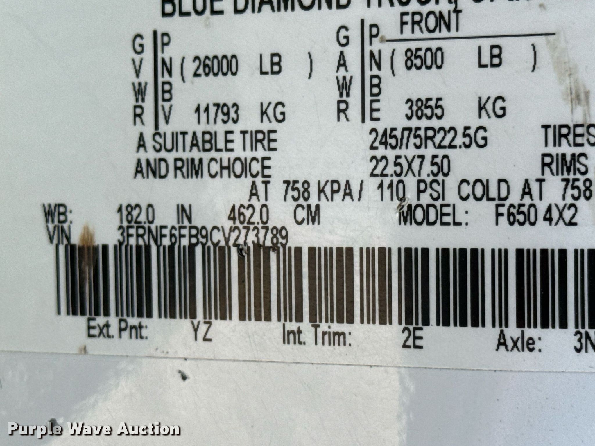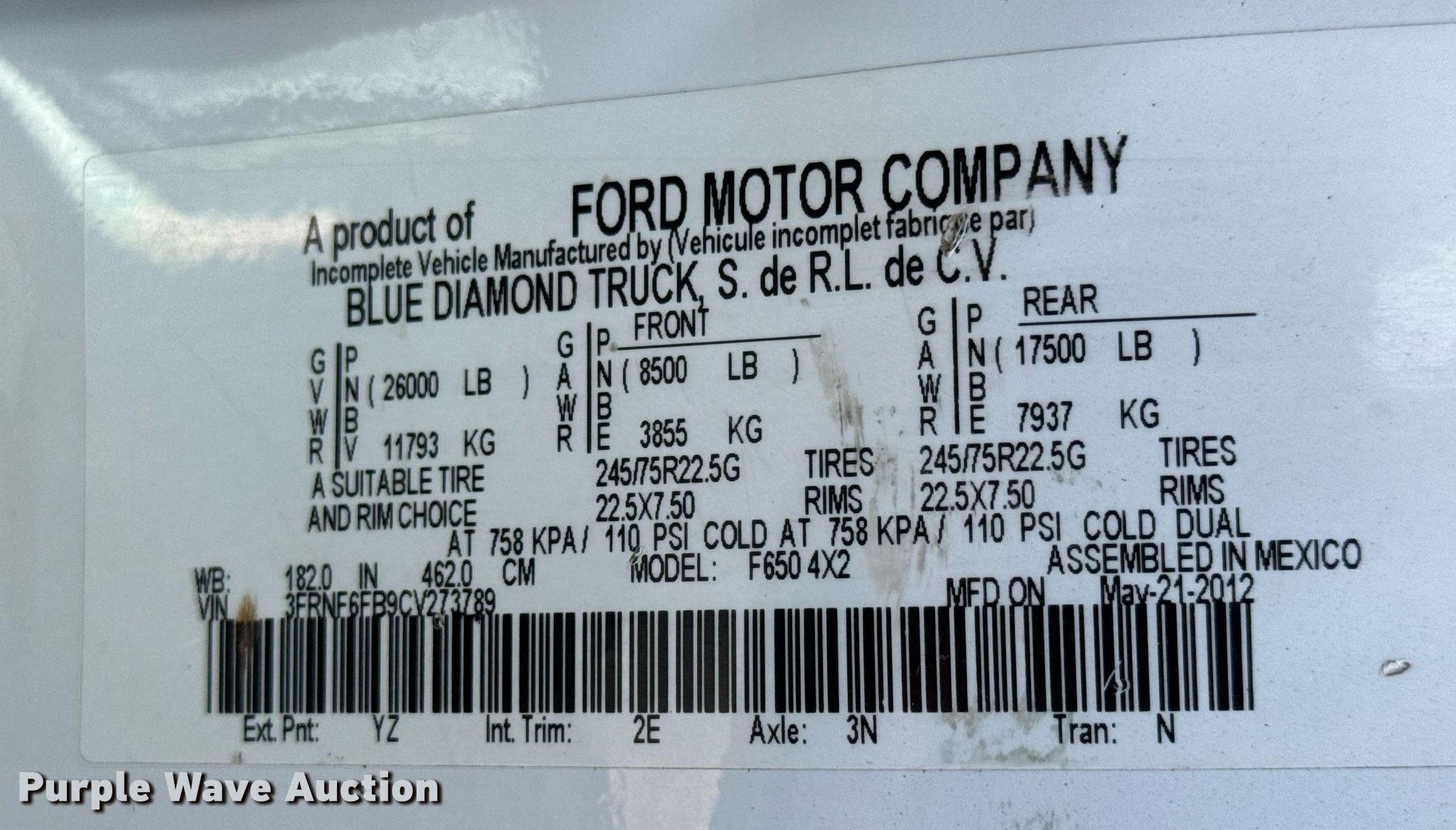 Purple Wave is selling a used Flat Bed Truck in Oklahoma. This item is a 2012 Ford F650 Super Duty flatbed truck with the following: Miles: 190,678 on odometer, VIN: 3FRNF6FB9CV273789