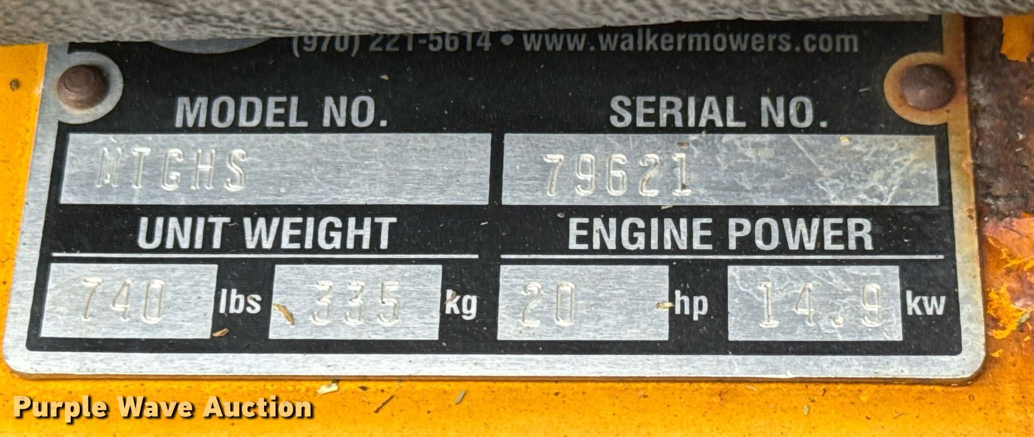 Purple Wave is selling a used Lawn Mower in Kansas. This item is a 2006 Walker MTGHS ZTR lawn mower with the following: Hours: 28 on meter, Actual hours unknown, Cutting width: 48", Serial: 79621