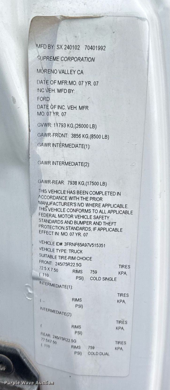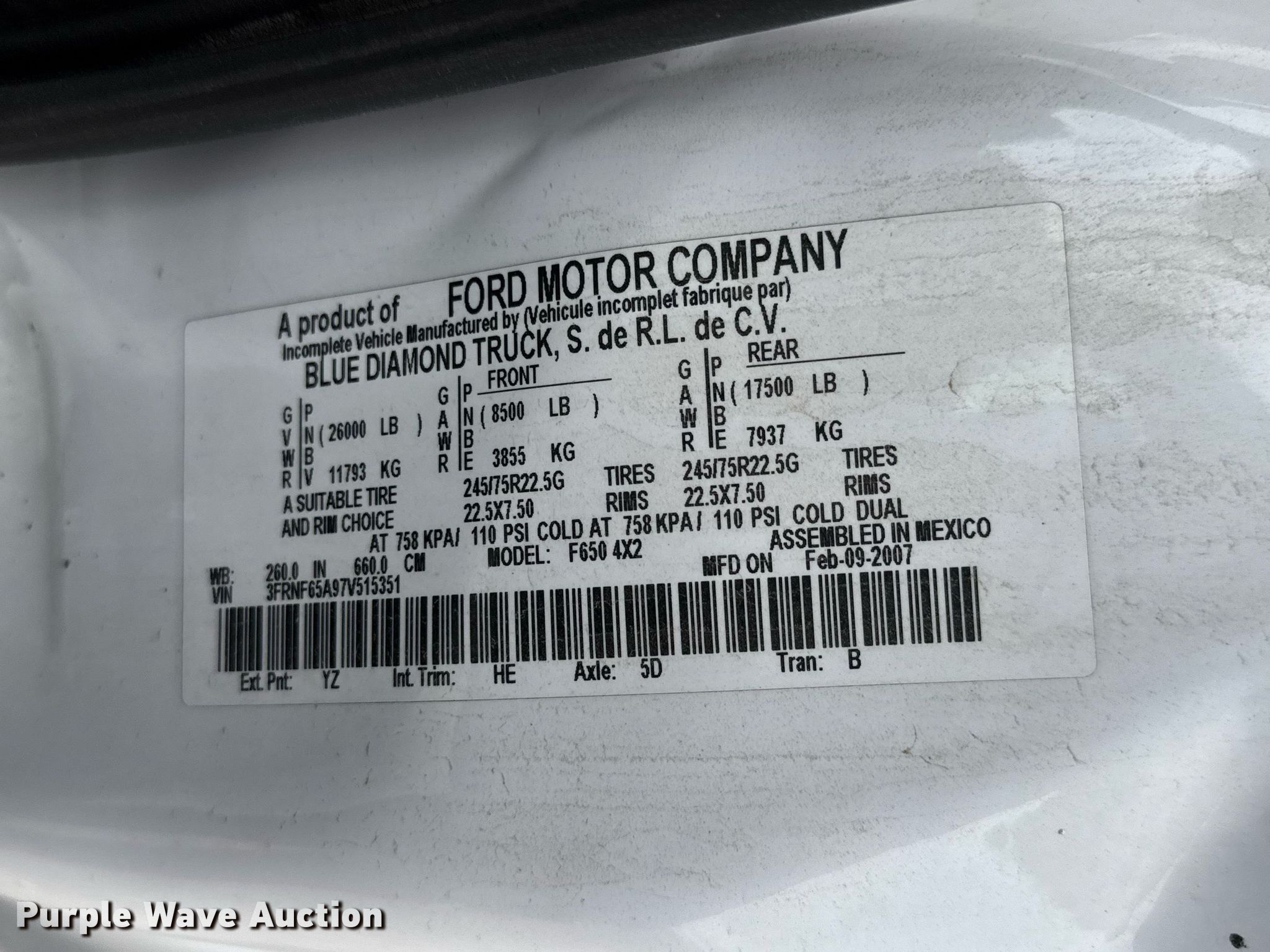 - VIN: 3FRNF65A97V515351