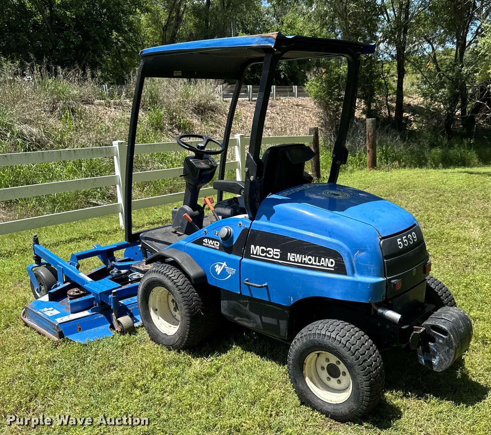 Purple Wave is selling a used Commercial Turf Mower in Kansas. This item is a 2002 New Holland MC35 lawn mower with the following: Hours: 2,610 on meter, Cutting width: 84", Serial: TF00549