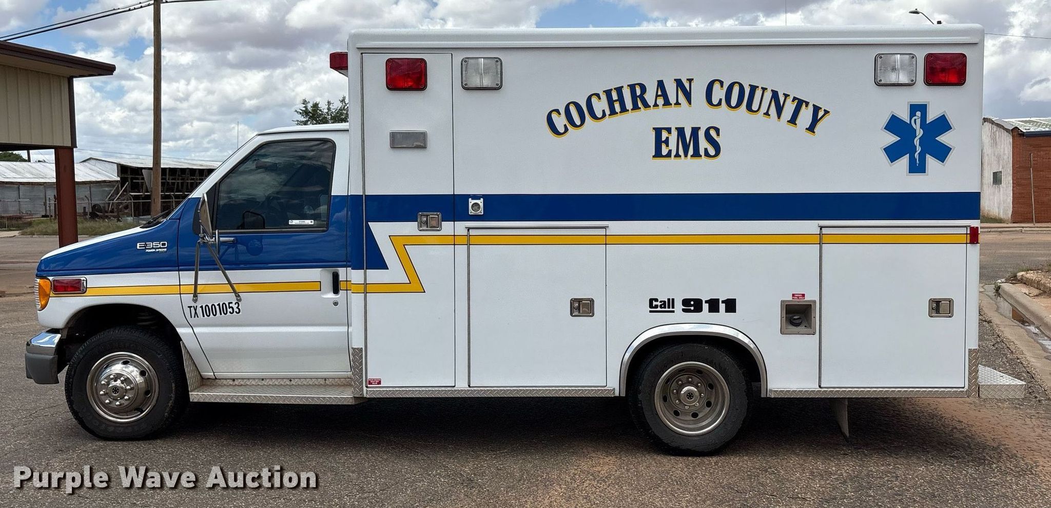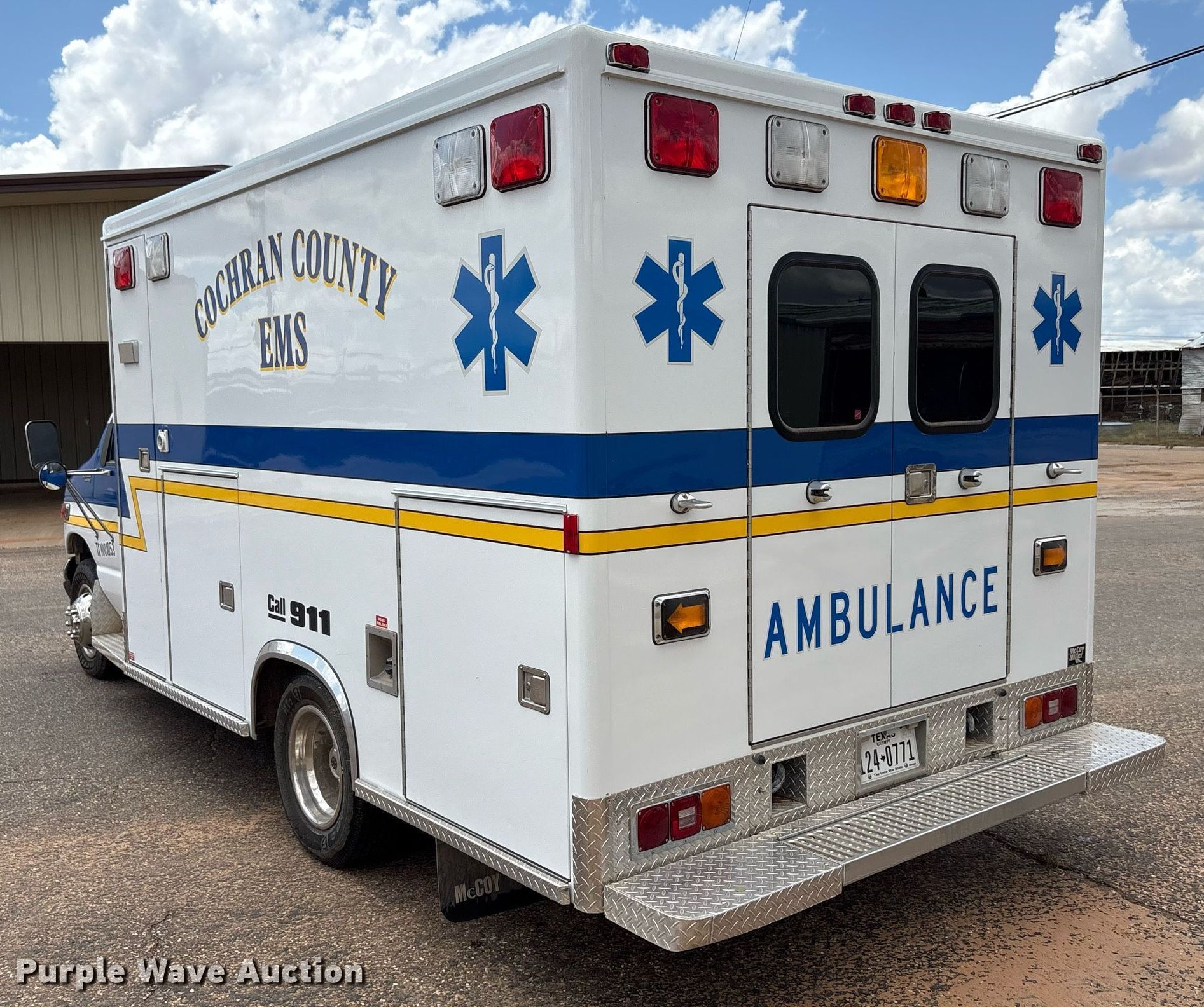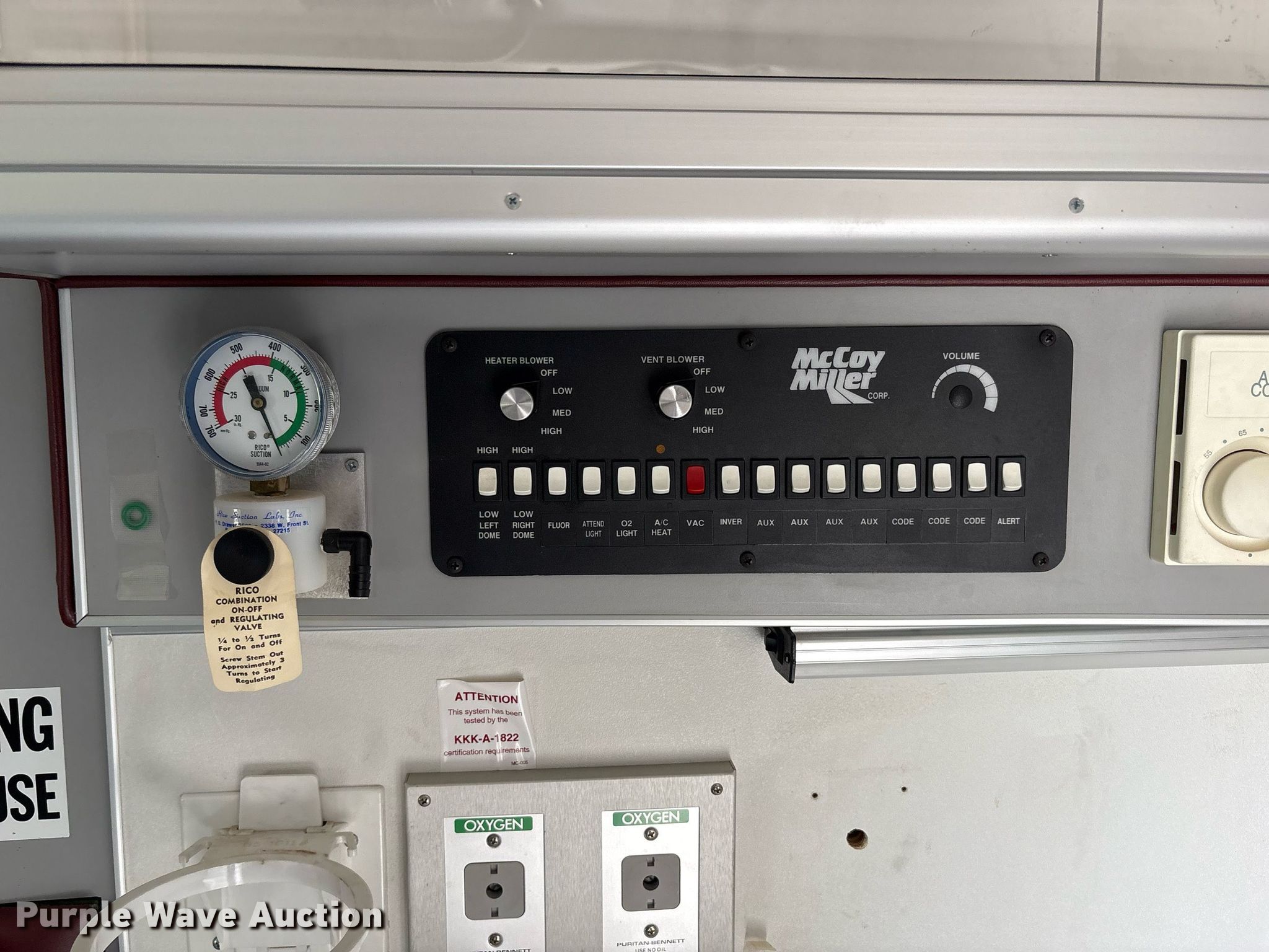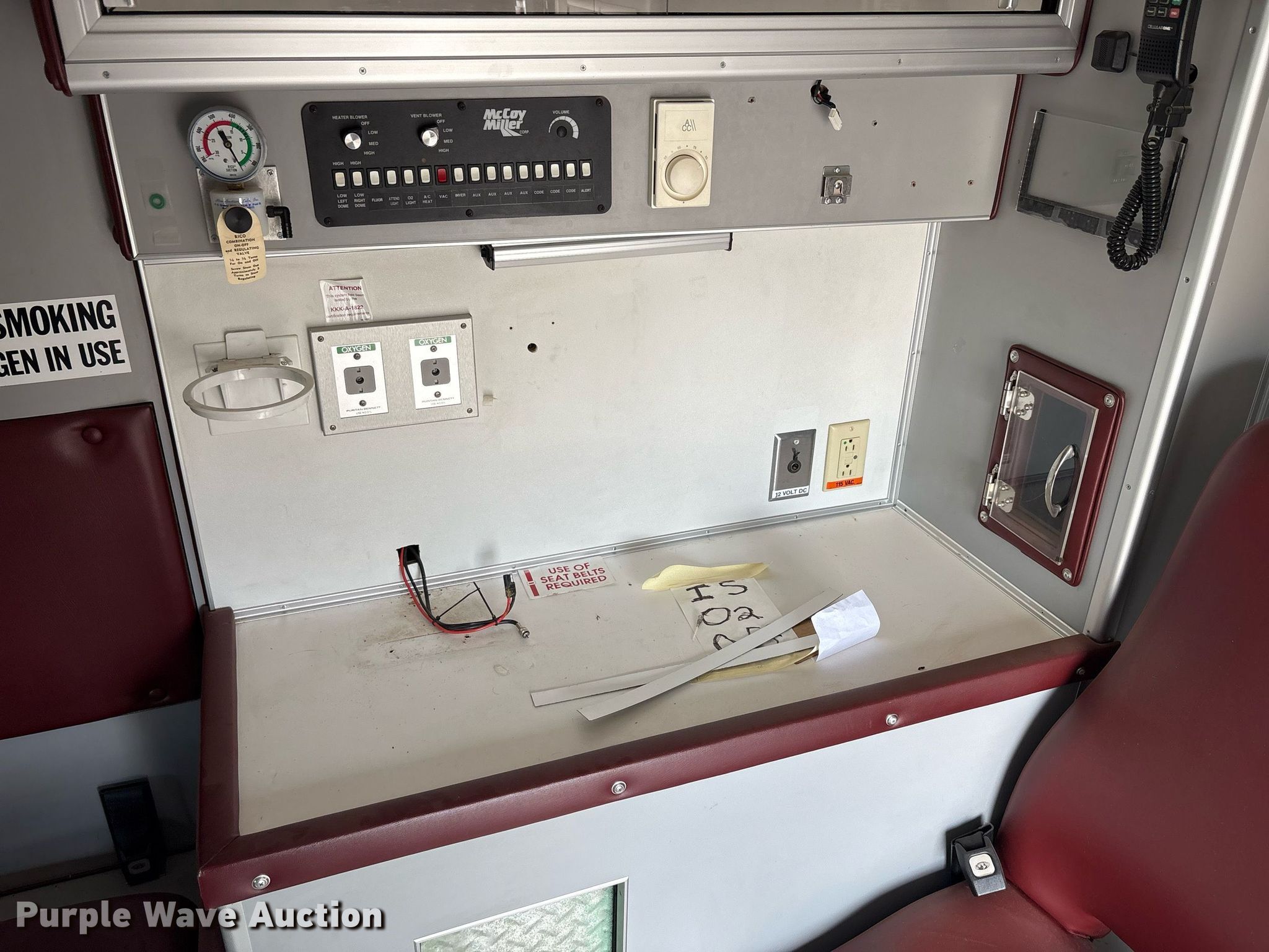 1997 Ford E350 ambulance. Miles: 41,285 on odometer, VIN: 1FDKE30F3VHA18576. Engine Displacement: 7.3L, Cylinders: 8, Fuel type: Diesel. Transmission Automatic. Chassis Axles: Single, Suspension: Spring, Brakes: Hydraulic, GVWR: 10,500 lbs, Wheelbase: 138". Interior AC, Heat, Power windows, Power locks, Cruise control. Features Ambulance body McCoy Miller, PA/ siren controls, Oxygen hookups. Tires Size: 225/75R16. Notes Dead battery. Texas title. Title distribution may be delayed up to 14 days from verification of funds. Morton, TX 79346
