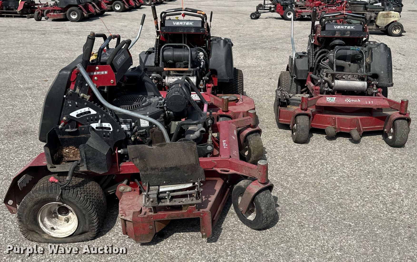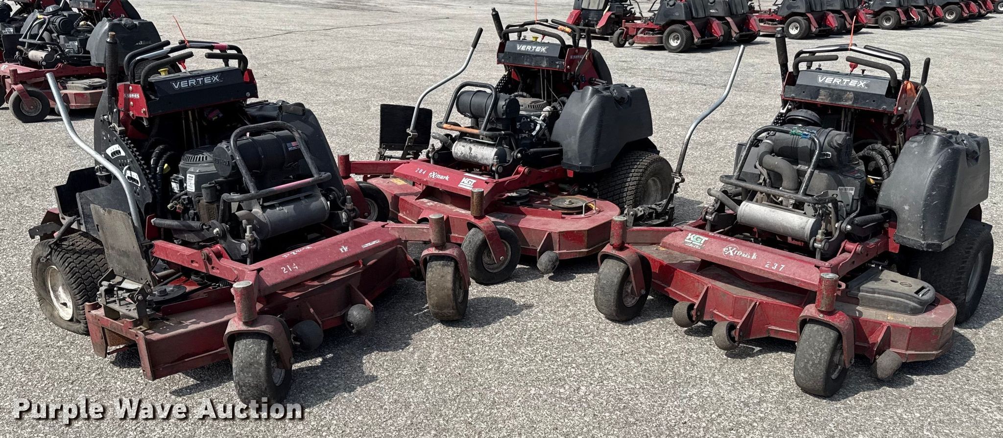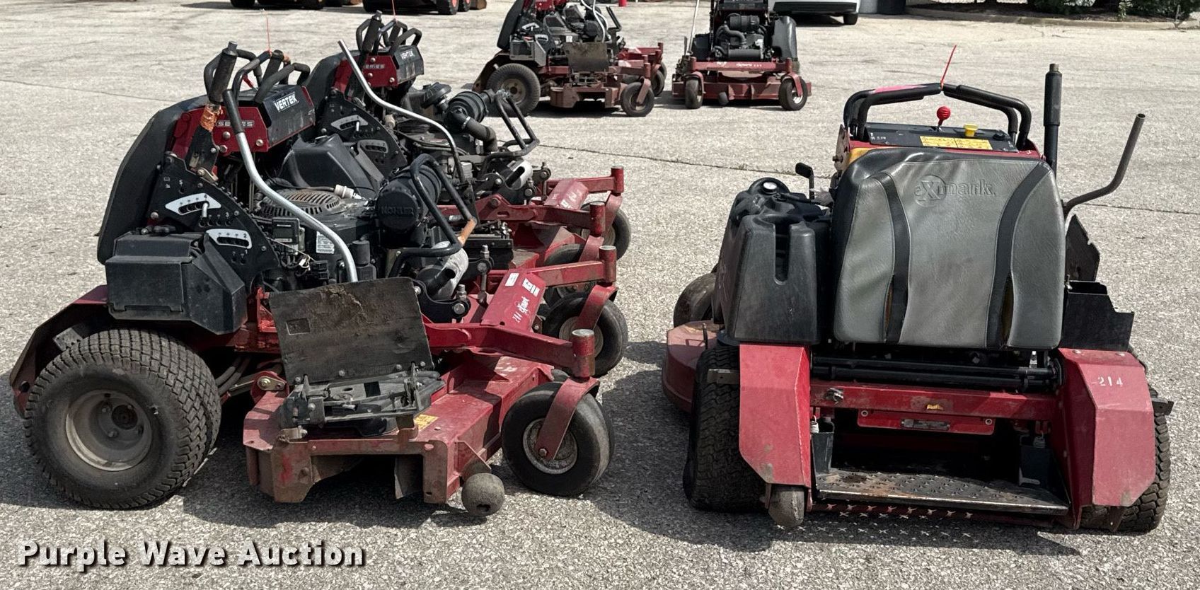 Purple Wave is selling a used Commercial Turf Mower in Kansas. This item is a (3) Exmark ZTR lawn mowers with the following: Hours: 204 on meter, Cutting width: 60"