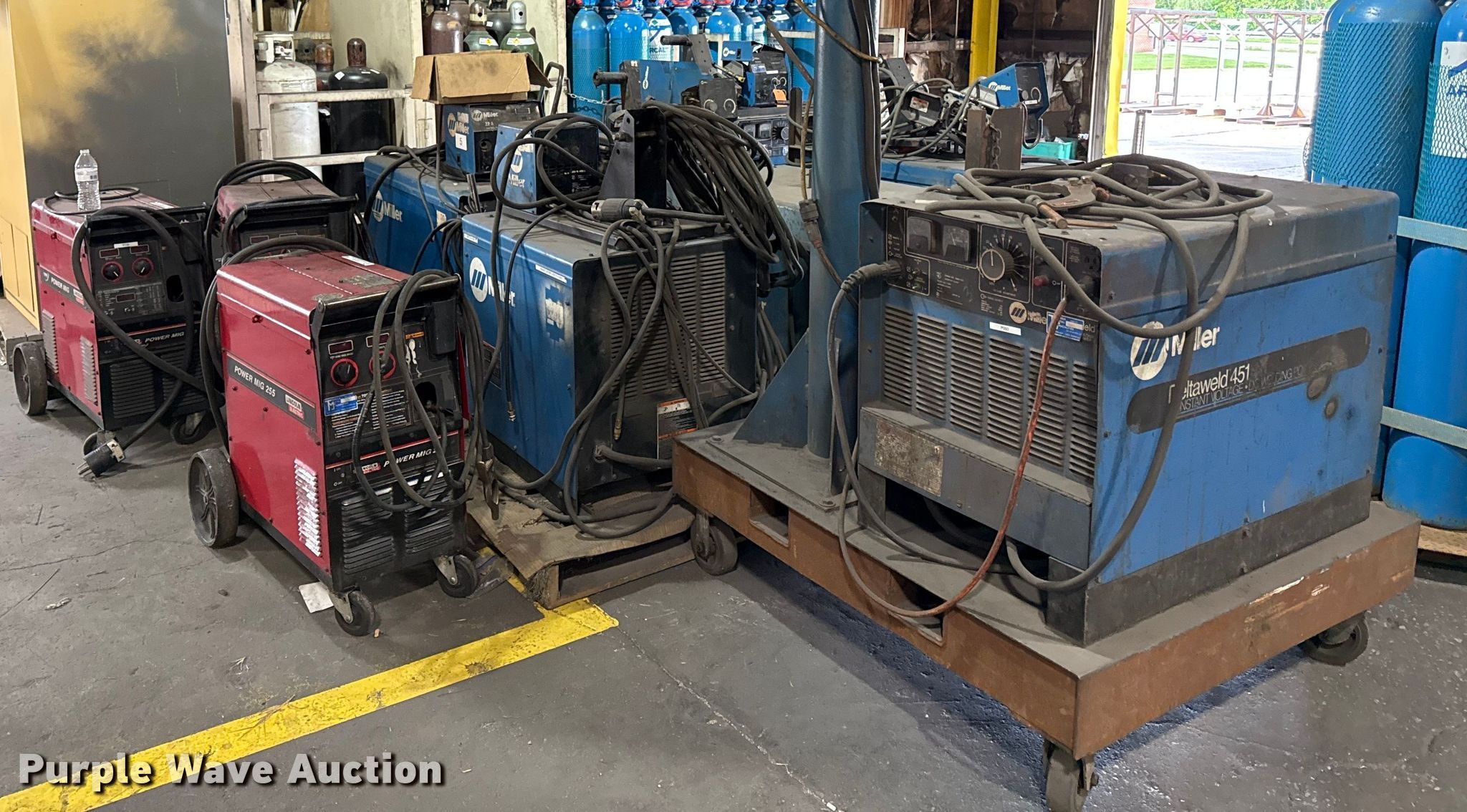 Purple Wave is selling a used Welder (Manual) in Kansas. This item is a (5) welders with the following: Lincoln Power MIG 255, Miller Deltaweld 451, Wire feeder: Miller 60 series, (2) Miller CP 302 power source, Wire feeder: Miller 60 series, Miller CP302 power source