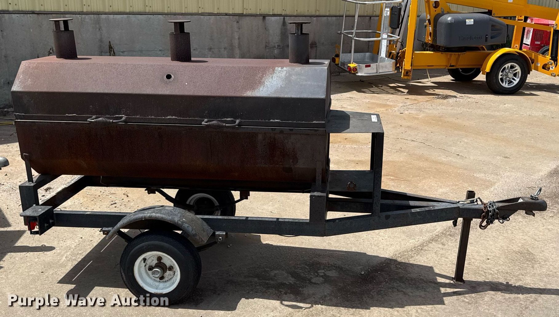 Purple Wave is selling a used Trailer Other in Kansas. This item is a Shop built grill trailer with the following: Overall: 8' L x 42" W, Deck: 5' L x 24" W