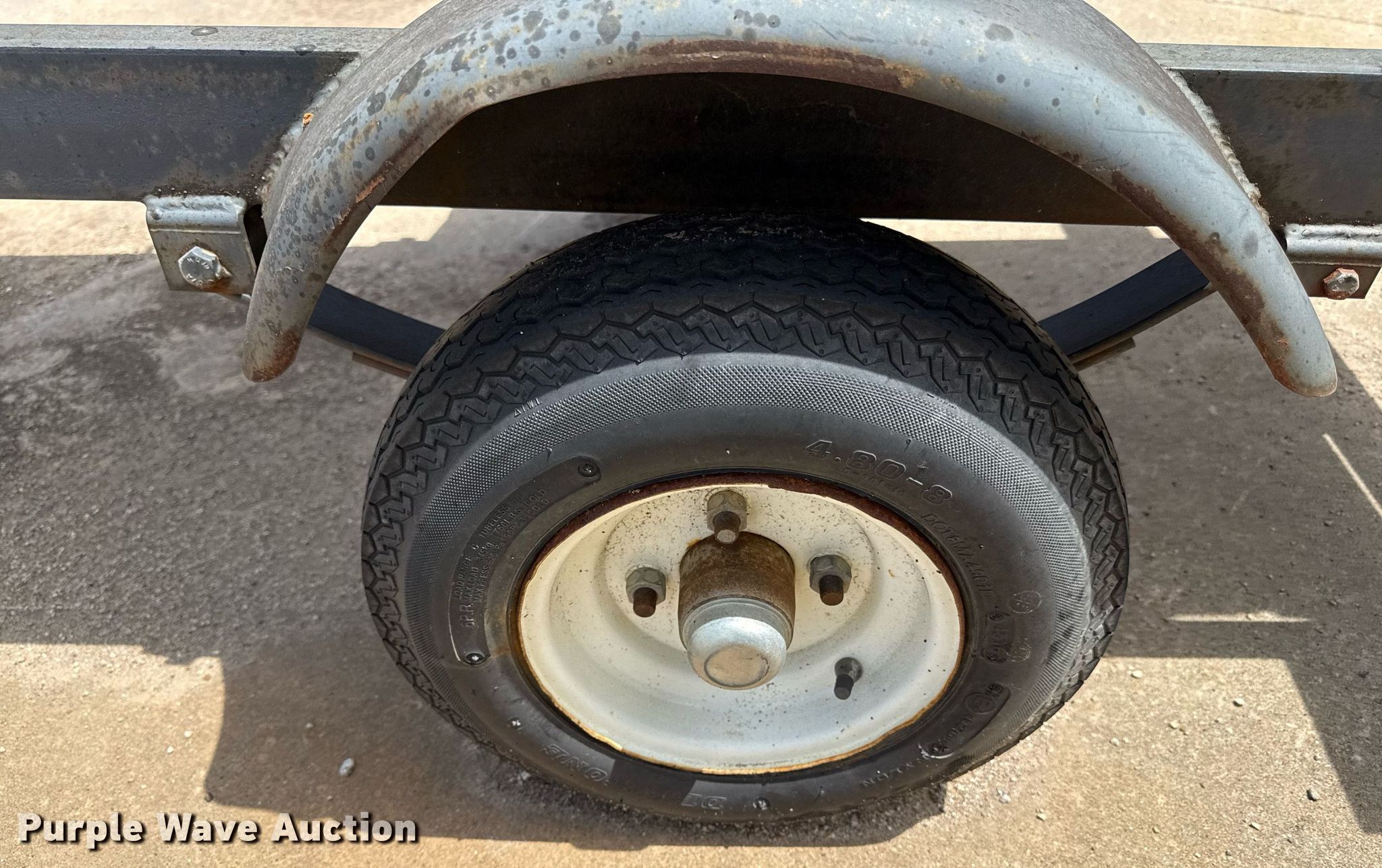 Shop built grill trailer. Dimensions. Overall: 8' L x 42" W, Deck: 5' L x 24" W. Chassis Ball hitch: 2 5/16", Landing gear: Single, Suspension: Spring. Tires Steel wheels, Size: 4.80-8. Transfer of ownership documentation will be a bill of sale. Sunflower Rental. Topeka, KS 66612