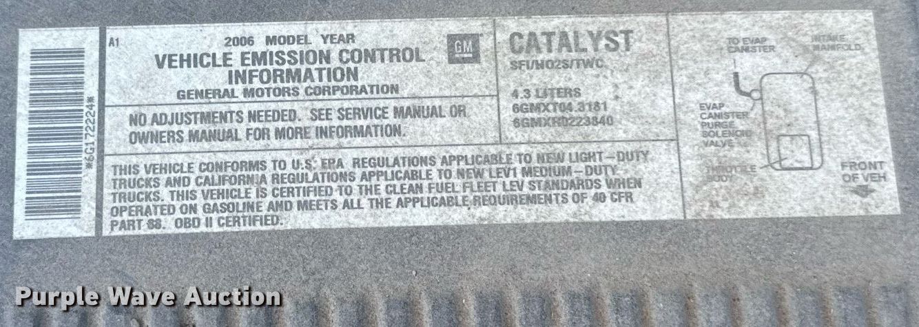2006 GMC Sierra 1500 pickup truck. Miles: 243,272 on odometer, VIN: 3GTEC14X46G172224. Engine Displacement: 4.3L V6 DOHC, Cylinders: 6, Fuel type: Gas. Transmission Automatic. Interior AC, Heat. Tires Size: 245/70R17. Notes Dash warning indicator: ABS, Brake, Airbag, Dead battery. Kansas title. Title distribution may be delayed up to 14 days from verification of funds. Industrial Maintenance Inc.. Topeka, KS 66618