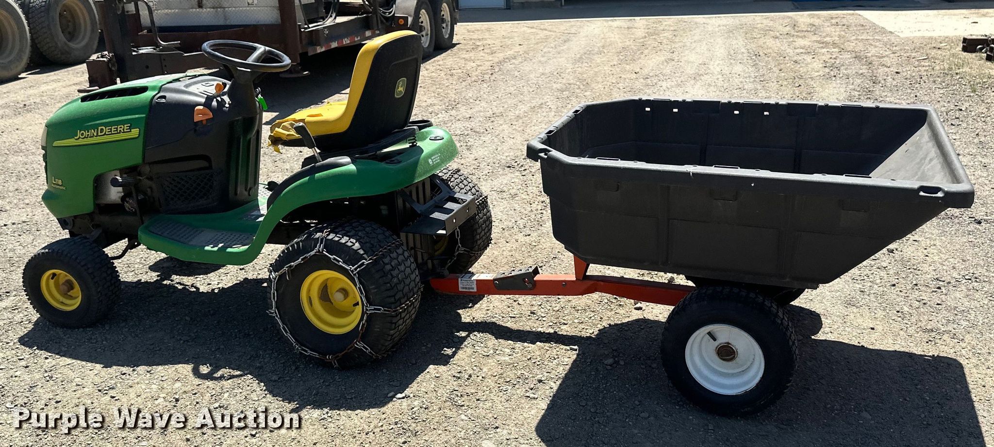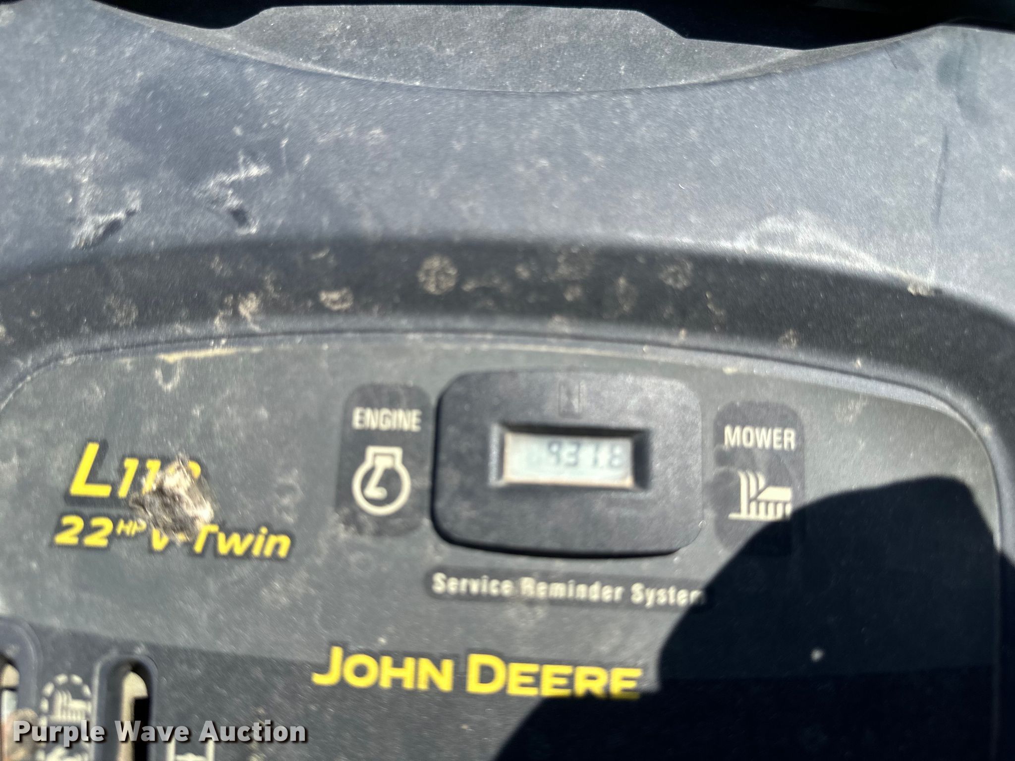 Purple Wave is selling a used Lawn Mower in Minnesota. This item is a John Deere L118 lawn mower with the following: Hours: 932 on meter