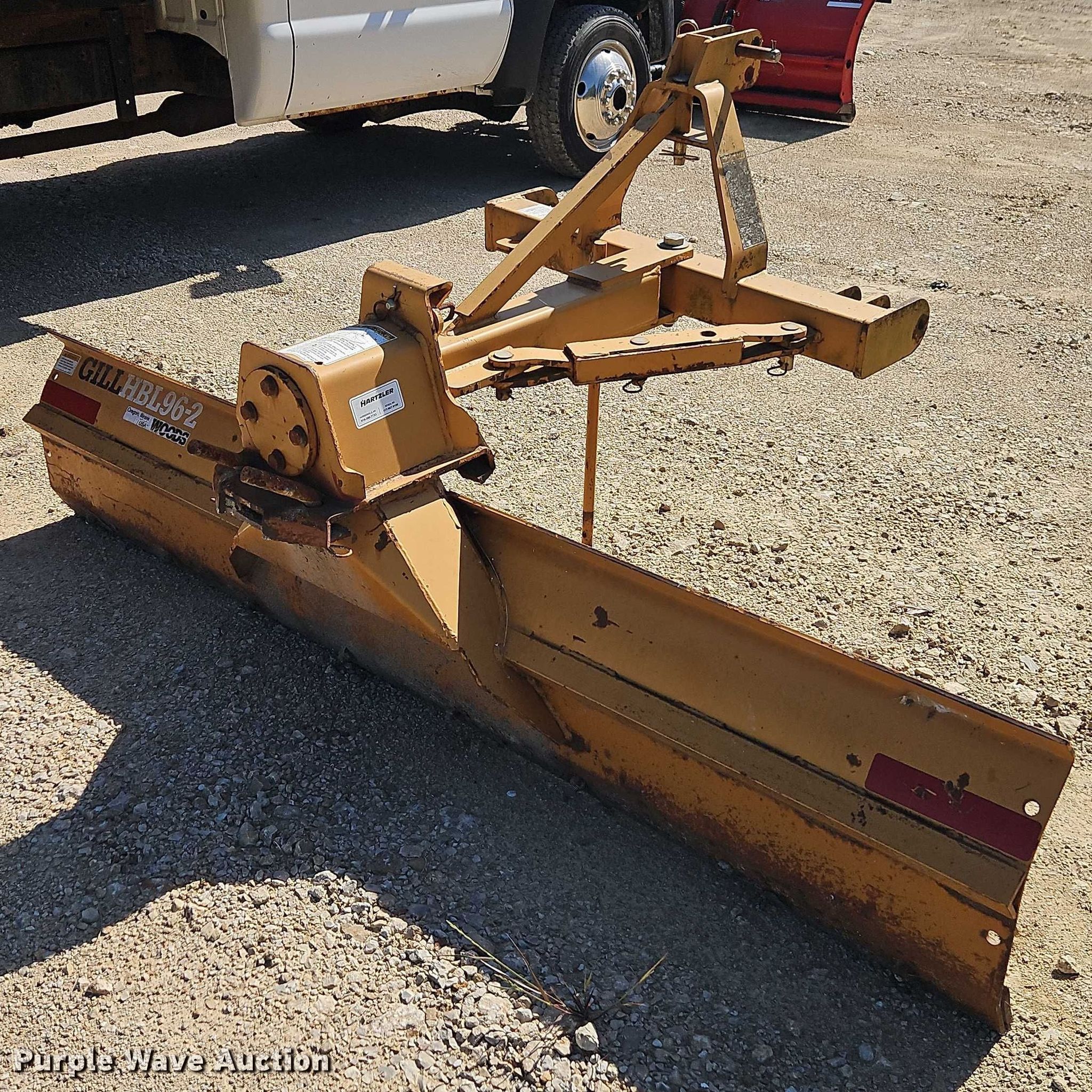 Purple Wave is selling a used Ag Tractor Loader or Attach. in Missouri. This item is a Woods HBL96-2 blade with the following: Serial: 1063041, Adjustable blade width: 8', Hitch: Three-point