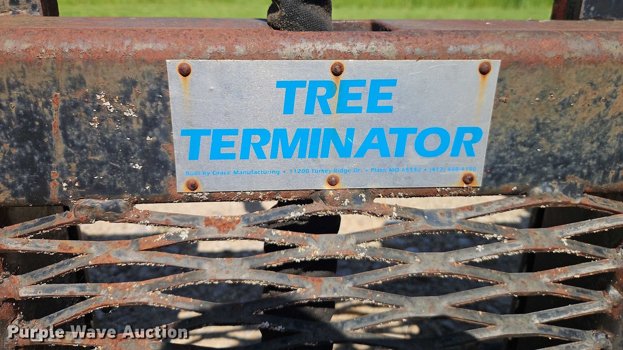 This Tree Terminator skid steer tree shear will sell to the highest bidder regardless of price.