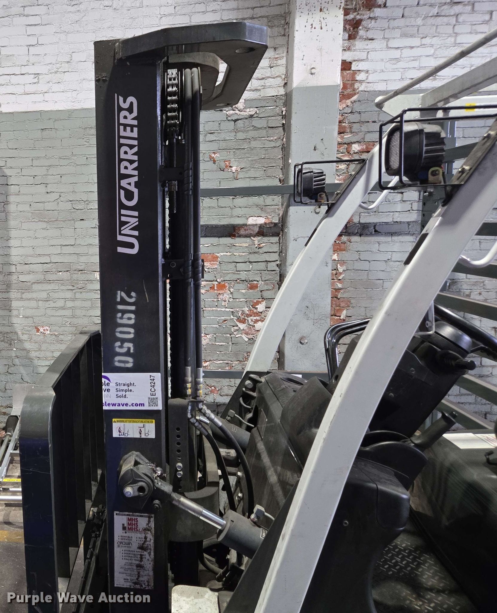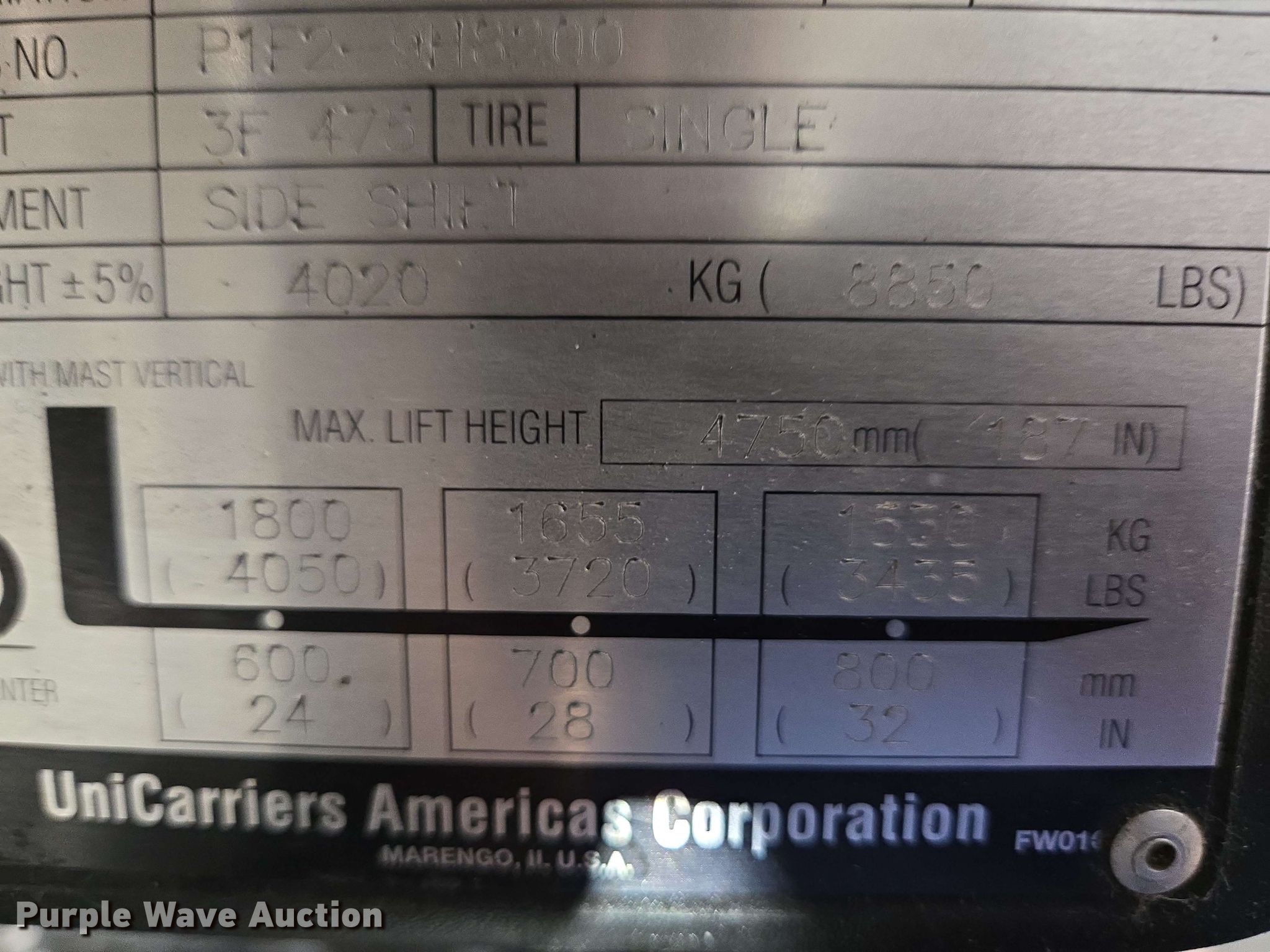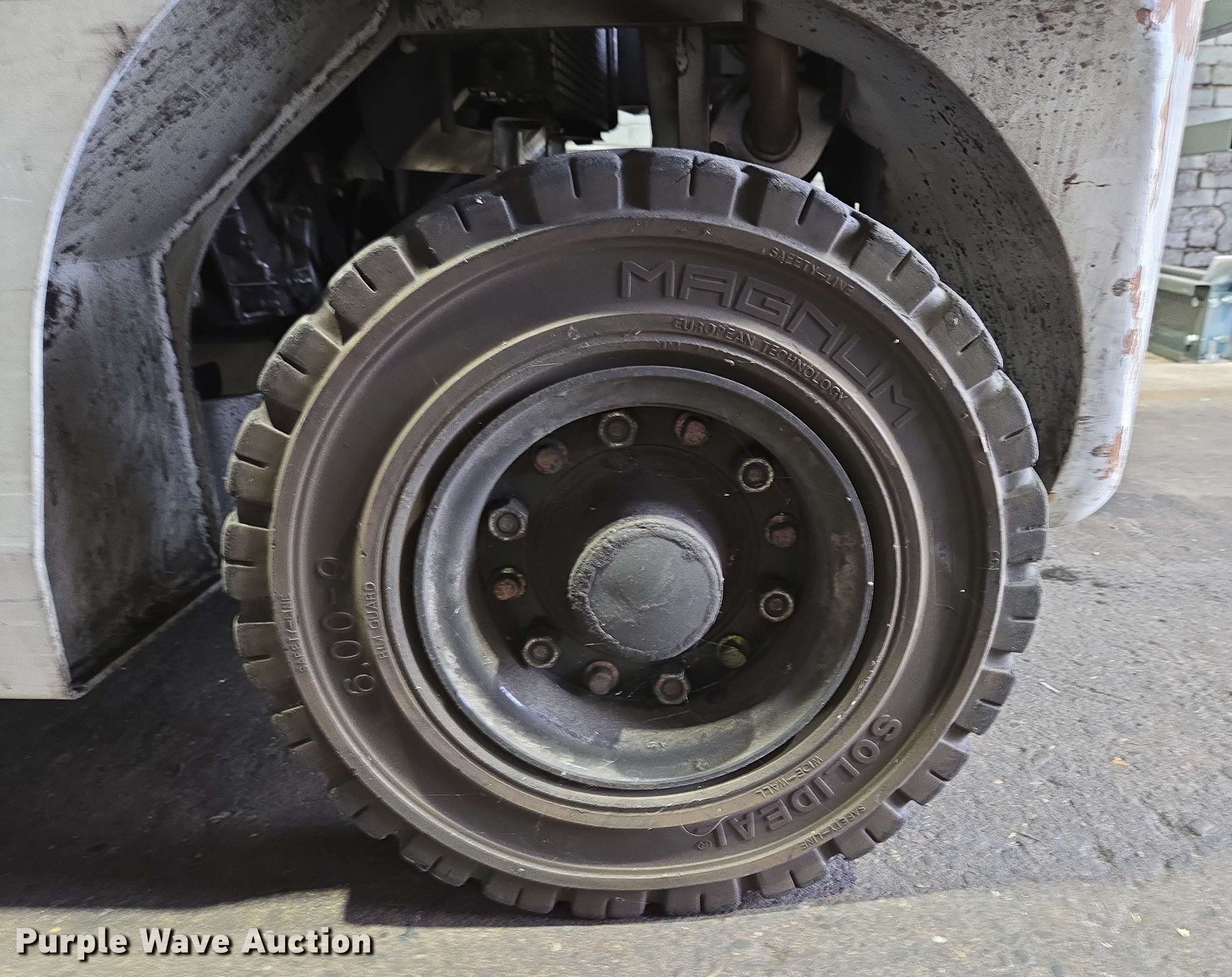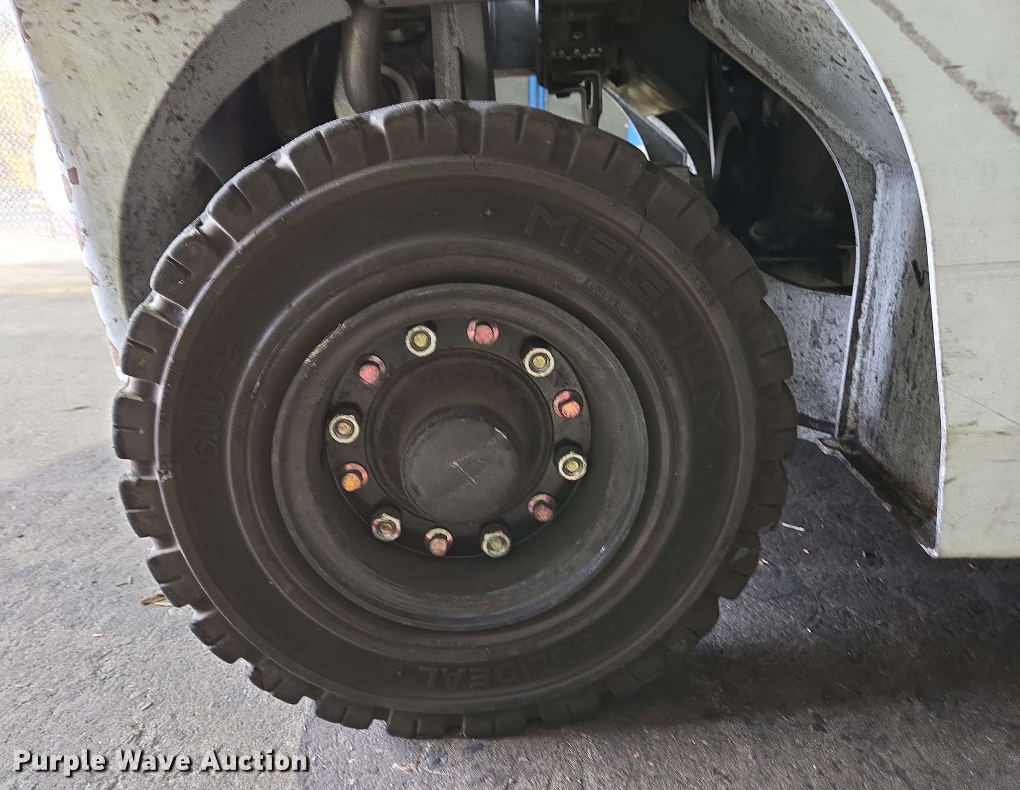 Purple Wave is selling a used Cushion Tire or Pneumatic Forklift in Pennsylvania. This item is a 2014 Nissan PF50 forklift with the following: Hours: 1,100 on meter, Serial: P1F2-9H8200, Unit #: SFS2063