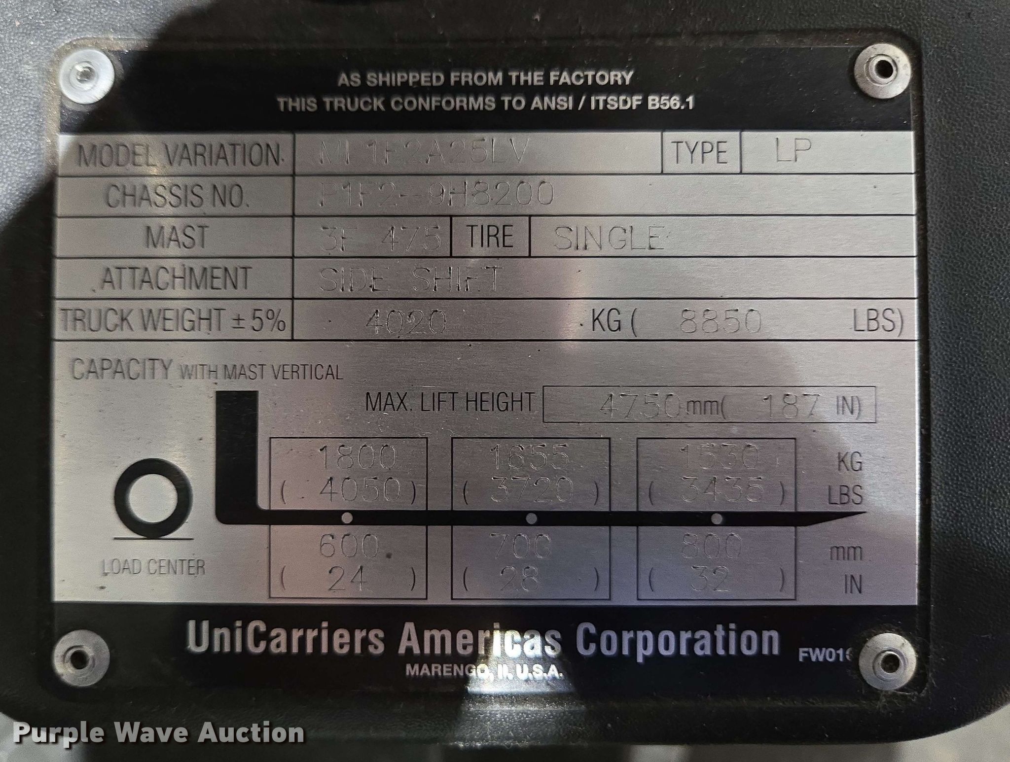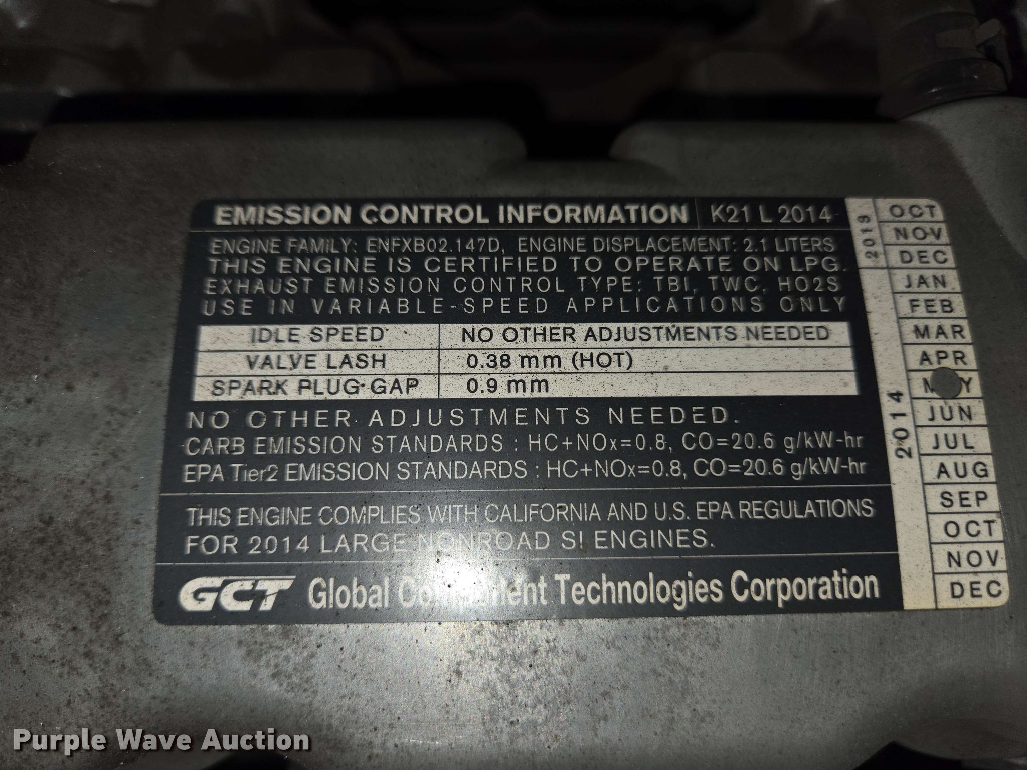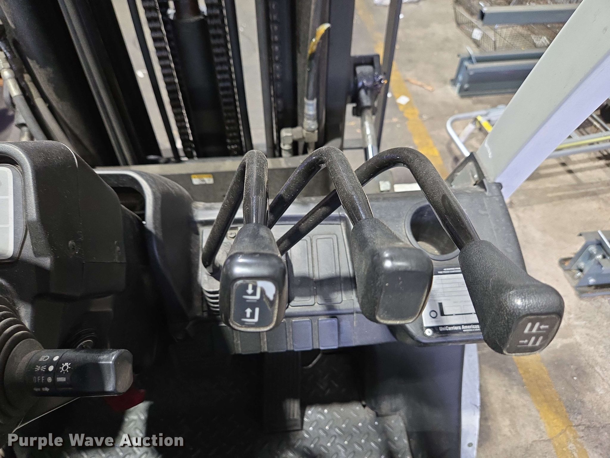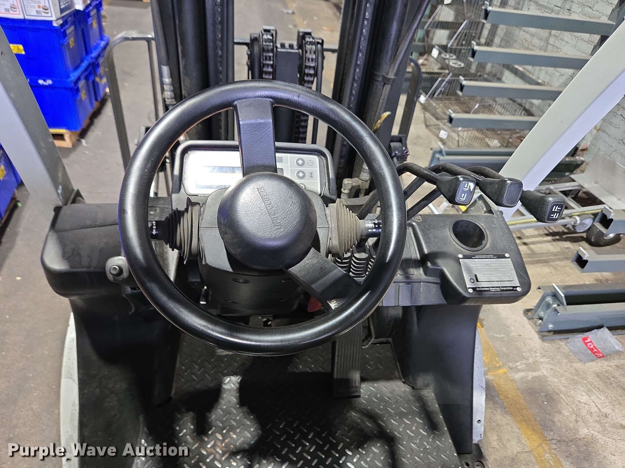 Purple Wave is selling a used Cushion Tire or Pneumatic Forklift in Pennsylvania. This item is a 2014 Nissan PF50 forklift with the following: Hours: 1,100 on meter, Serial: P1F2-9H8200, Unit #: SFS2063