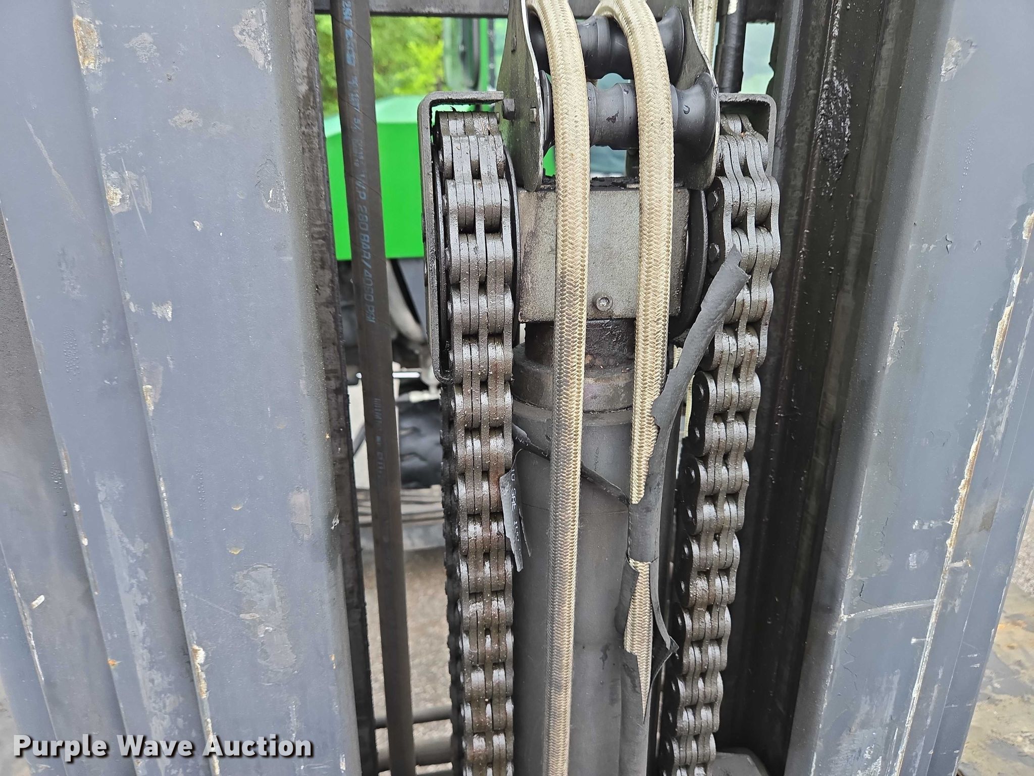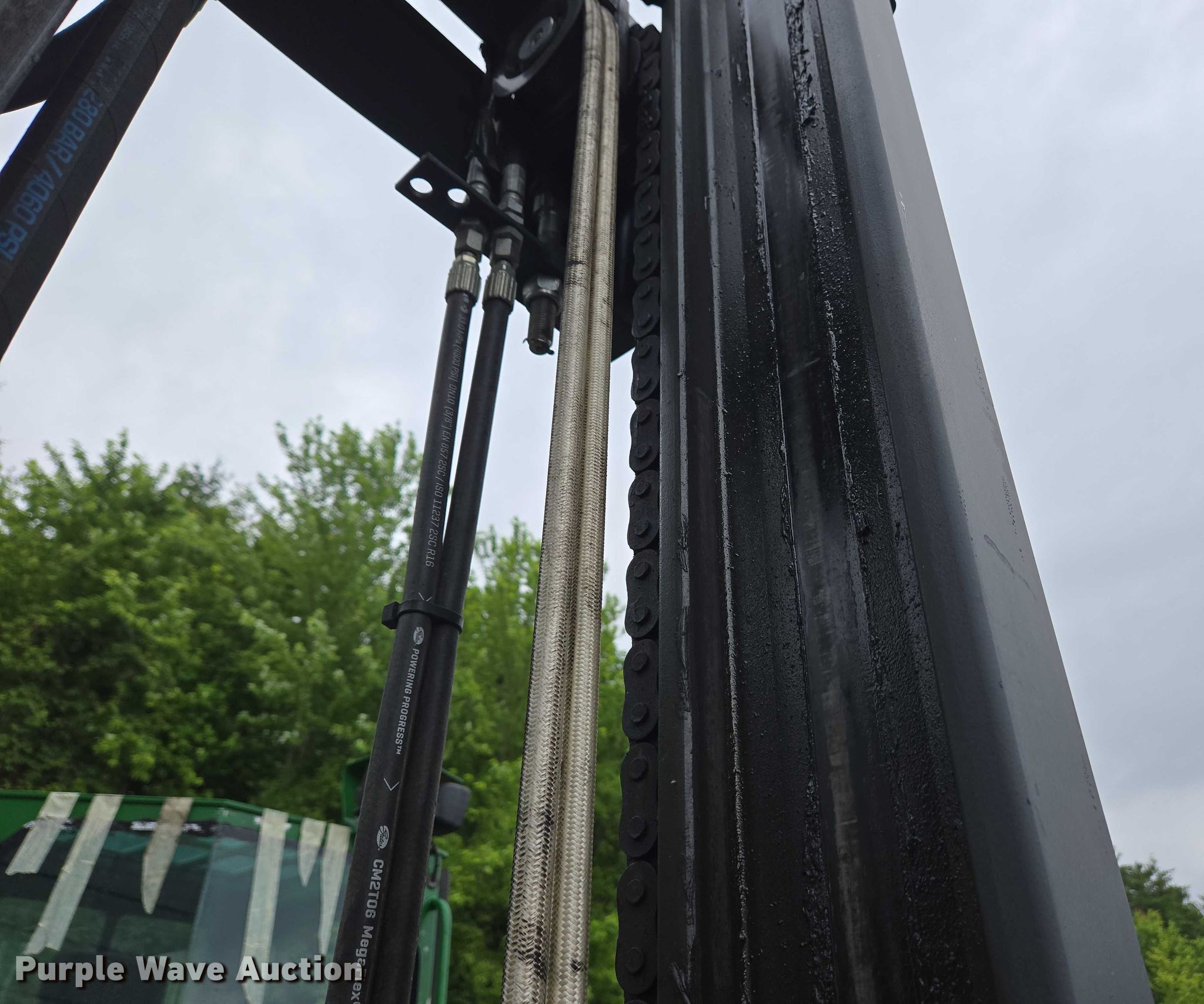 2016 CombiLift C8000 forklift. Hours: 1,770 on meter, Serial: 32326, Unit #: SFS1964. Engine Cylinders: 4, Fuel type: LPG LP bottle: Not included. Transmission Hydrostatic. Operators station OROPS. Features Maximum lift capacity: 7,100 lbs, Maximum lift height: 159", Collapsed mast height: 112", Mast stages: 3, Mast tilt, Fork positioner, Fork length: 48". Tires Front: 200/50-10, Rear: 27x10-12, Solid. Notes Non-operational exterior door latch. Ferguson. Louisville, KY 40213