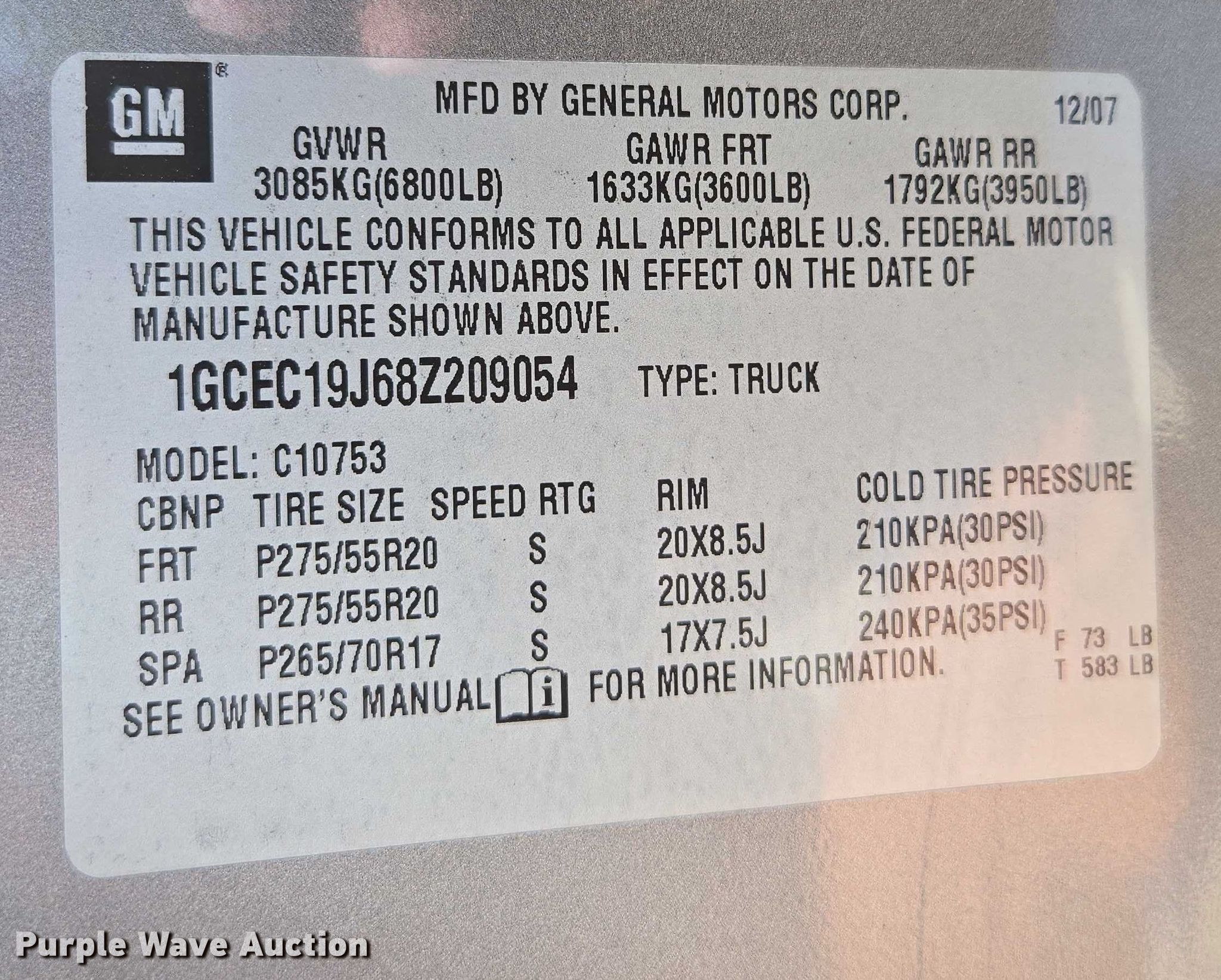Purple Wave is selling a used 1/2 Ton Pickup or Van in Arkansas. This item is a 2008 Chevrolet Silverado 1500 Ext. Cab pickup truck with the following: Miles: 210,579 on odometer, Hours: 1 on meter, VIN: 1GCEC19J68Z209054, Unit #: V40