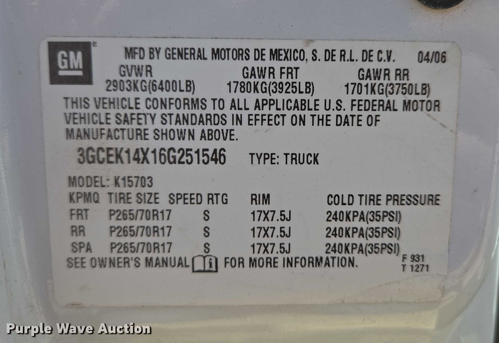 - VIN: 3GCEK14X16G251546