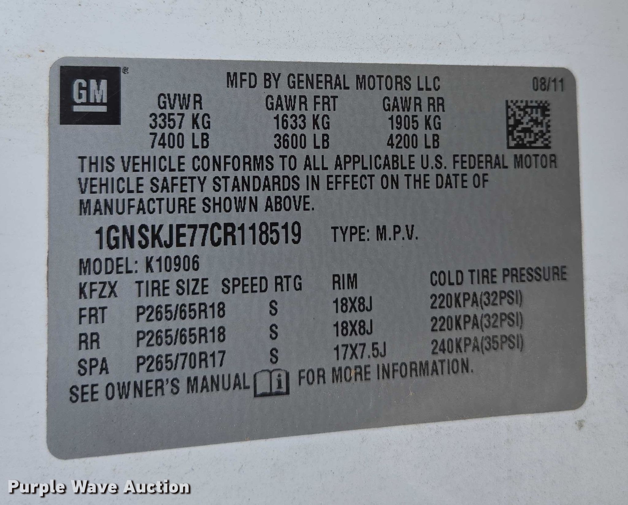 Take a look at this used 2012 Chevrolet Suburban 1500 SUV being sold on June 18th, 2025 in the SOLD! June 18 Vehicles and Equipment Auction made by Chevrolet. Take a look at all of the item information below or take a look at similar auctions for Passenger Vehicles.