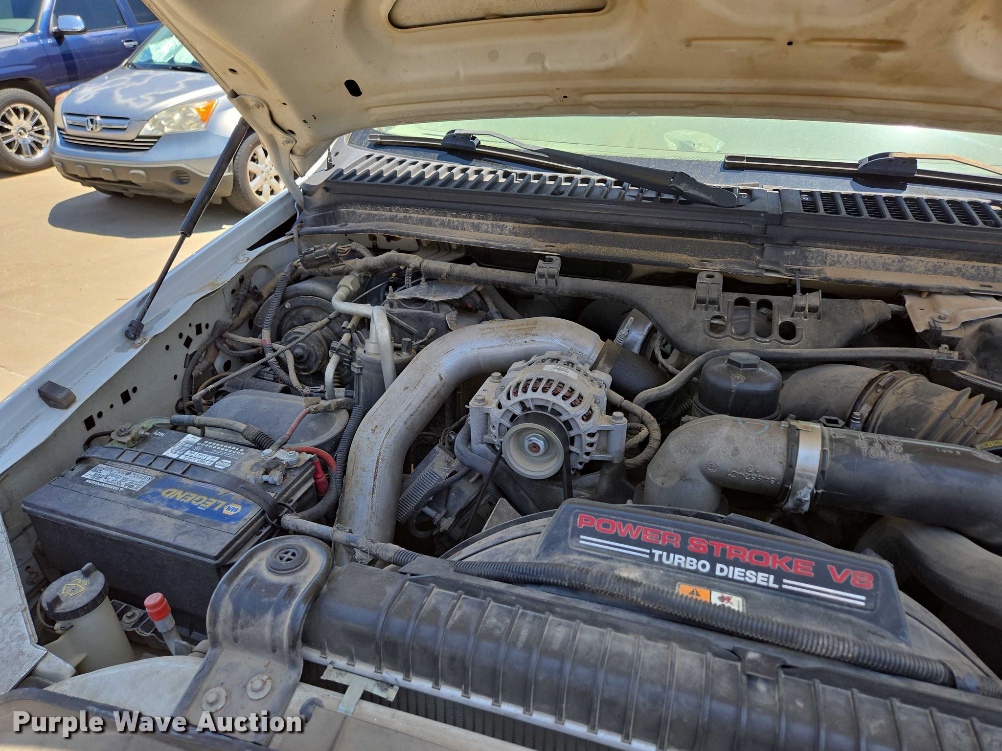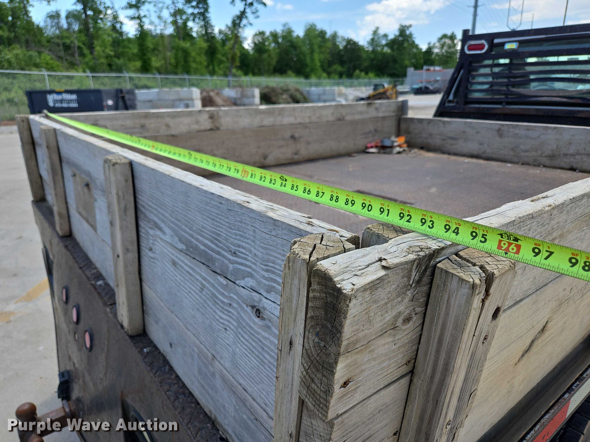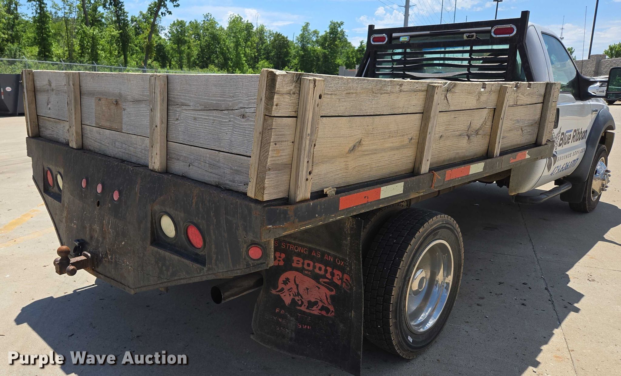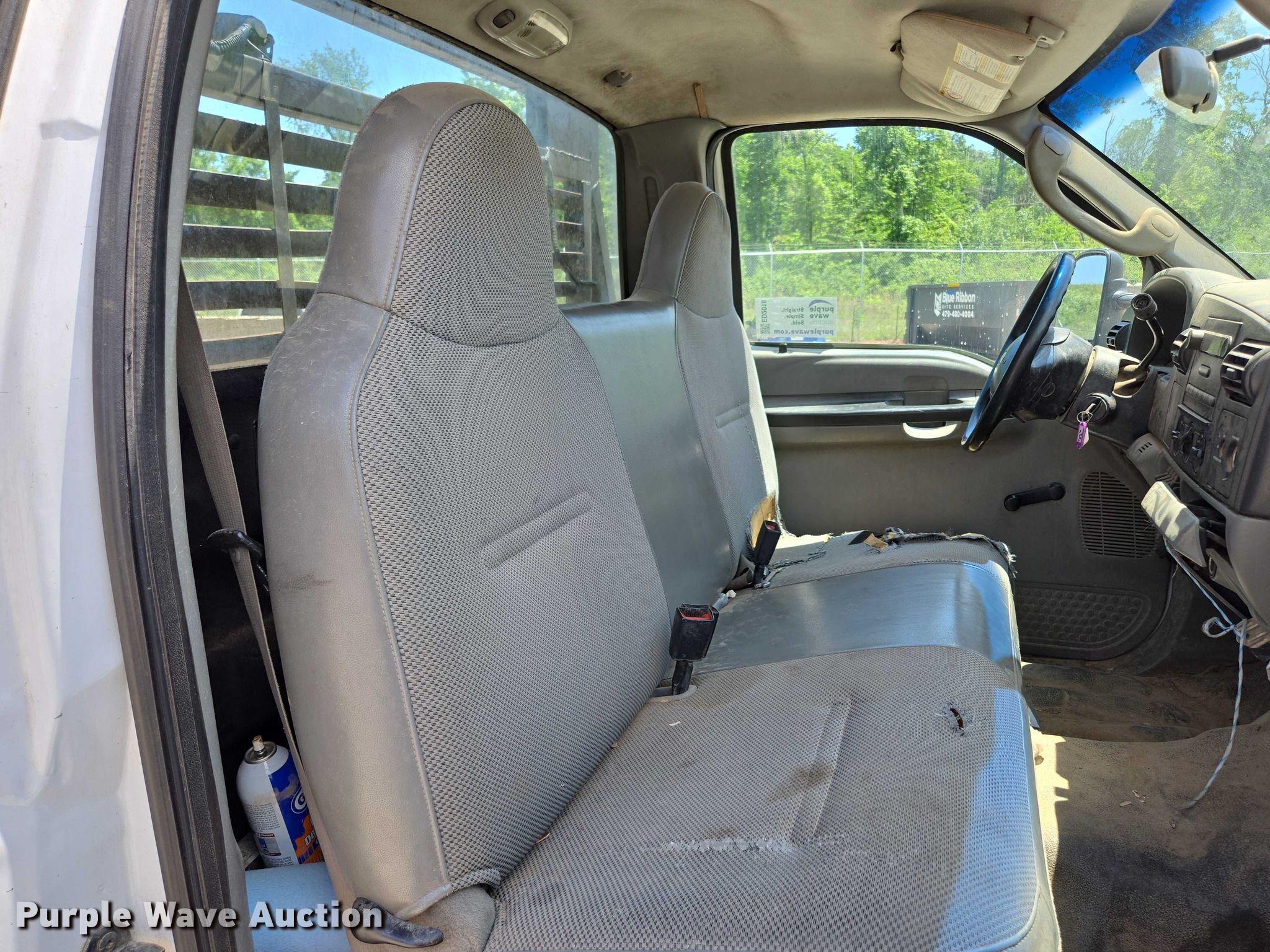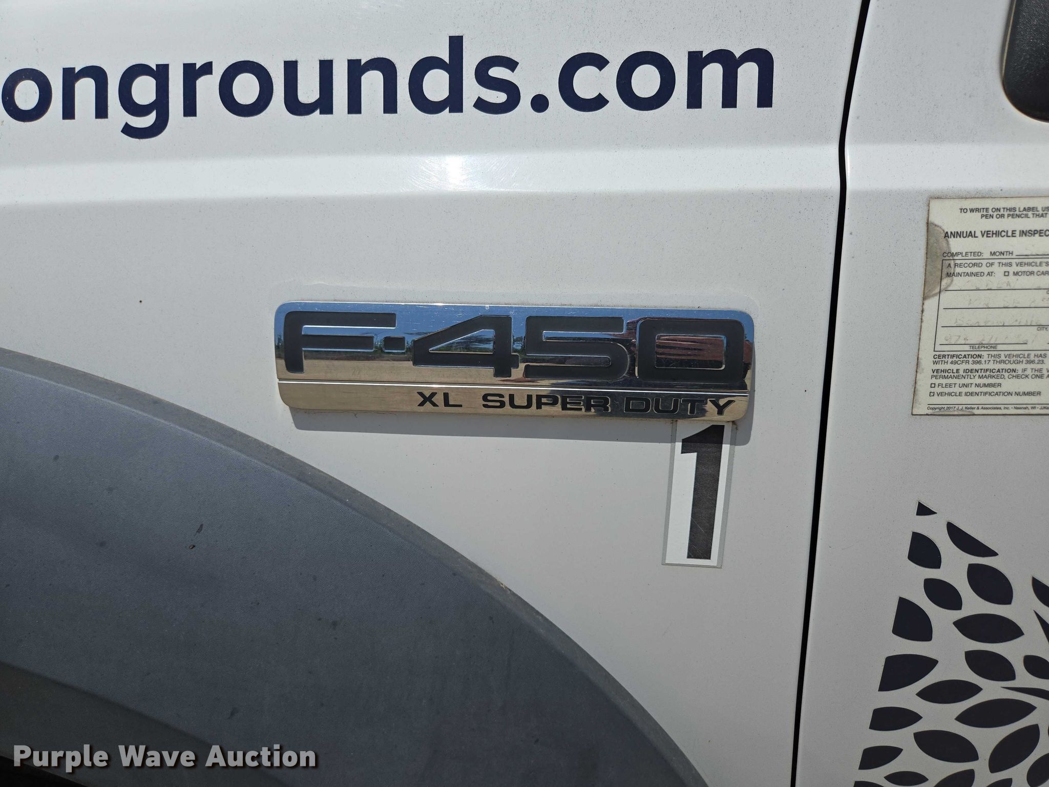 2006 Ford F450 Super Duty flatbed pickup truck. Miles: 161,415 on odometer, Hours: 5,594 on meter, VIN: 1FDXF46P66EB28923, Unit #: 1. Engine Displacement: 6.0L V8 OHV, Cylinders: 8, Fuel type: Diesel, HP: 325. Transmission Automatic. Chassis Axles: Single, Suspension: Spring, Brakes: Hydraulic, GVWR: 16,000 lbs. Interior AC, Heat, Auxiliary controls, Brake controller. Features Flatbed 10' 11.5" L x 96" W, Removable sides. Tires Size: 225/70R19.5. Notes Dash warning indicator: ABS, Dead battery, Oil Leak, Possible AC issues, may need charged. Arkansas title. Title distribution may be delayed up to 14 days from verification of funds. Blue Ribbon Outdoors. Rogers, AR 72758