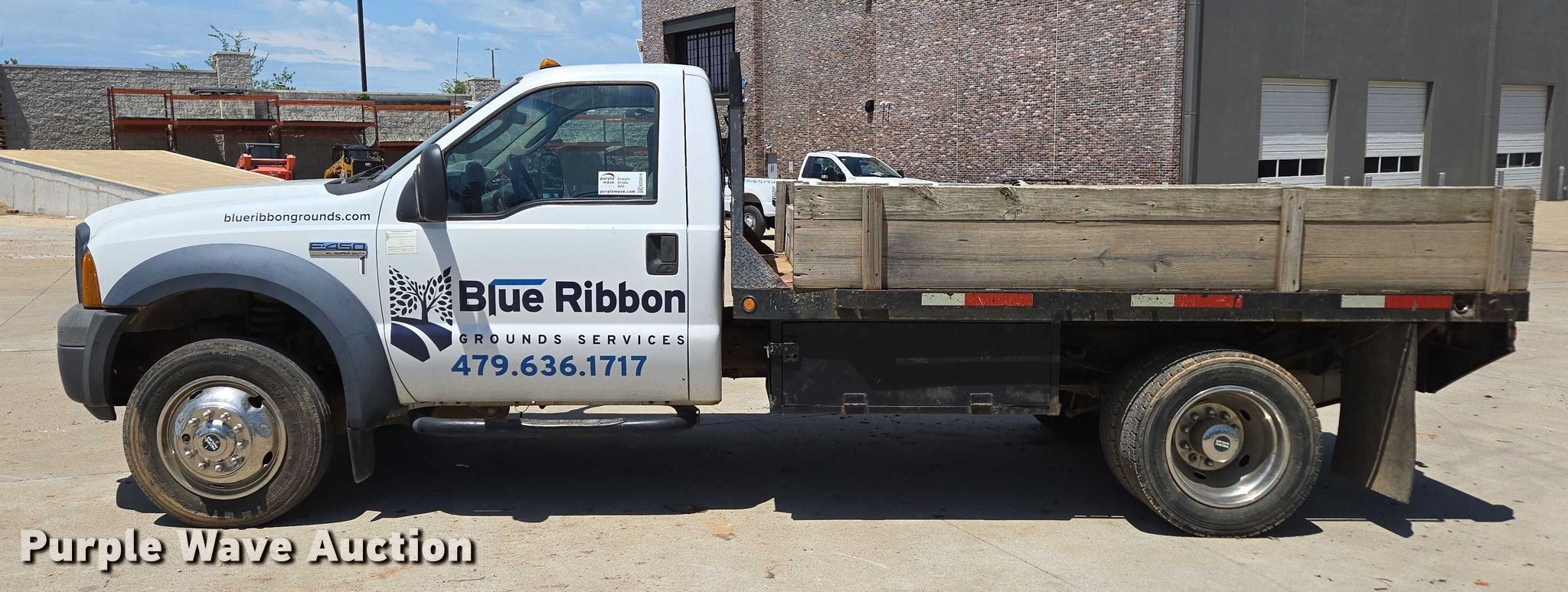 Purple Wave is selling a used Flat Bed Truck in Arkansas. This item is a 2006 Ford F450 Super Duty flatbed pickup truck with the following: Miles: 161,415 on odometer, Hours: 5,594 on meter, VIN: 1FDXF46P66EB28923, Unit #: 1