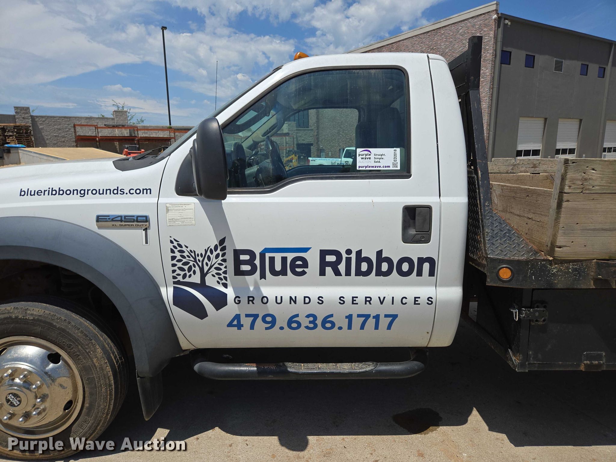 This 2006 Ford F450 Super Duty flatbed pickup truck will sell to the highest bidder regardless of price.