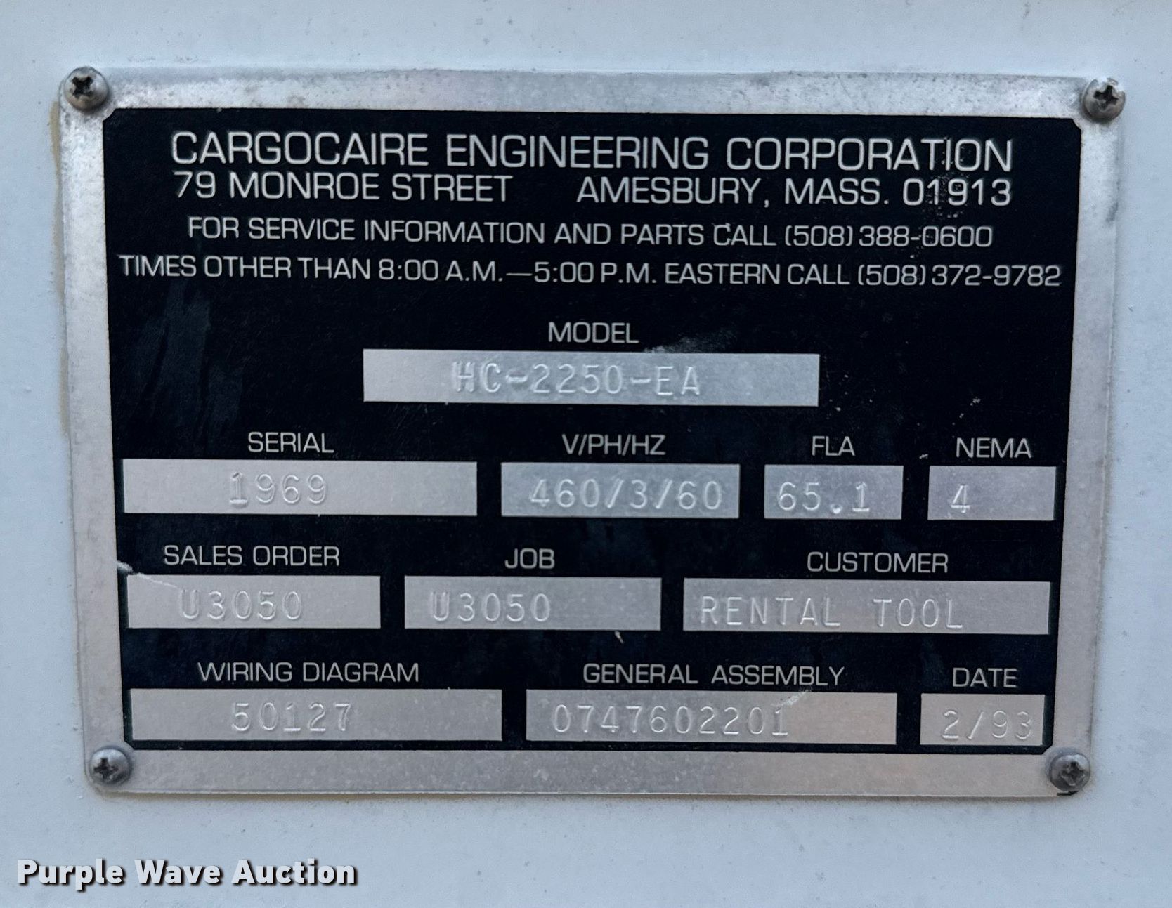 2000 Roadrunner Trailer Mfg 20ME22 utility trailer with generator. VIN: 4RTSE222XYS002606. Dimensions Overall: 26' L x 100" W, Deck: 22' L x 79" W. Features Deck type: Wood, Generator Multiquip Whisperwatt 60, Cylinders: 6, Fuel type: Diesel, KVA: 60, Phase: Three, Cargocaire HC-2250-EA Heater Serial: 1969, Phase: Three, Volts: 460, Hz: 60. Chassis Ball hitch: 2 5/16", Landing gear: Single, Suspension: Spring, Brakes: Electric, Axles: Tandem. Tires Steel wheels, Size: 7.50-16LT. Oklahoma title. Seller is an Oklahoma licensed motor vehicle dealer. Title will be assigned and distributed by the dealer. Please contact the seller for distribution questions. Title distribution may be delayed up to 30 days from verification of funds. Collinsville, OK 74021