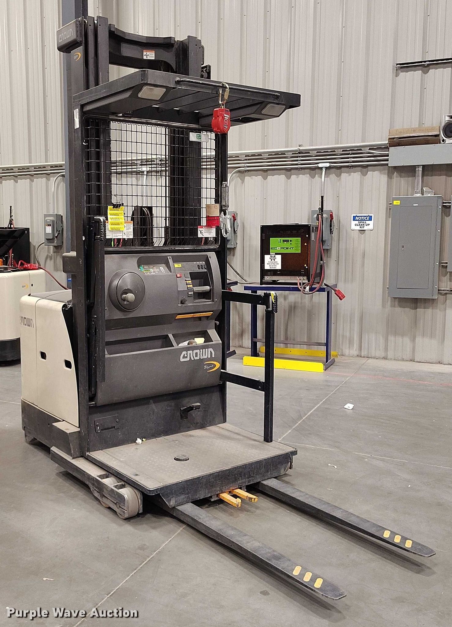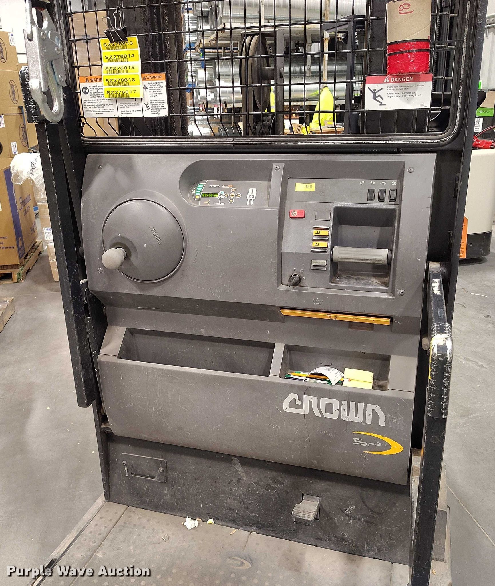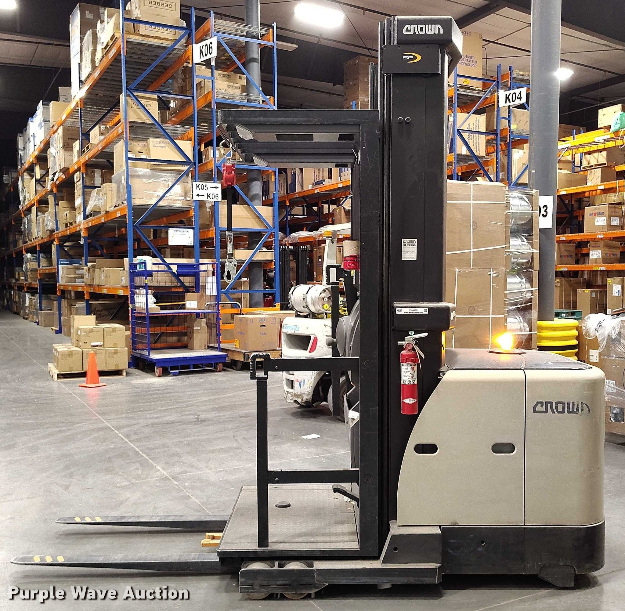 Purple Wave is selling a used Warehouse Forklift in Idaho. This item is a 2015 Crown SP3520-30 order picker with the following: Hours: 1,814 on meter, Serial: 1A435088, Unit #: SFS2037