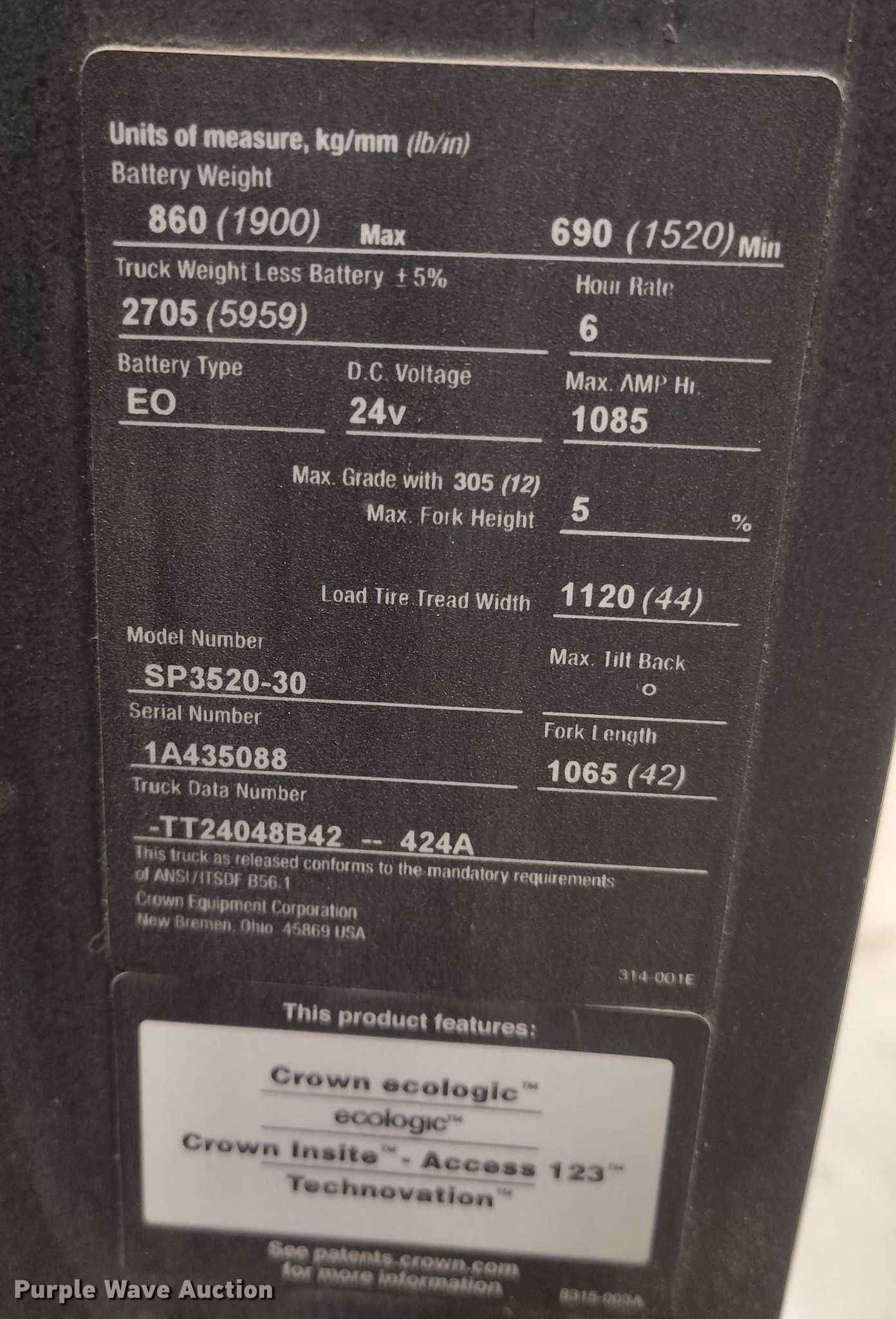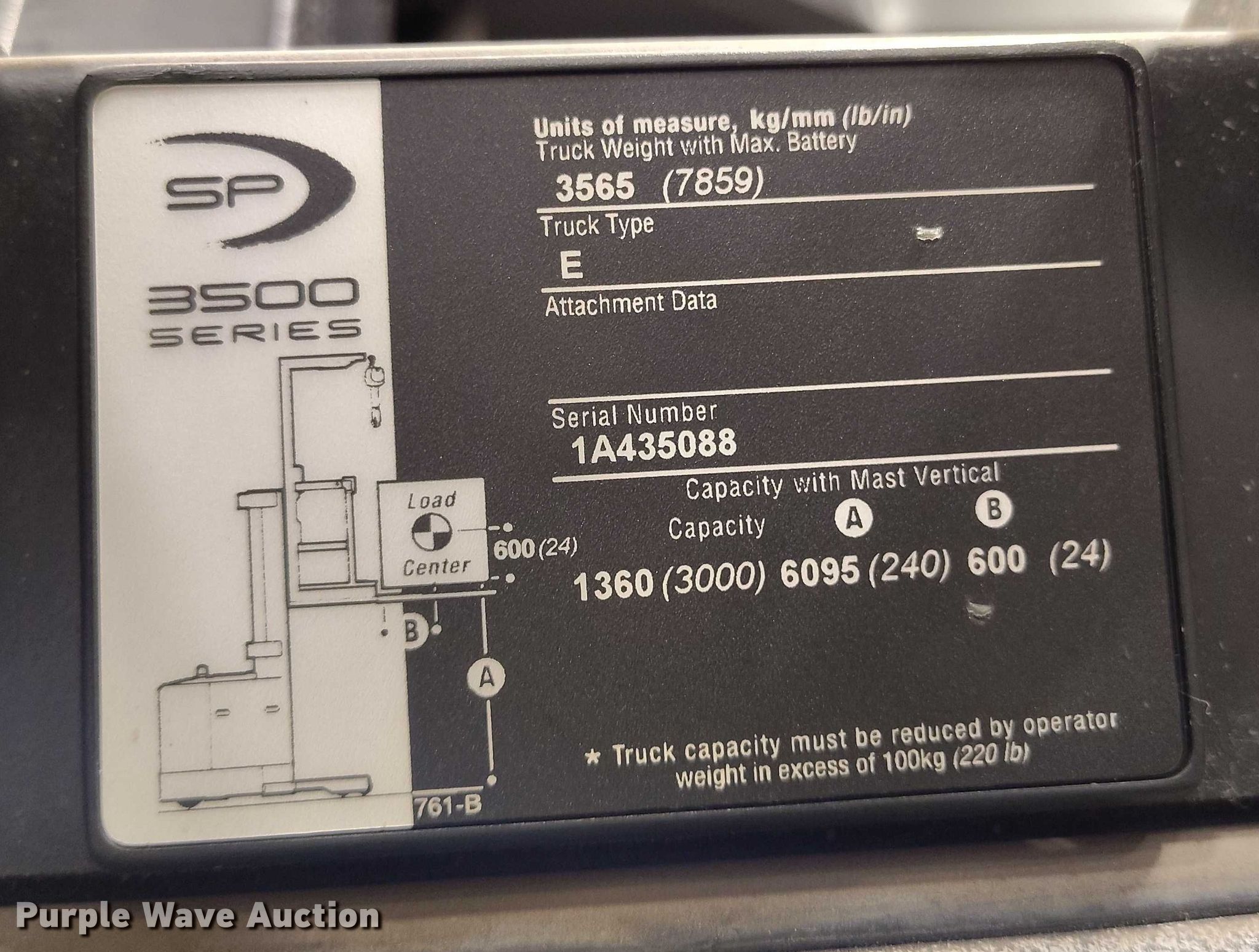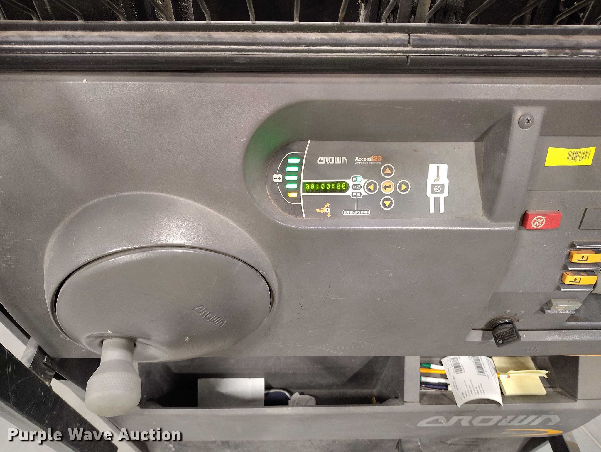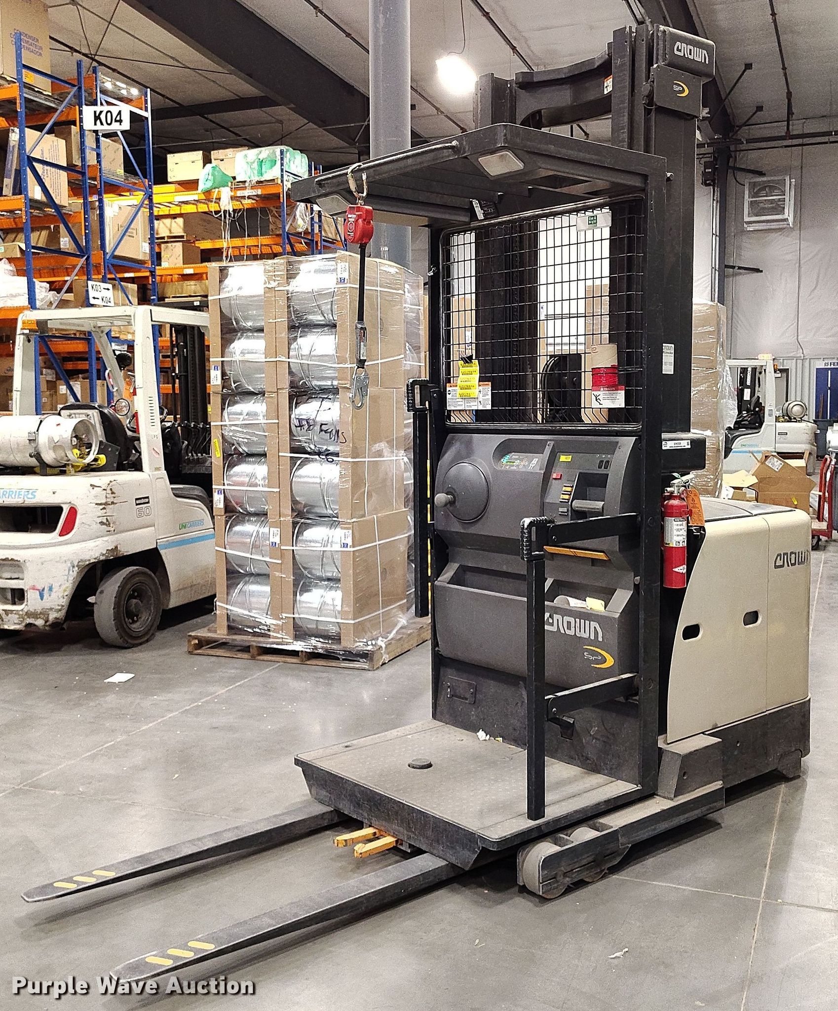 Purple Wave is selling a used Warehouse Forklift in Idaho. This item is a 2015 Crown SP3520-30 order picker with the following: Hours: 1,814 on meter, Serial: 1A435088, Unit #: SFS2037