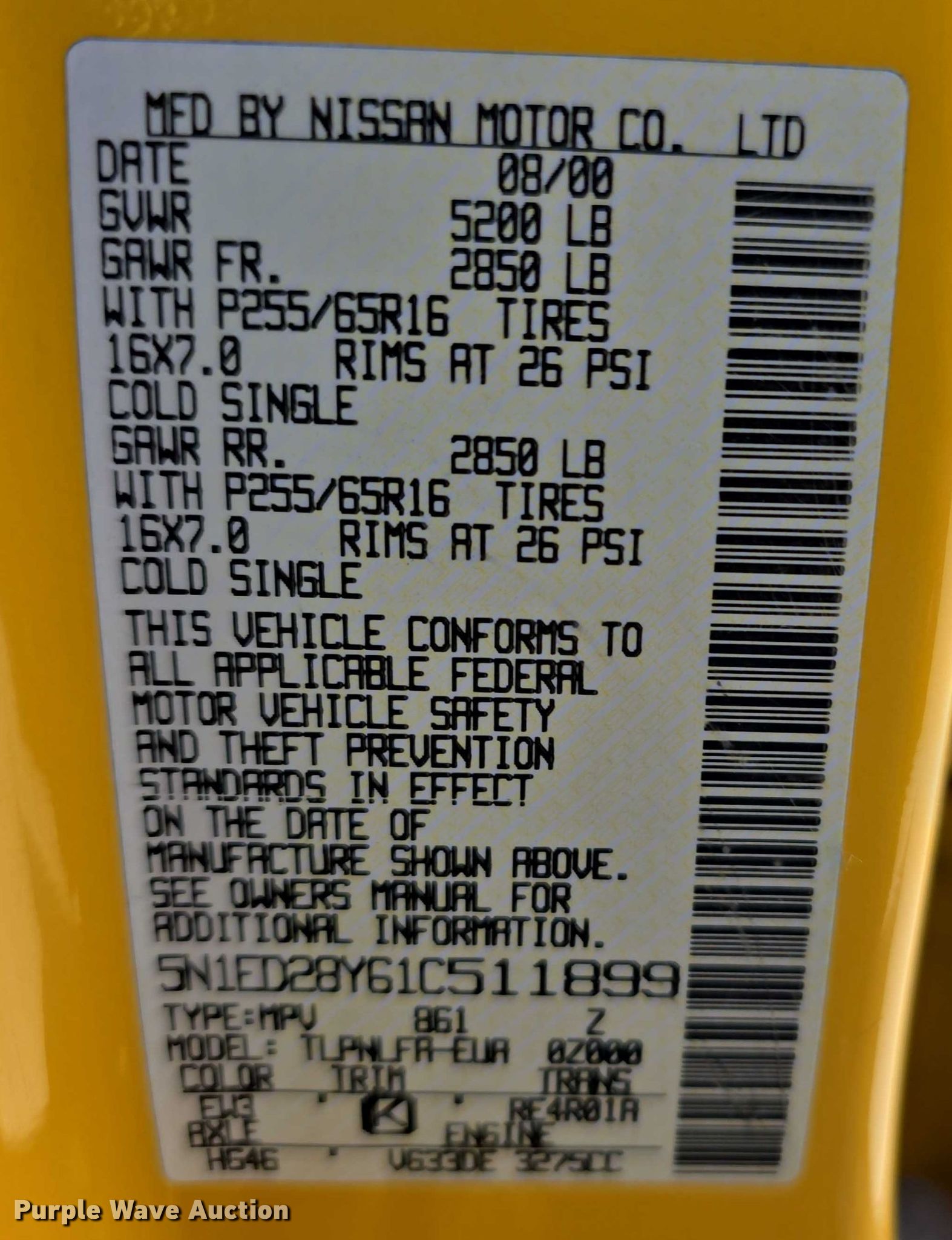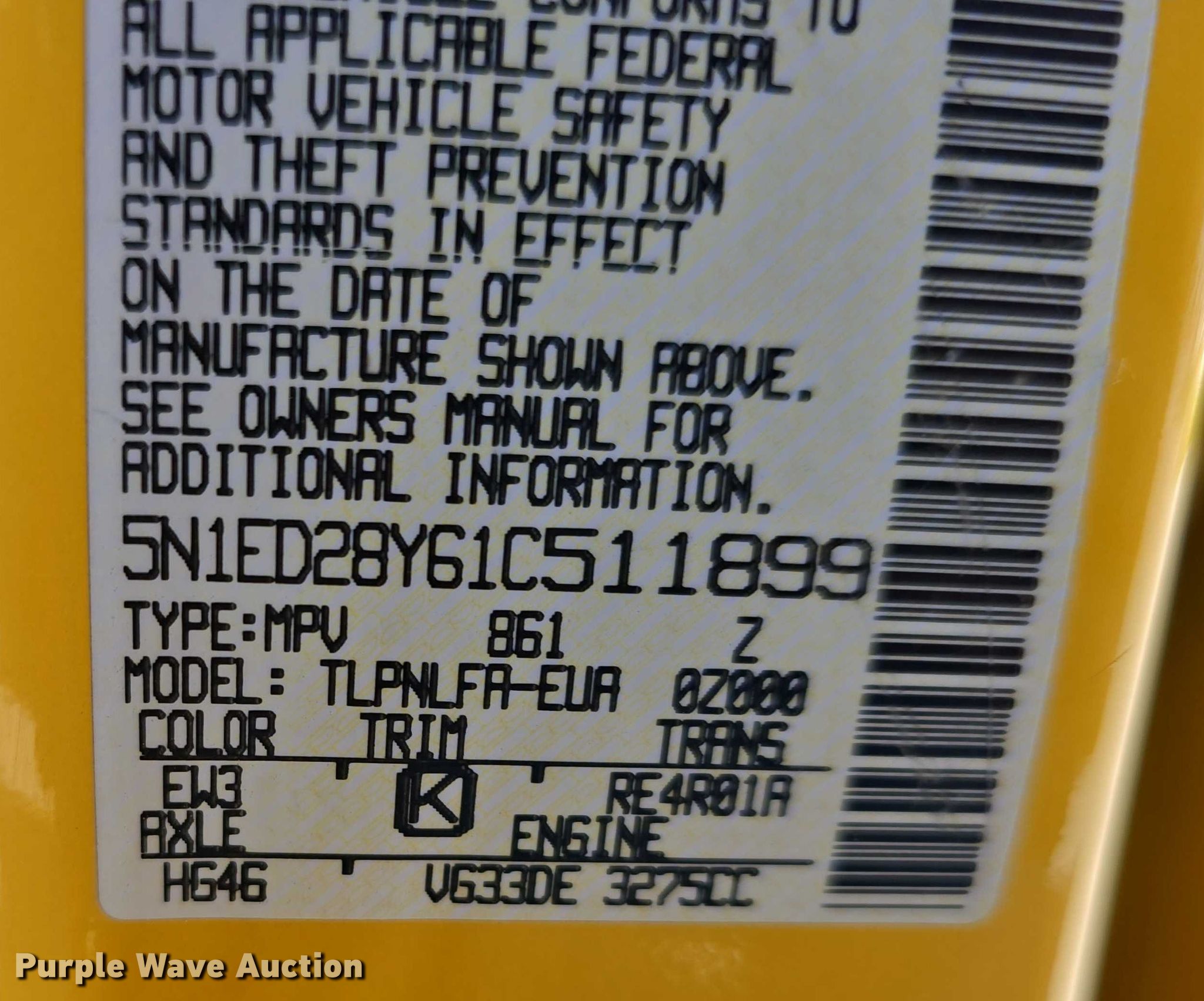 - VIN: 5N1ED28Y61C511899