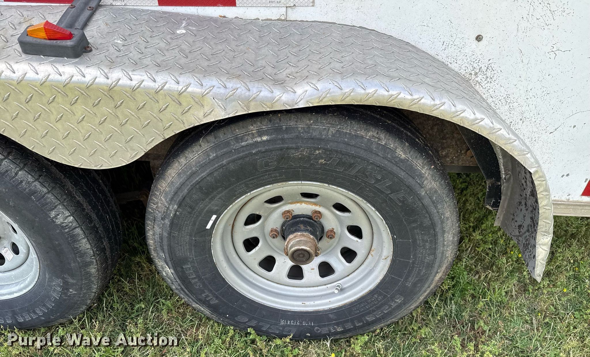 2009 Express Trailer enclosed cargo trailer. VIN: 5NHUFX4299Y003844. Dimensions Overall: 19' L x 102" W, Body: 14' L x 84" W, Rear door / ramp 82" L x 72" W. Features Deck type: Wood. Chassis Ball hitch: 2 5/16", Landing gear: Single, Suspension: Spring, Brakes: Electric, Axles: Tandem. Tires Steel wheels, Size: 225/75R15. Transfer of ownership documentation will be a bill of sale. Noble, OK 73068