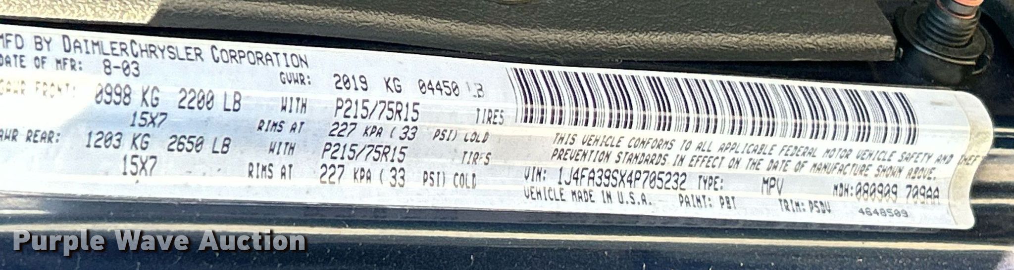 • VIN: 1J4FA39SX4P705232