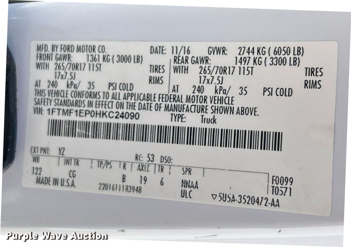 This 2017 Ford F150 XL pickup truck will sell to the highest bidder regardless of price.