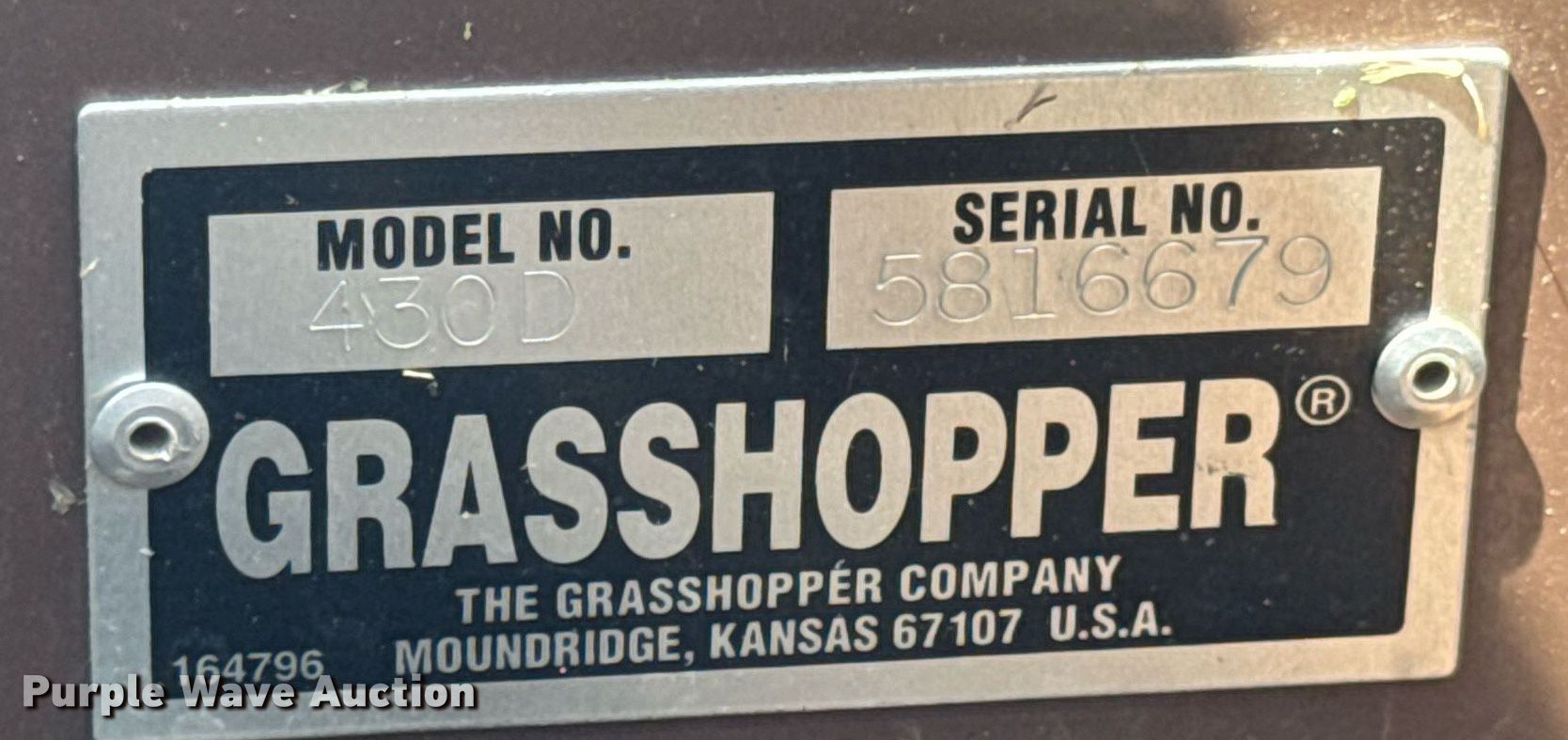 Purple Wave is selling a used Commercial Turf Mower in Missouri. This item is a Grasshopper 430D ZTR lawn mower with the following: Hours: 1,470 on meter, Cutting width: 72", Serial: 5816679