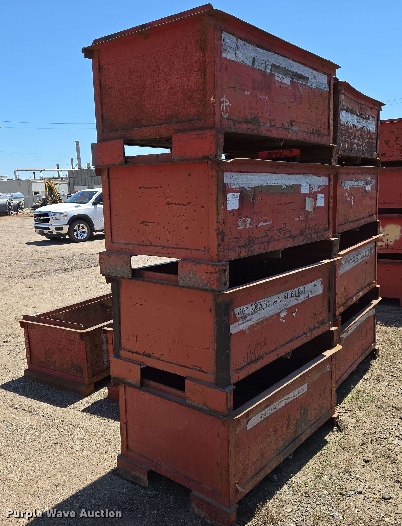 (10) job boxes. 54" L x 34" W, Depth: 18". AMR Steel. Wichita, KS 67214