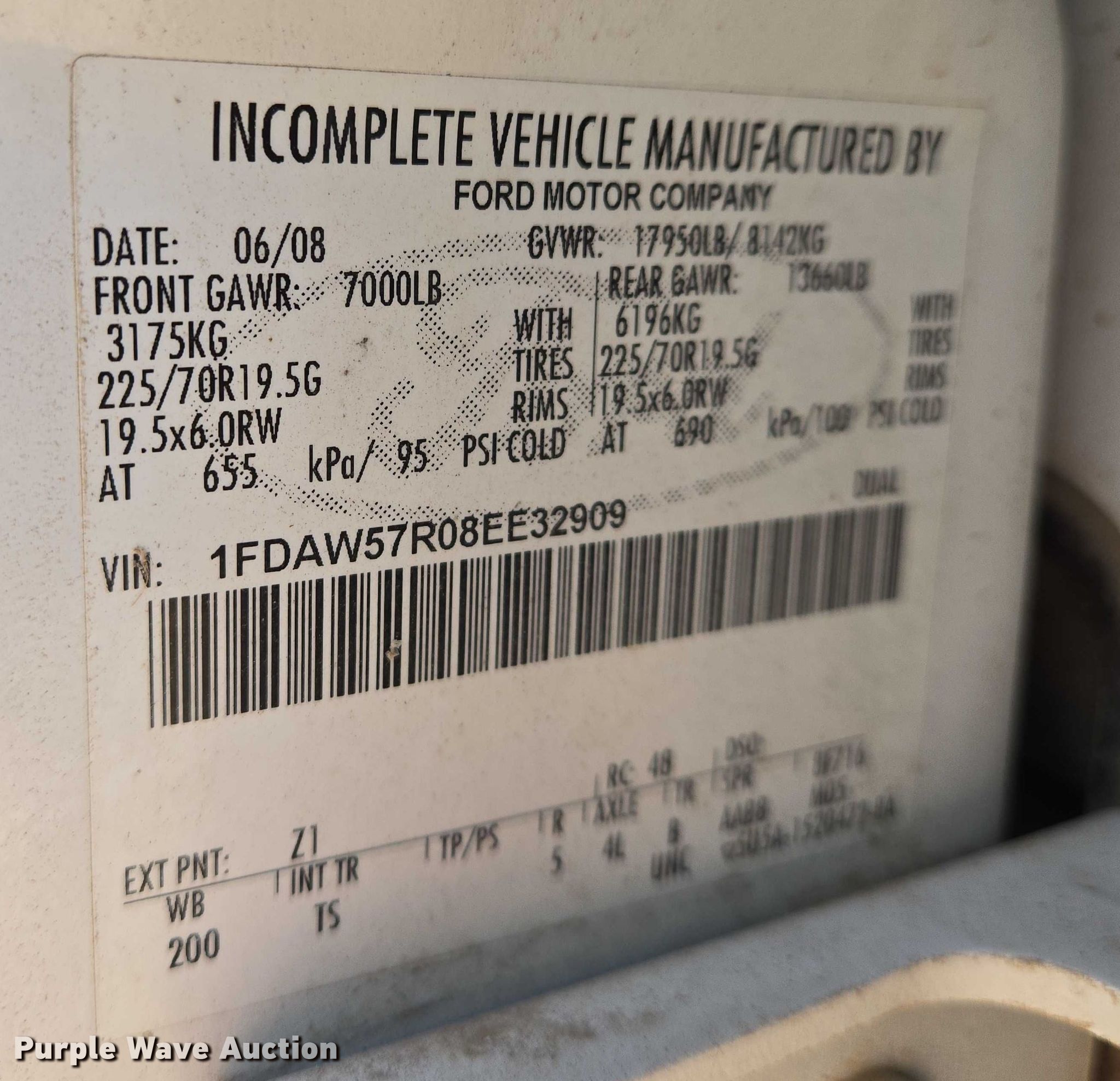 2008 Ford F550 Super Duty XL Crew Cab dump truck. Miles: 142,197 on odometer, VIN: 1FDAW57R08EE32909, Unit #: T5S. Engine Displacement: 6.4L, Cylinders: 8, Fuel type: Diesel. Transmission Automatic. Chassis Axles: Single, Suspension: Spring, Four wheel drive. Interior AC, Heat, Power windows, Cruise control. Features Dump bed CM DP-1197734, 11' L x 97" W, Bed type: Steel. Tires Size: 225/70R19.5. Notes Non-operational engine, needs replaced , Dead battery, Non-operational unit Unit must be towed or hauled. View repairs. Kansas title. Title distribution may be delayed up to 14 days from verification of funds. Universal Communications, LLC. El Dorado, KS 67042