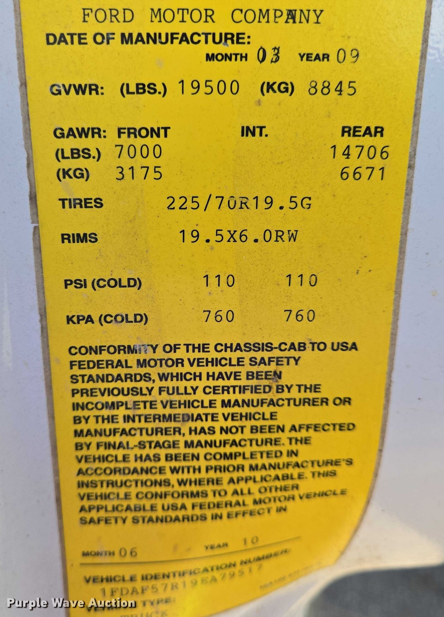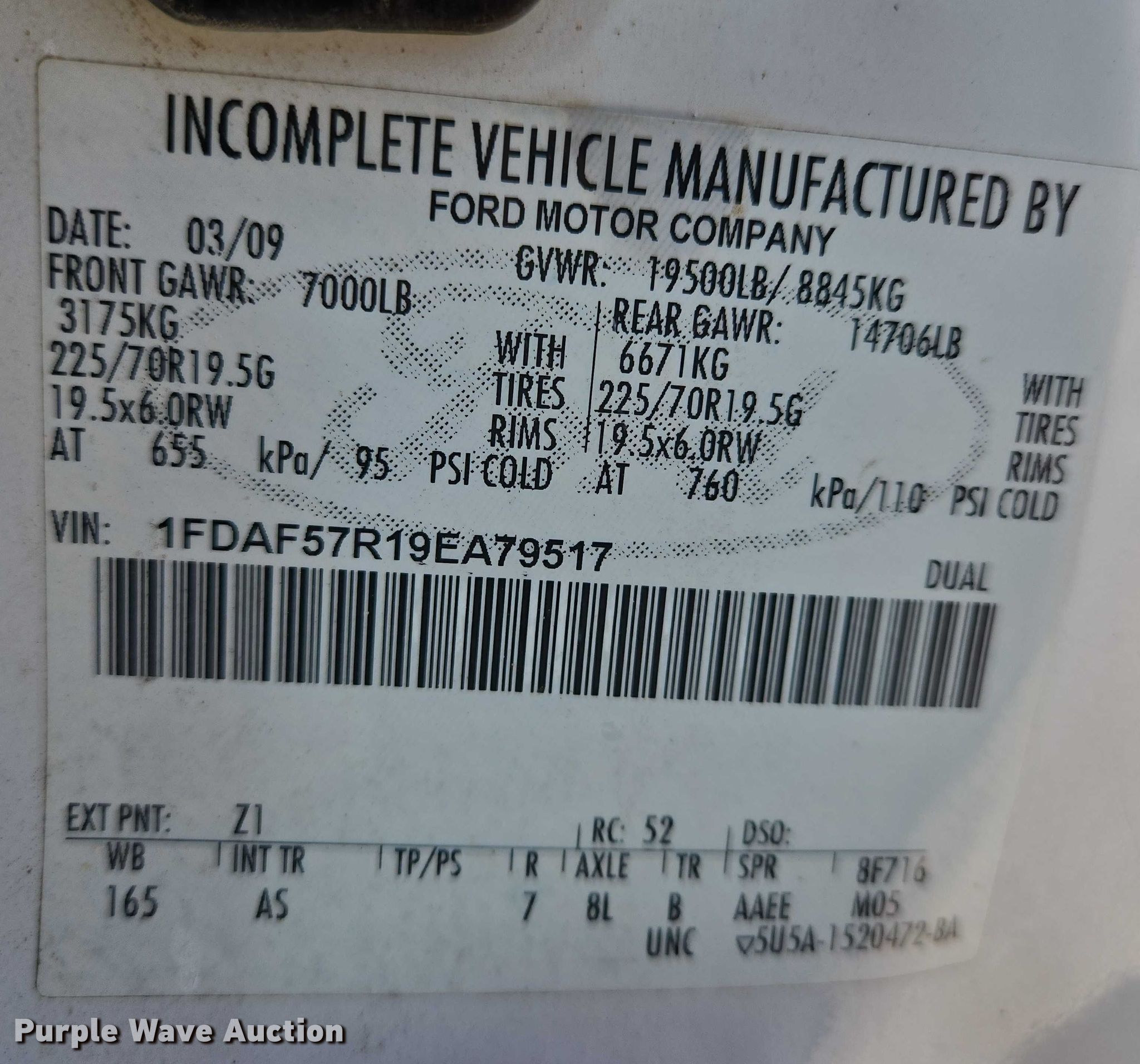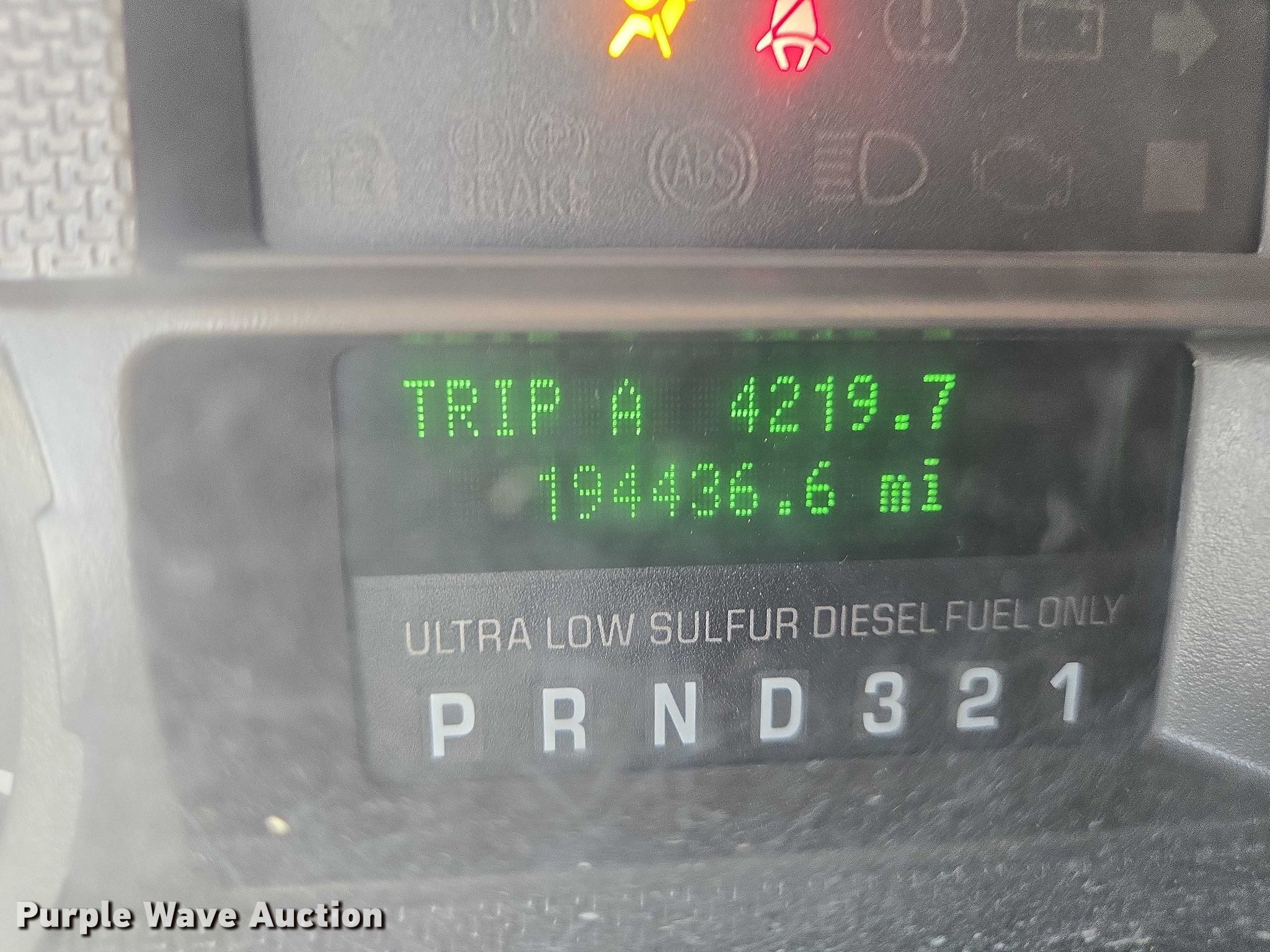 2009 Ford F550 Super Duty XL bucket truck. Miles: 194,437 on odometer, Hours: 1,547 on meter, VIN: 1FDAF57R19EA79517. Engine Displacement: 6.4L, Cylinders: 8, Fuel type: Diesel. Transmission Automatic. Chassis Four wheel drive, Axles: Single, Suspension: Spring, Brakes: Hydraulic, PTO. Interior AC, Heat. Features Bed 13' 4" L x 94" W, Boom ETI ETC37H, Maximum lift capacity: 350 lbs, Maximum lift height: 37', Boom type: Insulated, Man basket, Boom controls Ground, Platform/ basket.. Tires Size: 245/70R19.5. Notes Dash warning indicator: Airbag. Kansas title. Title distribution may be delayed up to 30 days from verification of funds. Universal Communications, LLC. El Dorado, KS 67042