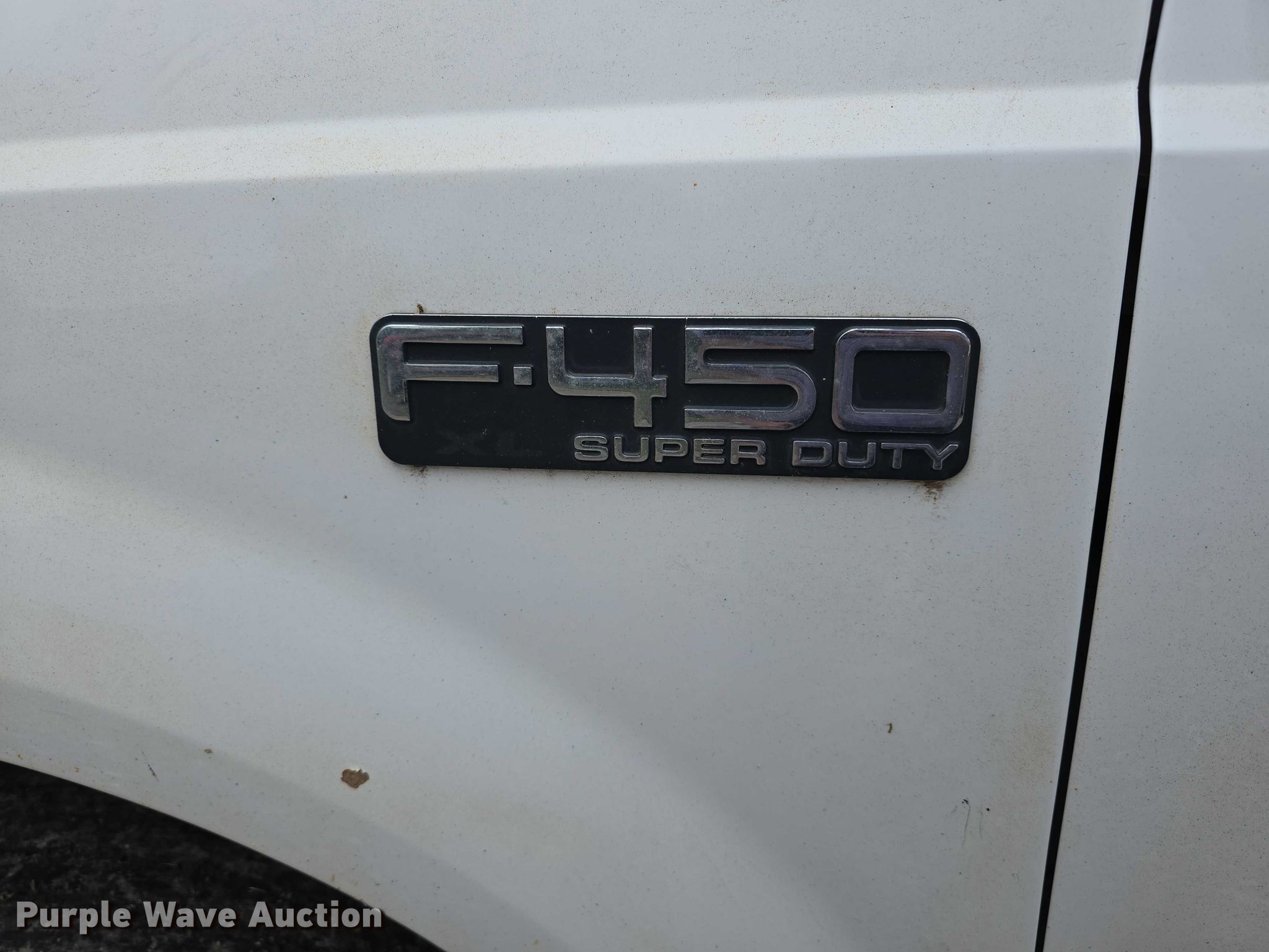 This 2001 Ford F450 Super Duty flatbed truck will sell to the highest bidder regardless of price.