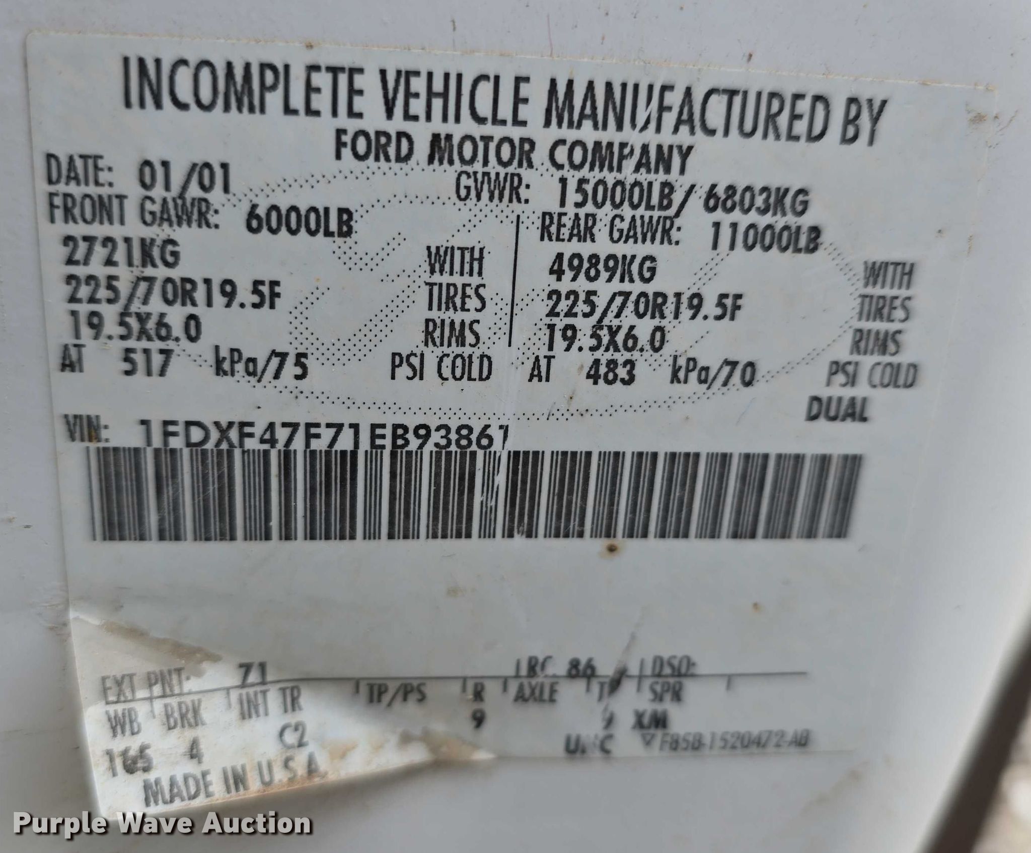 Purple Wave is selling a used Flat Bed Truck in Nebraska. This item is a 2001 Ford F450 Super Duty flatbed truck with the following: Miles: 162,620 on odometer, VIN: 1FDXF47F71EB93861