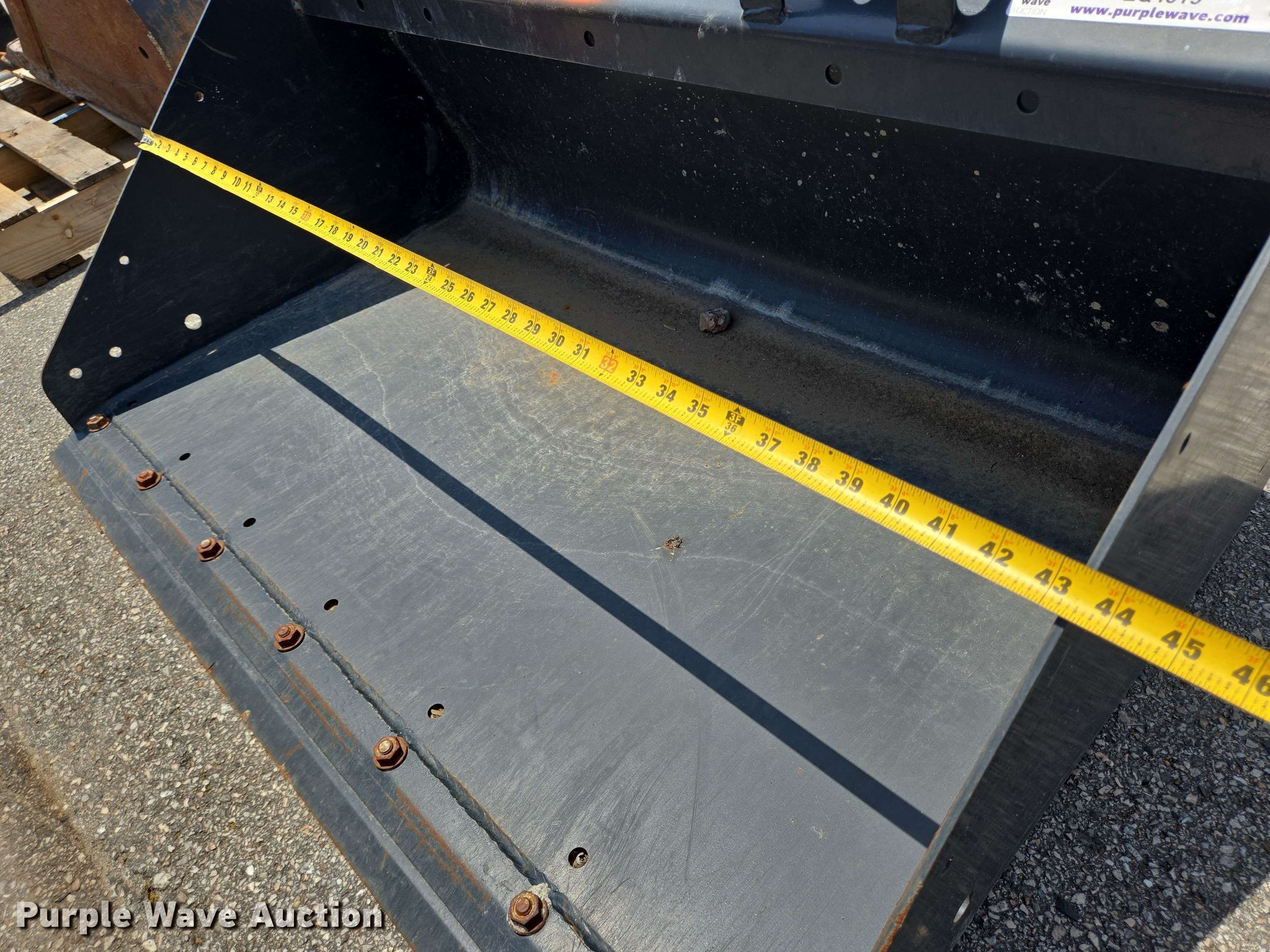 Purple Wave is selling a used Skid Steer Attach. in Texas. This item is a Bobcat skid steer bucket with the following: Width: 43", Low profile, Cutting edge: Bolt-on