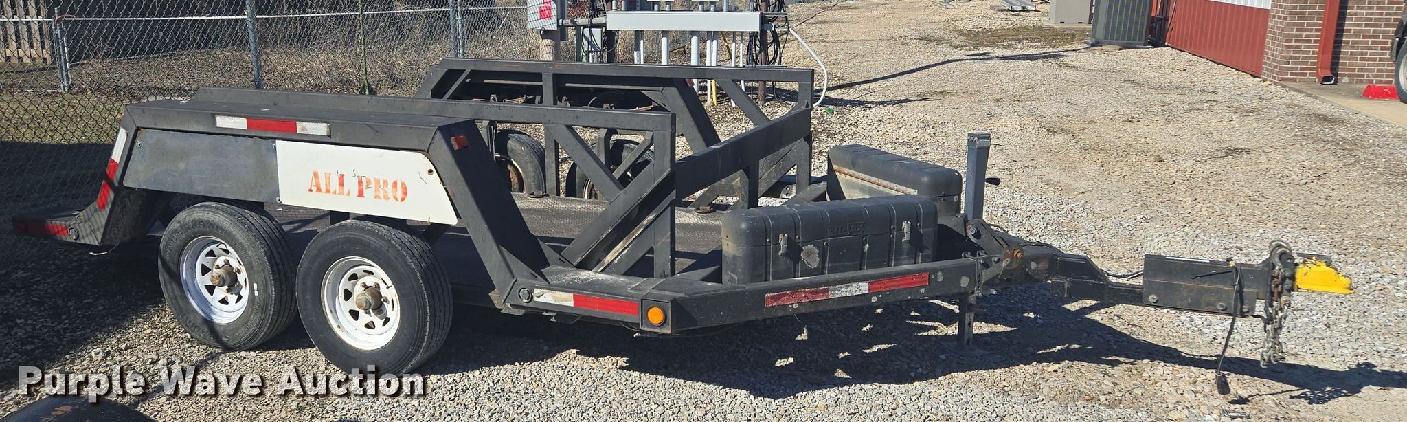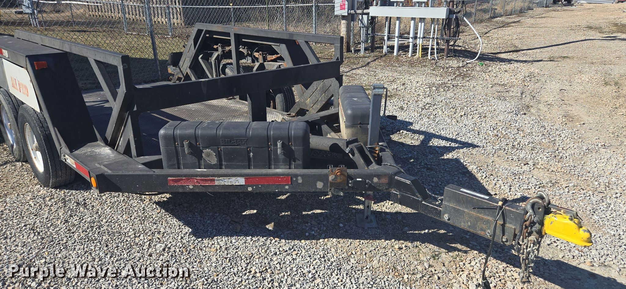2010 Bil-Jax equipment trailer. VIN: 5CUEM2022AA000007. Dimensions Overall: 20' L x 102" W, Deck: 12' L x 74" W, Side height: 33.5". Features Deck type: Steel, Hydraulic drop deck, Self contained hydraulics, Hydraulic controls: Manual. Chassis Ball hitch: 2 5/16", Landing gear: Single, Suspension: Spring, Brakes: Electric, Axles: Tandem, GVWR: 9,980 lbs, GAWR: 5,080 lbs. Tires Steel wheels, Size: 225/75R15. Missouri title. Title distribution may be delayed up to 14 days from verification of funds. All Pro Electrical Tech Inc.. Warrensburg, MO 64093