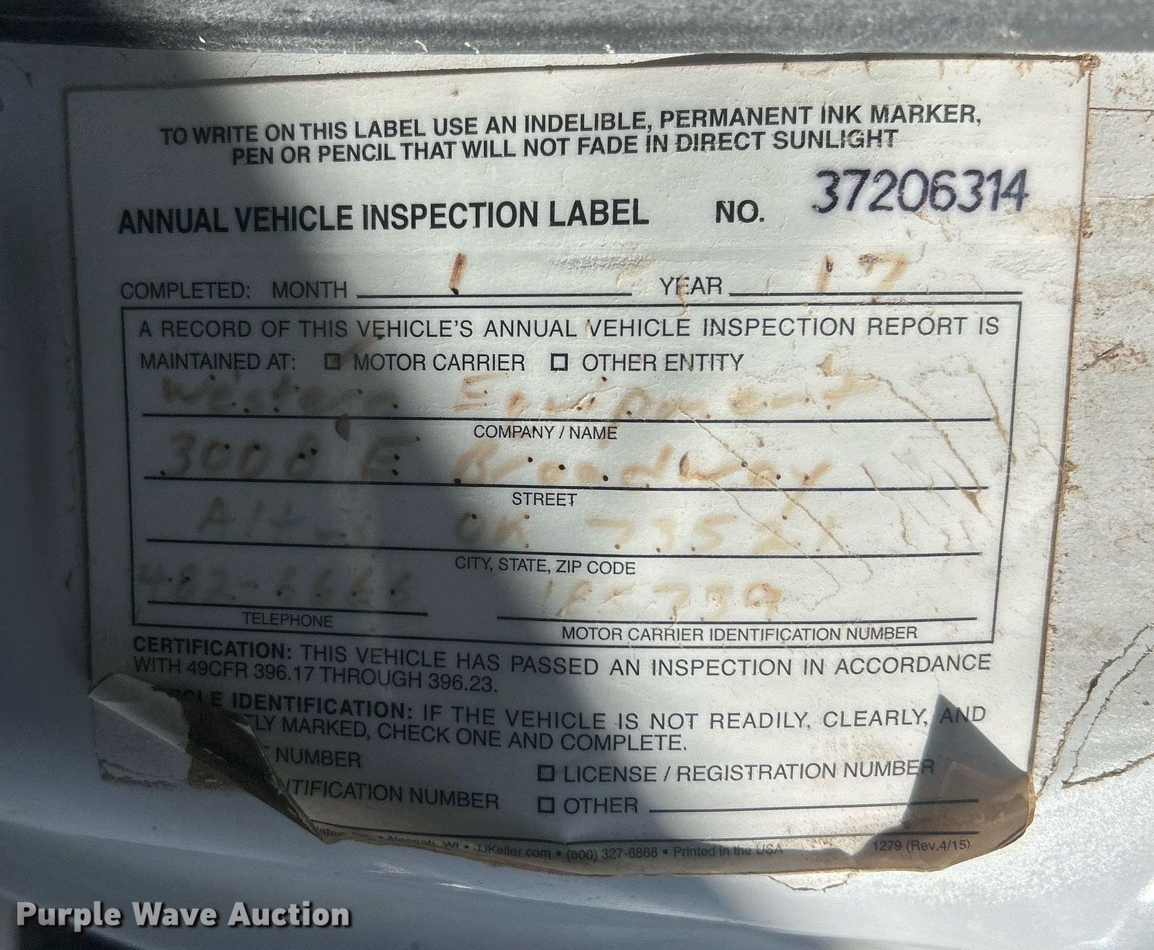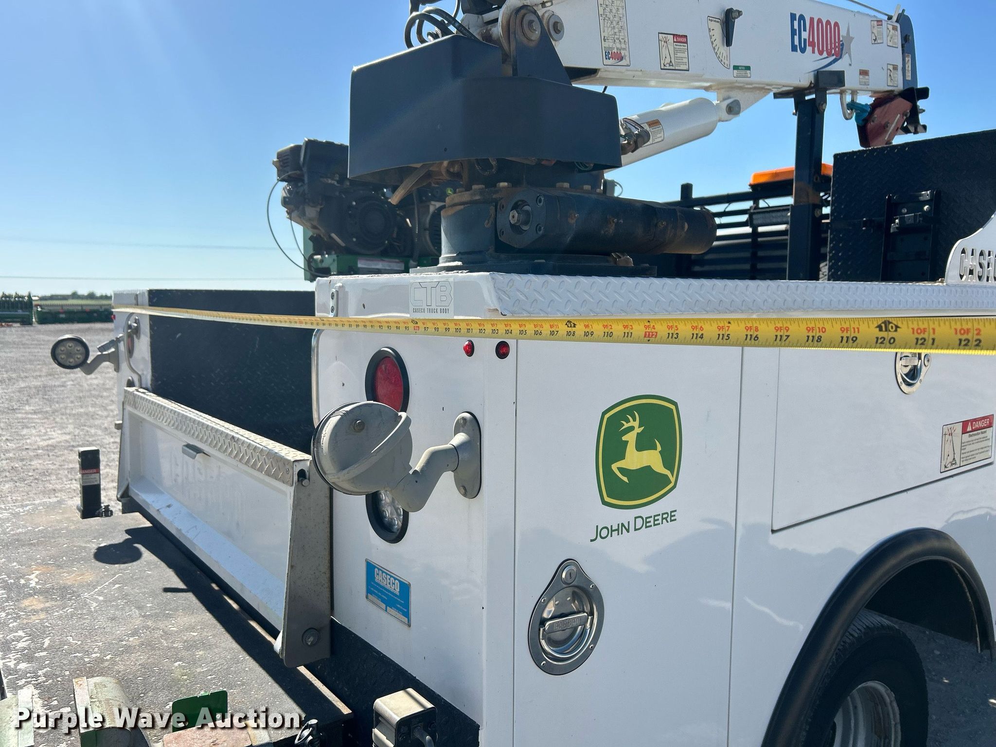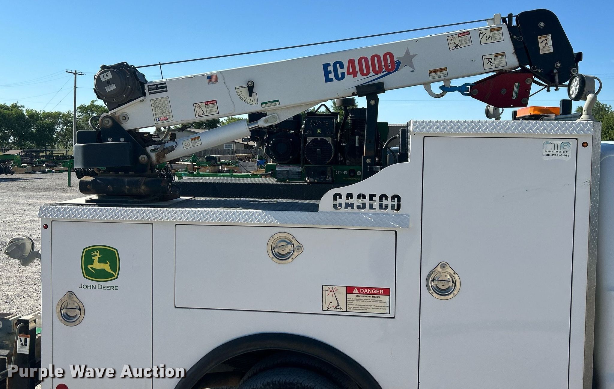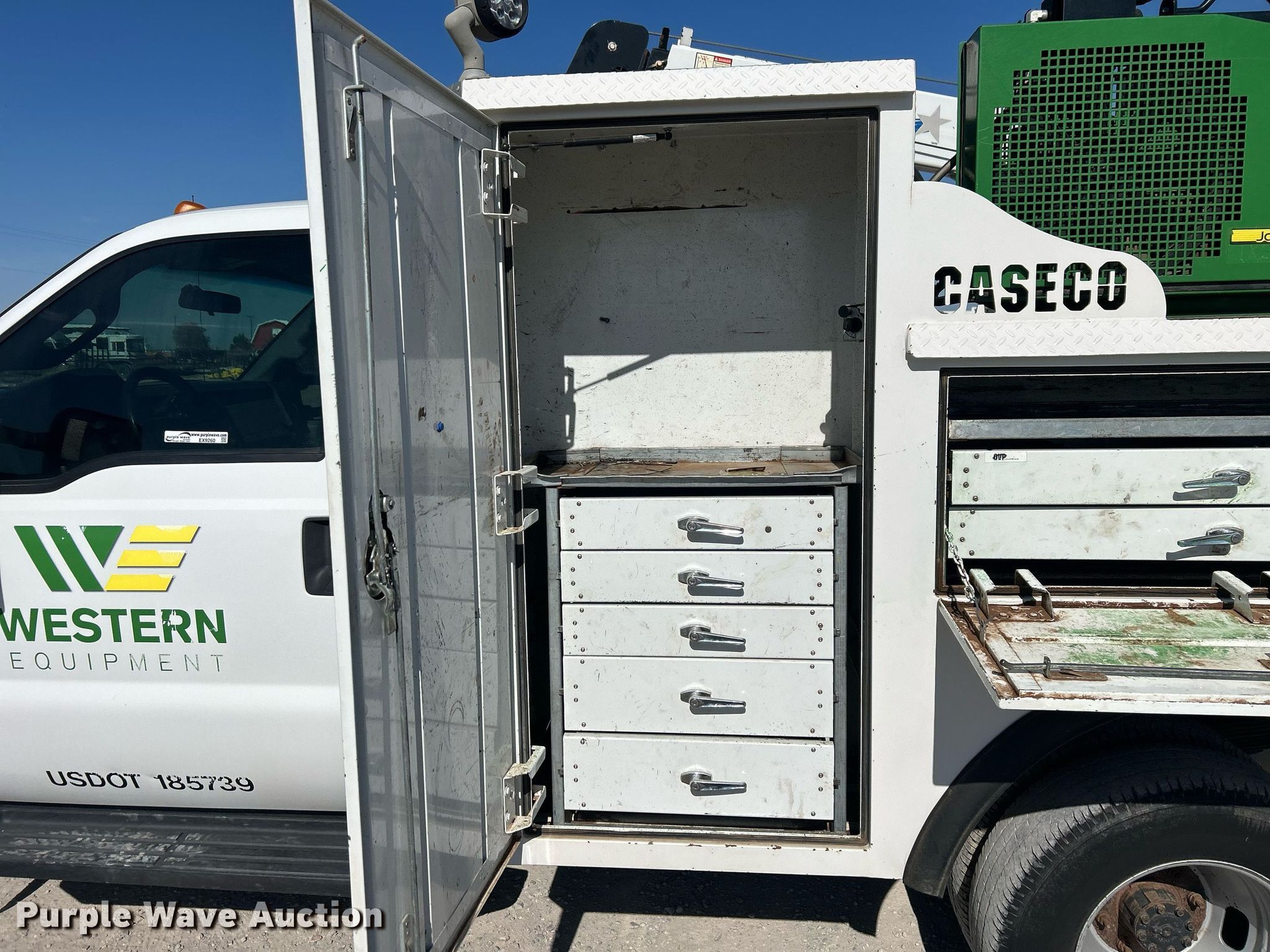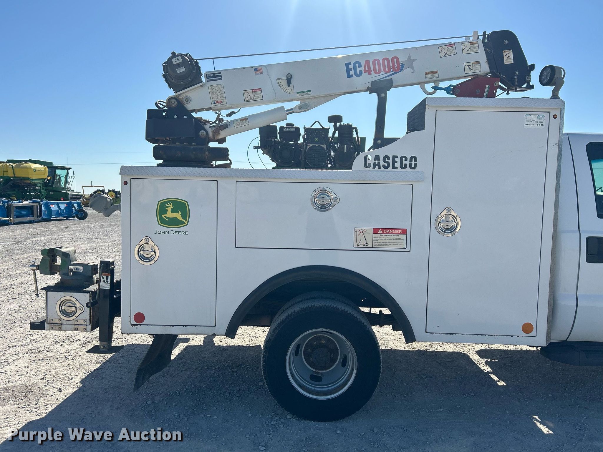 2016 Ford F350 Super Duty utility / service truck. Miles: 166,481 on odometer, Engine hours: 10,016 on meter, VIN: 1FDRF3H63GEA80824. Engine Displacement: 6.2L V8 OHV, Cylinders: 8, Fuel type: Gas. Transmission Automatic. Chassis Four wheel drive, Axles: Single, Suspension: Spring, Brakes: Hydraulic, GVWR: 14,000 lbs, Wheelbase: 141". Interior AC, Heat, Heated mirrors, Power windows, Power locks, Cruise control, Auxiliary controls, Brake controller. Features Bed Caseco MM142225, 9' L x 8' W, Welder/generator John Deere AC2-CW5170S-B, Fuel type: Gas, 250V outlets: 1, 125V outlets: 4, Crane Stellar EC40000, Maximum lift capacity: 6,000 lbs. Tires Size: LT245/75R17. Notes Windshield chipped or cracked. Oklahoma title. Title distribution may be delayed up to 14 days from verification of funds. Western Lease LLC. Amarillo, TX 79119