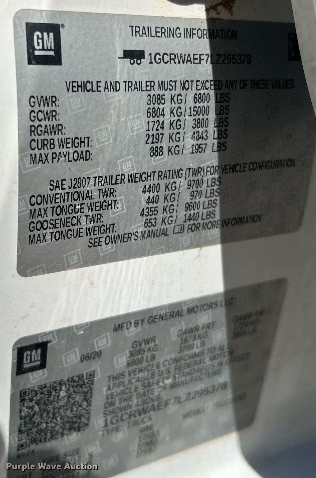Purple Wave is selling a used 1/2 Ton Pickup or Van in Texas. This item is a 2020 Chevrolet Silverado 1500 Double Cab pickup truck with the following: Miles: 187,821 on odometer, VIN: 1GCRWAEF7LZ295378