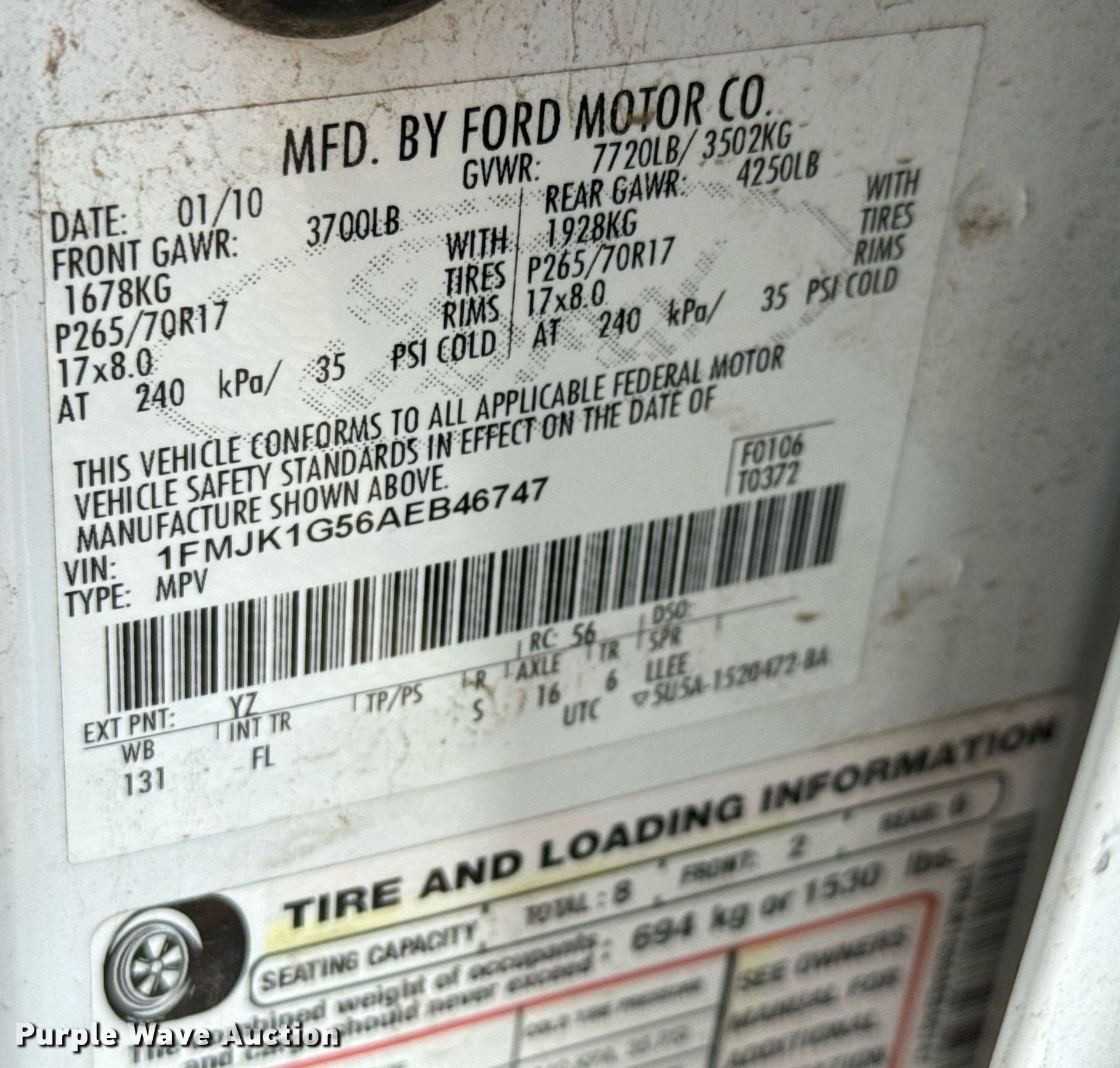Purple Wave is selling a used Passenger Vehicle in Kansas. This item is a 2010 Ford Expedition SUV with the following: Miles: 65,774 on odometer, Actual mileage unknown, VIN: 1FMJK1G56AEB46747