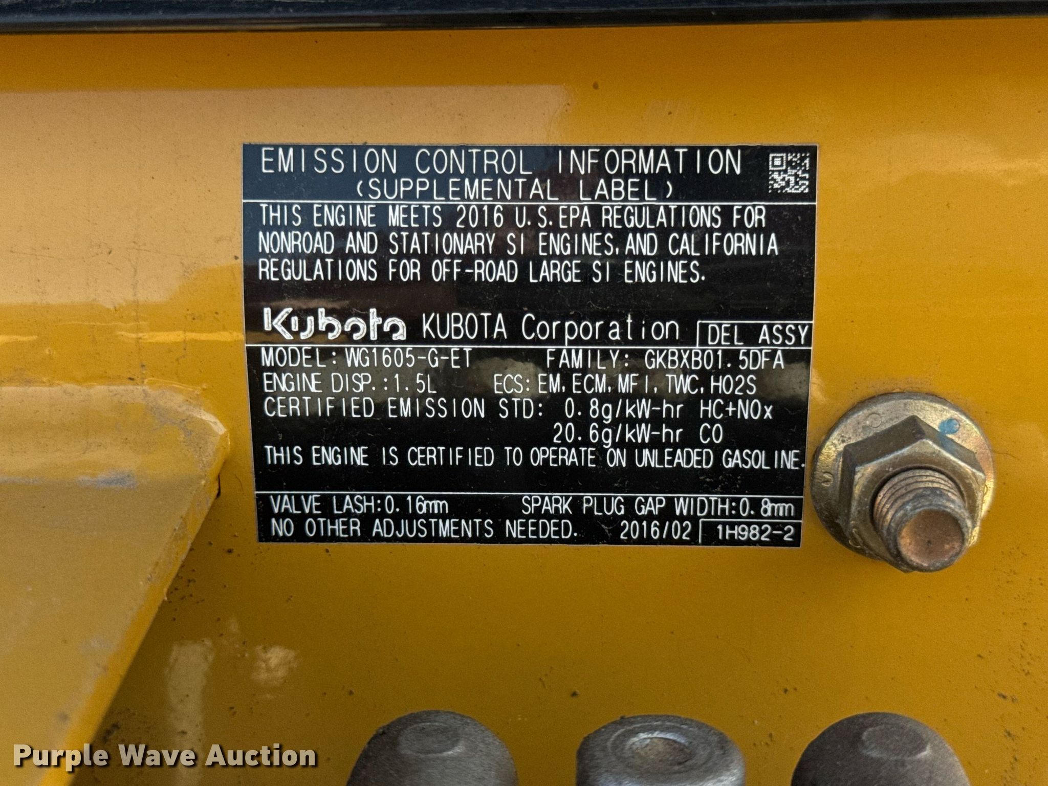 2016 Vermeer S800TX compact utility loader. Hours: 1,230 on meter, Serial: 1VRB070A8G1002822. Engine Kubota WG1605, Cylinders: 4, Fuel type: Gas. Transmission Hydrostatic. Operators station Bucket control: Hand. Features Auxiliary hydraulics, Quick coupler: Manual. Tracks Width: 9". Notes Unit starts but dies , Right side lift cylinder missing, Right side engine cover panel missing, Unknown operating condition. Equipment City LLC. Clinton, IL 61727