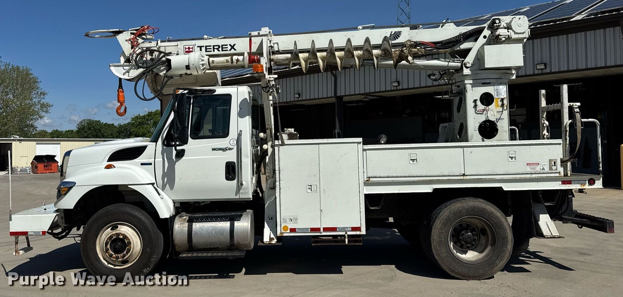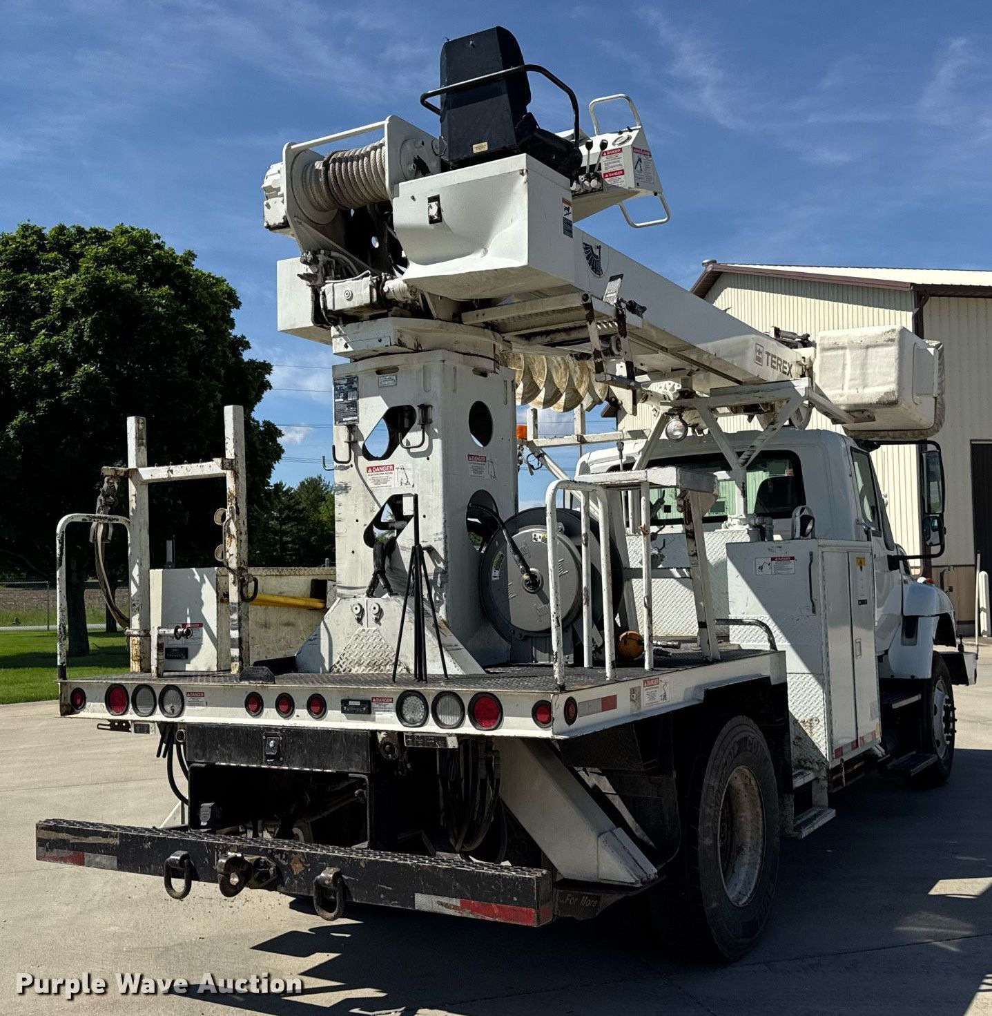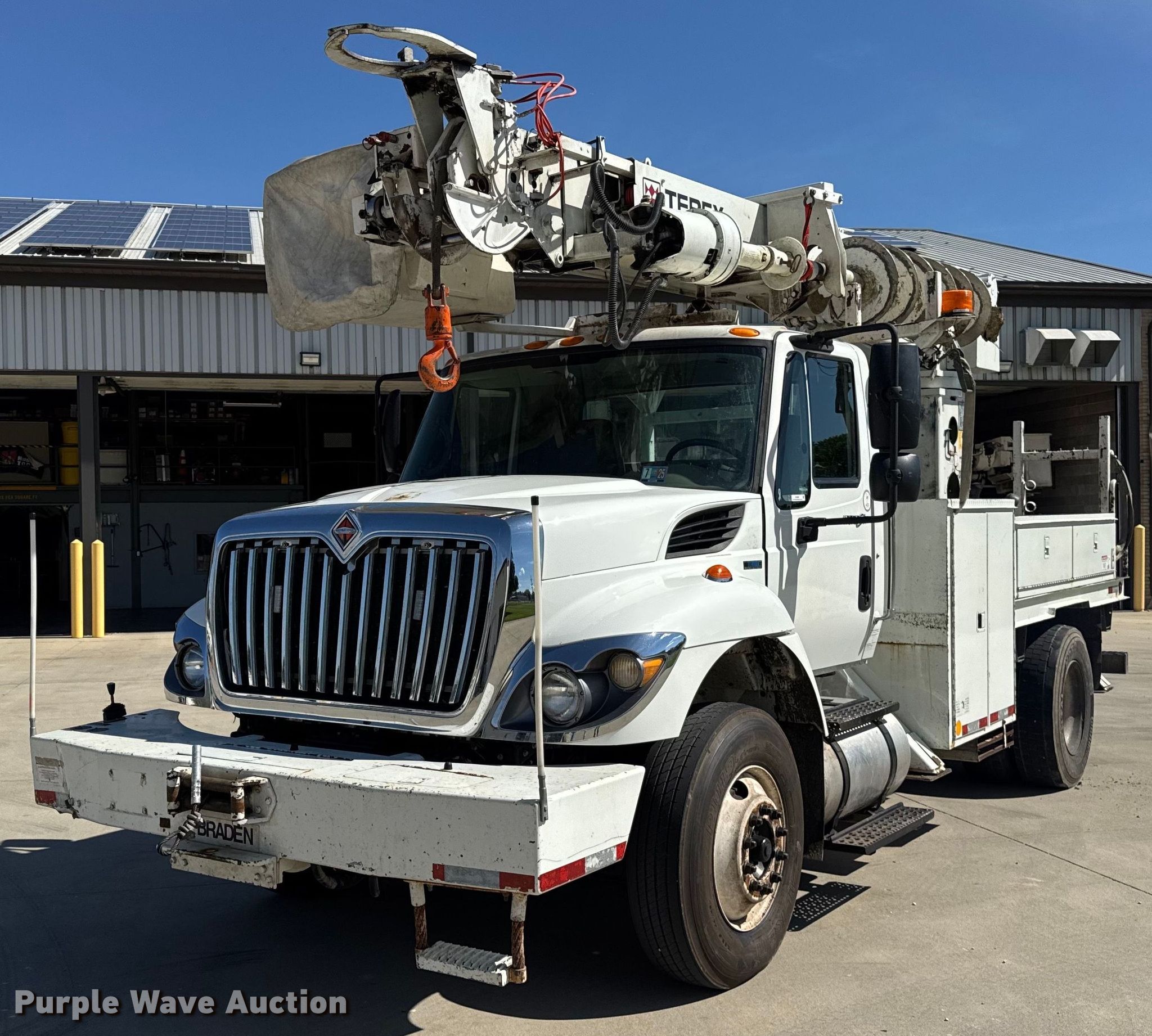 2010 International SA615 digger derrick truck. Miles: 157,823 on odometer, Hours: 8,667 on meter, VIN: 1HTZZAAN9AJ249294, Unit #: 5. Engine Maxx Force DT466, Displacement: 7.6L, Fuel type: Diesel. Transmission Eaton Fuller, Manual, Speed: 10. Chassis Axles: Single, Differential lock: Inter-axle, Suspension: Spring, Brakes: Air, PTO, GVWR: 33,000 lbs. Interior AC, Heat, Cruise control, Auxiliary controls. Features Bed Dueco DFB13-4, 13' 4" L x 96" W, Boom 2009 Terex Commander C4045, Maximum lift capacity: 300 lbs, Maximum lift height: 45', Boom type: Insulated, Telescopic, Man basket, Boom controls Ground, Platform/ basket, Material handler, Pole guide, Auger Diameter: 18", Certification valid through: 10/2025, Winch. Tires Size: 11R22.5. Notes Manuals included. Illinois title. Title distribution may be delayed up to 14 days from verification of funds. Shelby Electric Cooperative. Shelbyville, IL 62565