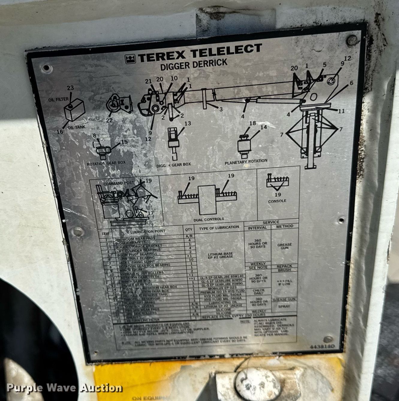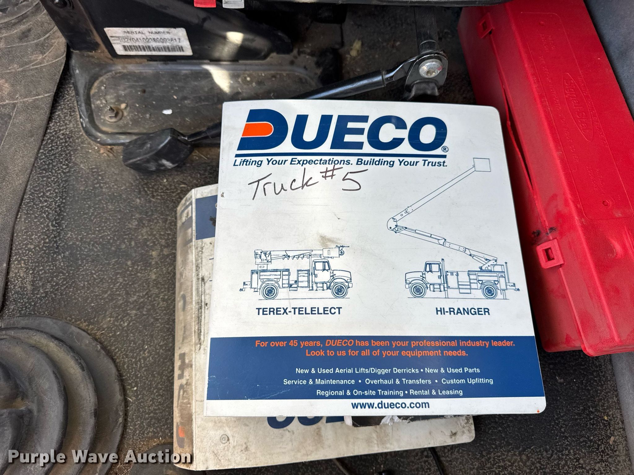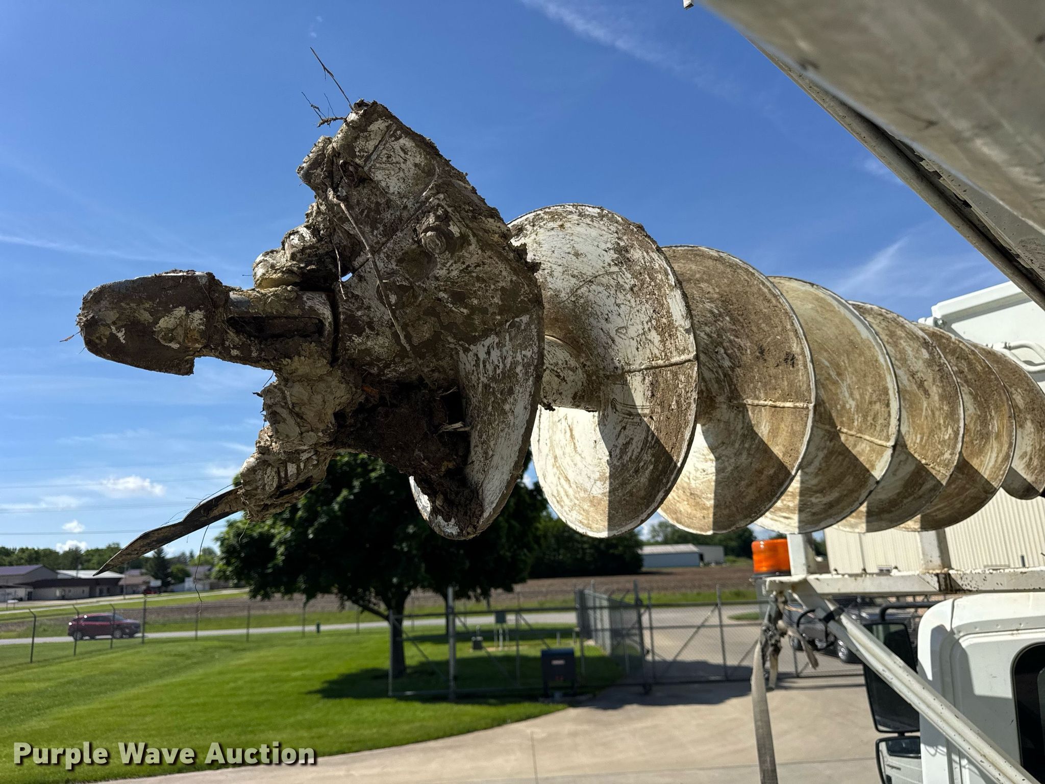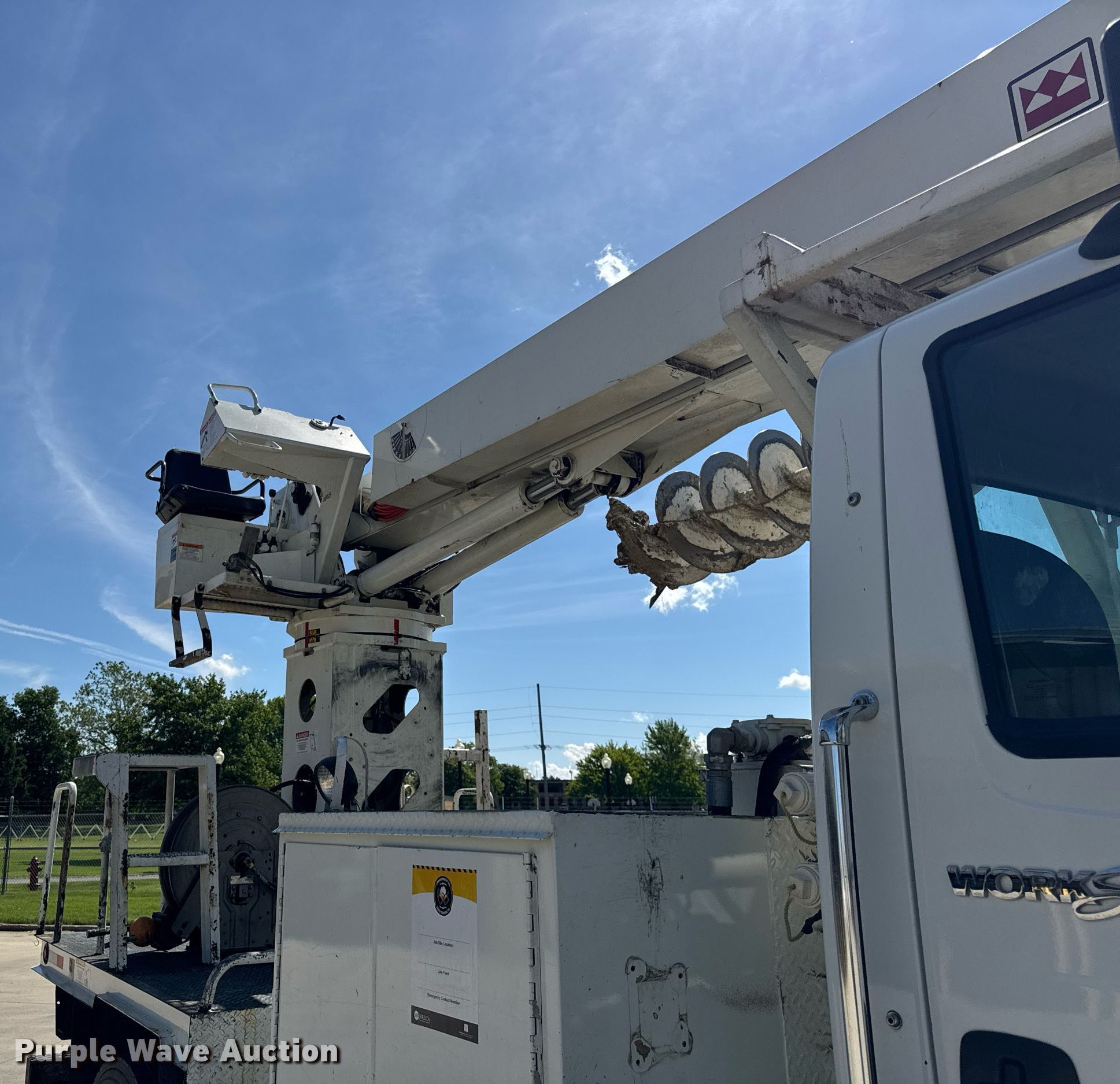 2010 International SA615 digger derrick truck. Miles: 157,823 on odometer, Hours: 8,667 on meter, VIN: 1HTZZAAN9AJ249294, Unit #: 5. Engine Maxx Force DT466, Displacement: 7.6L, Fuel type: Diesel. Transmission Eaton Fuller, Manual, Speed: 10. Chassis Axles: Single, Differential lock: Inter-axle, Suspension: Spring, Brakes: Air, PTO, GVWR: 33,000 lbs. Interior AC, Heat, Cruise control, Auxiliary controls. Features Bed Dueco DFB13-4, 13' 4" L x 96" W, Boom 2009 Terex Commander C4045, Maximum lift capacity: 300 lbs, Maximum lift height: 45', Boom type: Insulated, Telescopic, Man basket, Boom controls Ground, Platform/ basket, Material handler, Pole guide, Auger Diameter: 18", Certification valid through: 10/2025, Winch. Tires Size: 11R22.5. Notes Manuals included. Illinois title. Title distribution may be delayed up to 14 days from verification of funds. Shelby Electric Cooperative. Shelbyville, IL 62565