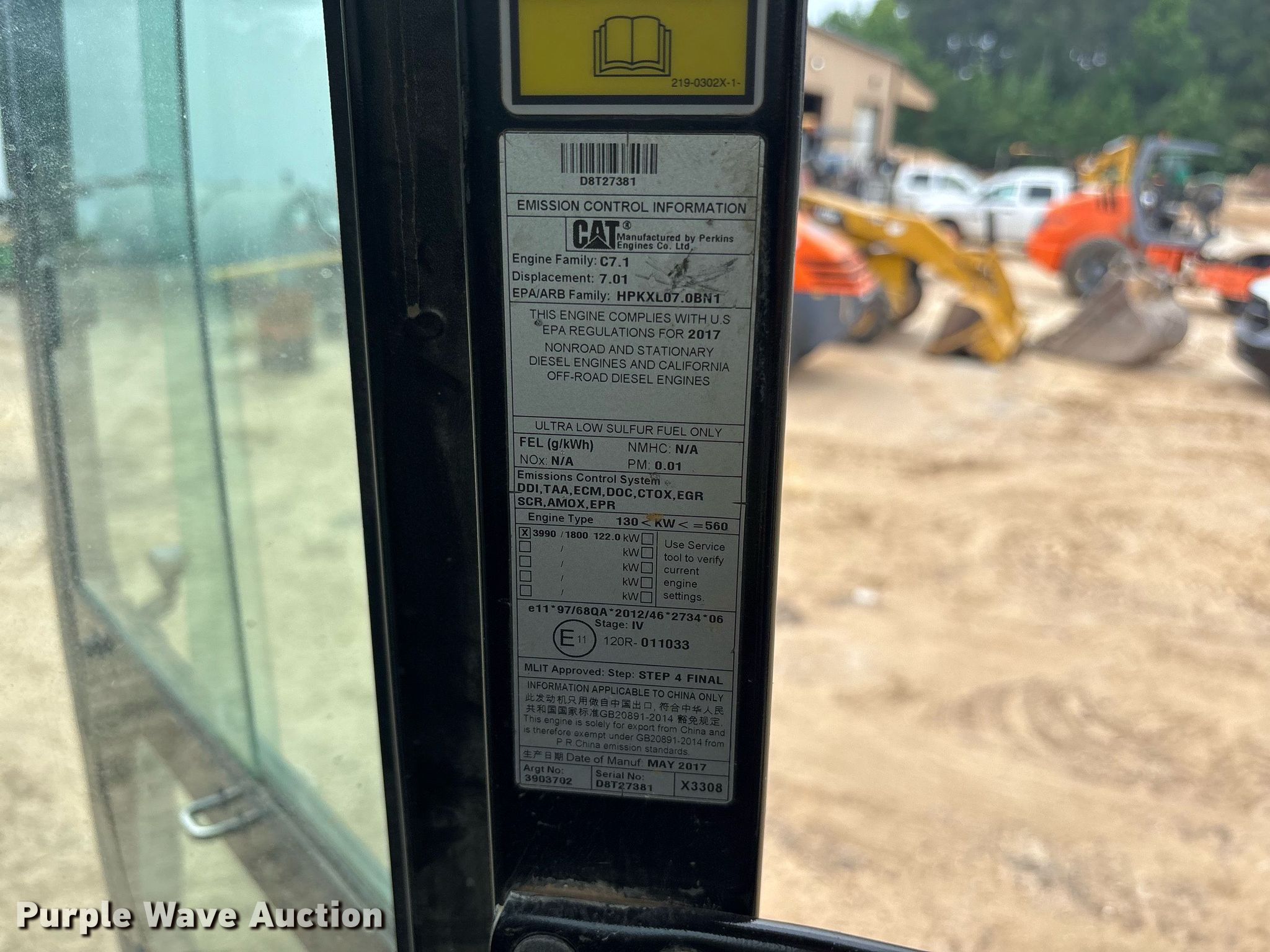 2017 Caterpillar 323F L excavator. Hours: 8,394 on meter, Serial: CAT0323FKYEJ10368, Unit #: 1211. Engine Caterpillar C7.1 Acert, Serial: D8T27381, Displacement: 7.1L, Cylinders: 6, Fuel type: Diesel. Transmission Hydrostatic, Two speed travel. Operators station Enclosed cab, AC, Heat, Backup camera, Pattern changer. Features Auxiliary hydraulics Two-way, Counter weights, Boom Standard, Stick Stick length: 9' 6", Quick coupler: Hydraulic, Thumb: Manual Caterpillar, Bucket Caterpillar, Width: 44", Teeth: 5. Tracks Width: 31", Steel, Grouser pads: Triple. Notes Glass cracked. Welch Excavation. Winona, TX 75792