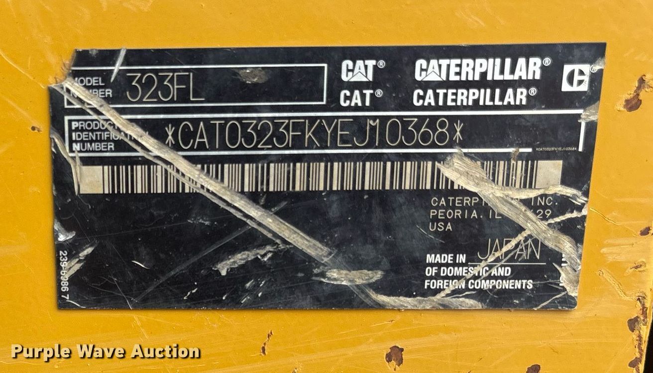 Purple Wave is selling a used Hydraulic Excavator in Texas. This item is a 2017 Caterpillar 323F L excavator with the following: Hours: 8,394 on meter, Serial: CAT0323FKYEJ10368, Unit #: 1211